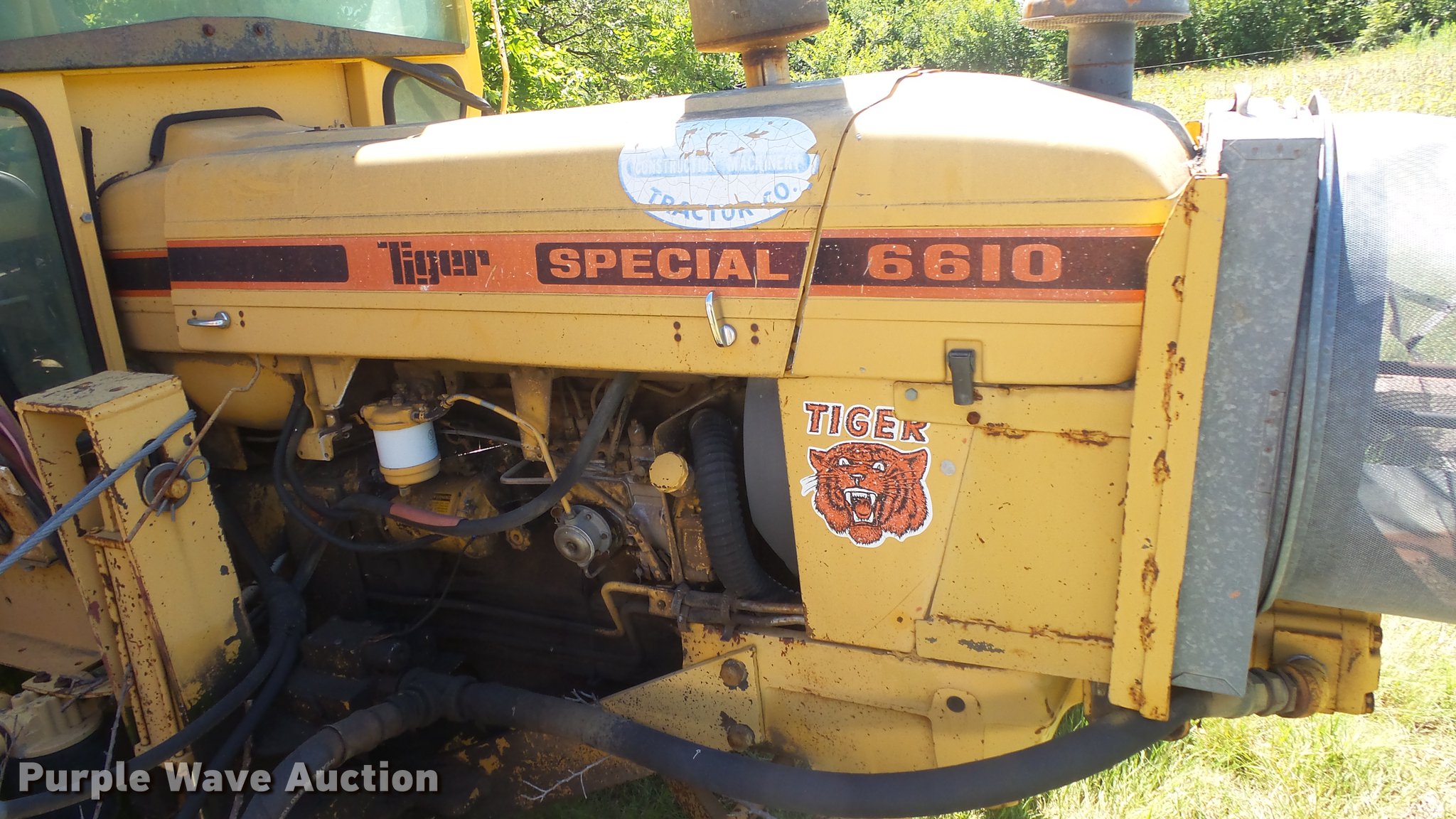 Purple Wave is selling a used Tractor in Kansas. This item is a Ford 6610 tractor with the following: 1,174 hours on meter, Ford 4.4L four cylinder diesel engine, Manual transmission, 8F-2R gears, Enclosed cab, Three point, 540 PTO, Tiger side mount rotary mower, Approx. 64"W, Hydraulic lift, 11L-16 front tires, 16.9-38 rear tires, Unknown operating condition, Flat tire