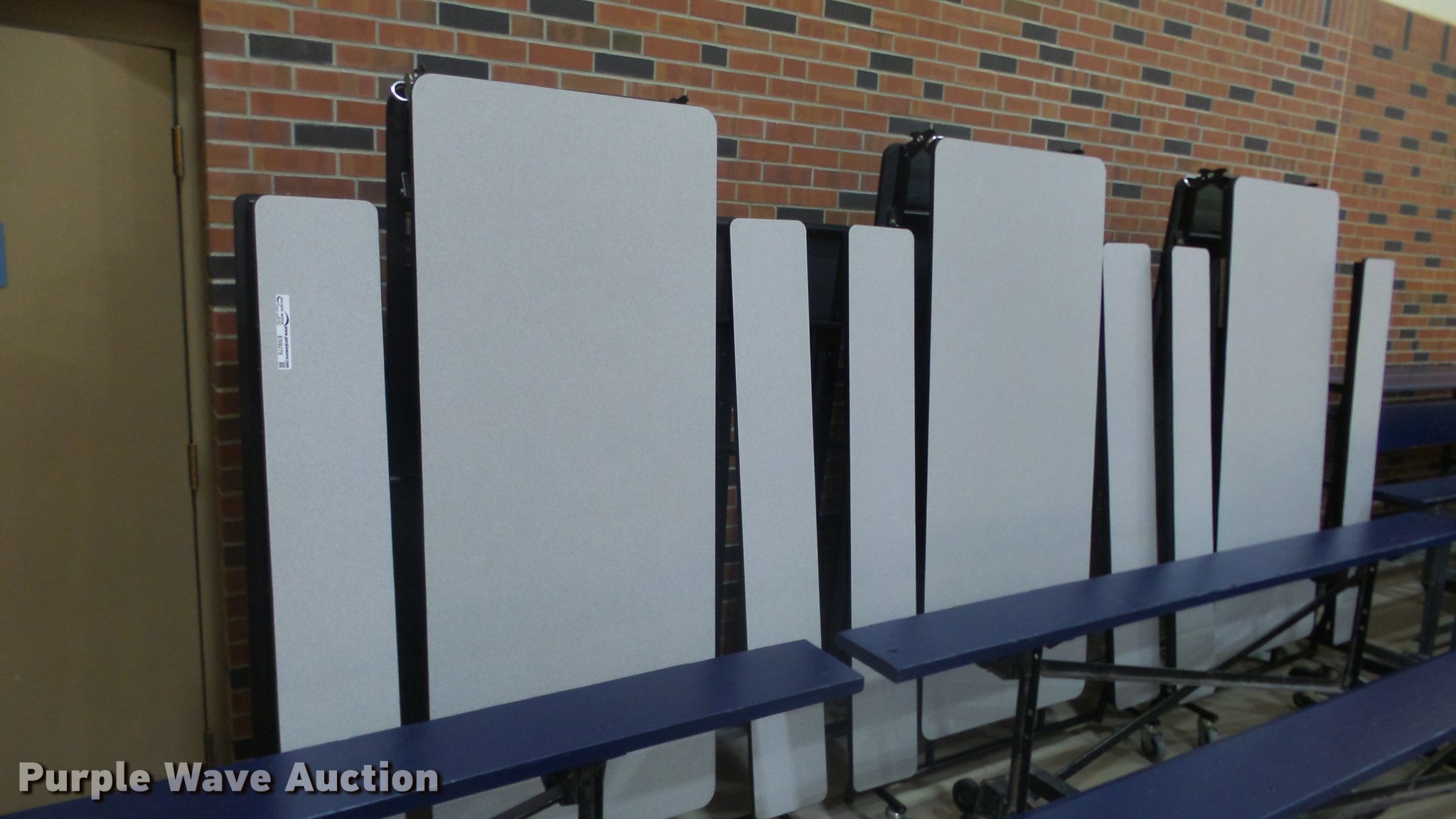 Purple Wave is selling a used Furniture in Kansas. This item is a (10) lunch tables with the following: Approx. 30" x 72" tops, Seats, Wheels