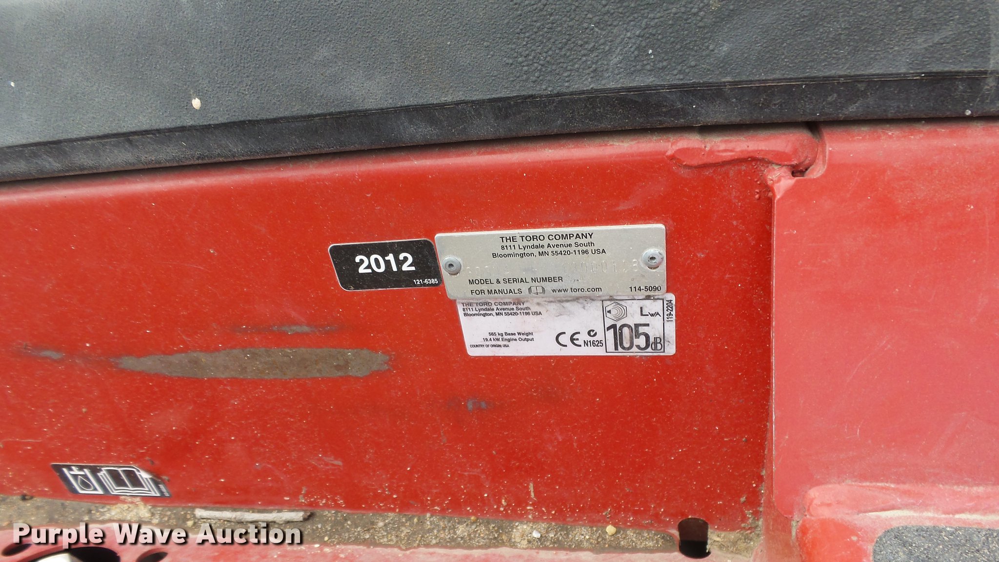 Purple Wave is selling a used Commercial Turf Mower in Kansas. This item is a Toro Groundmaster 3280D ZTR lawn mower with the following: 541 hours on meter, 72" cut, Kubota three cylinder diesel engine, Hydrostatic transmission, 23x9.50-12 tires, No battery, Unknown operating condition, Serial 31300118