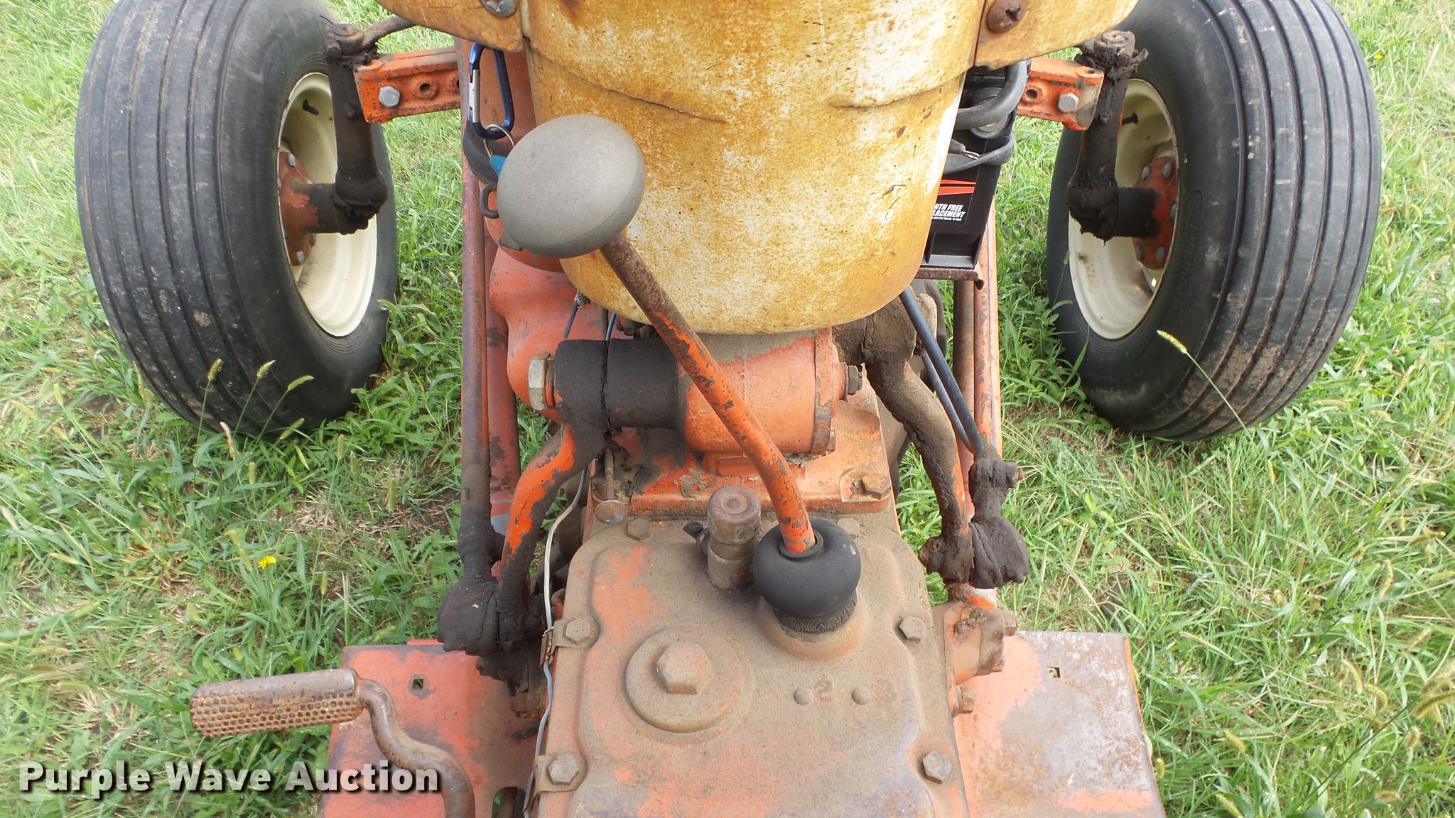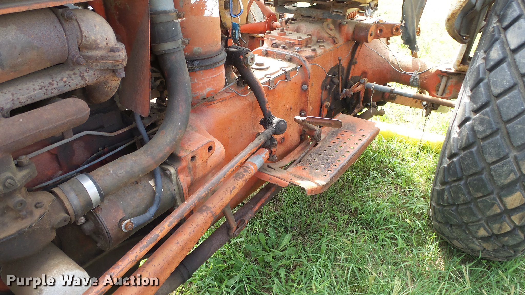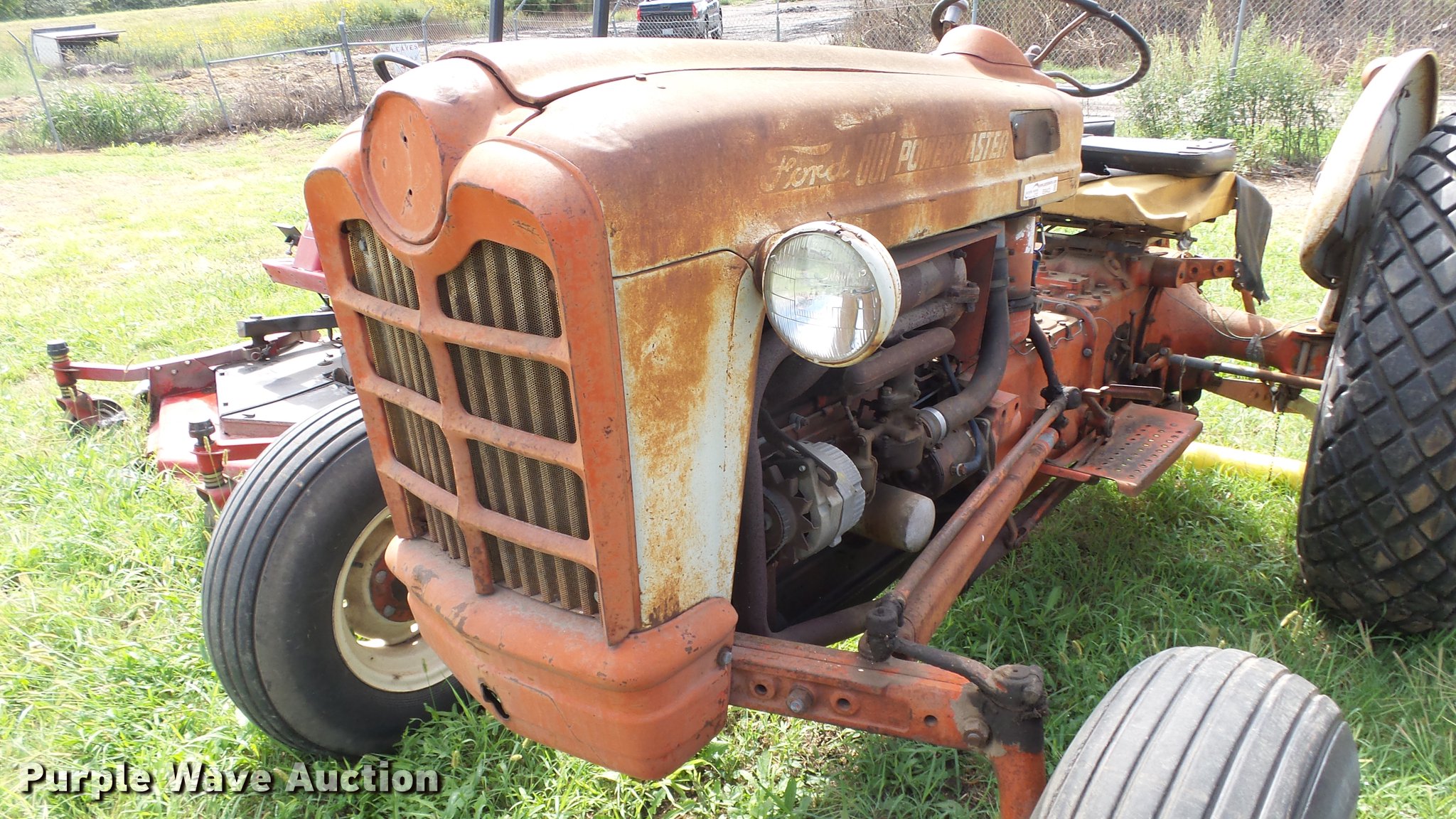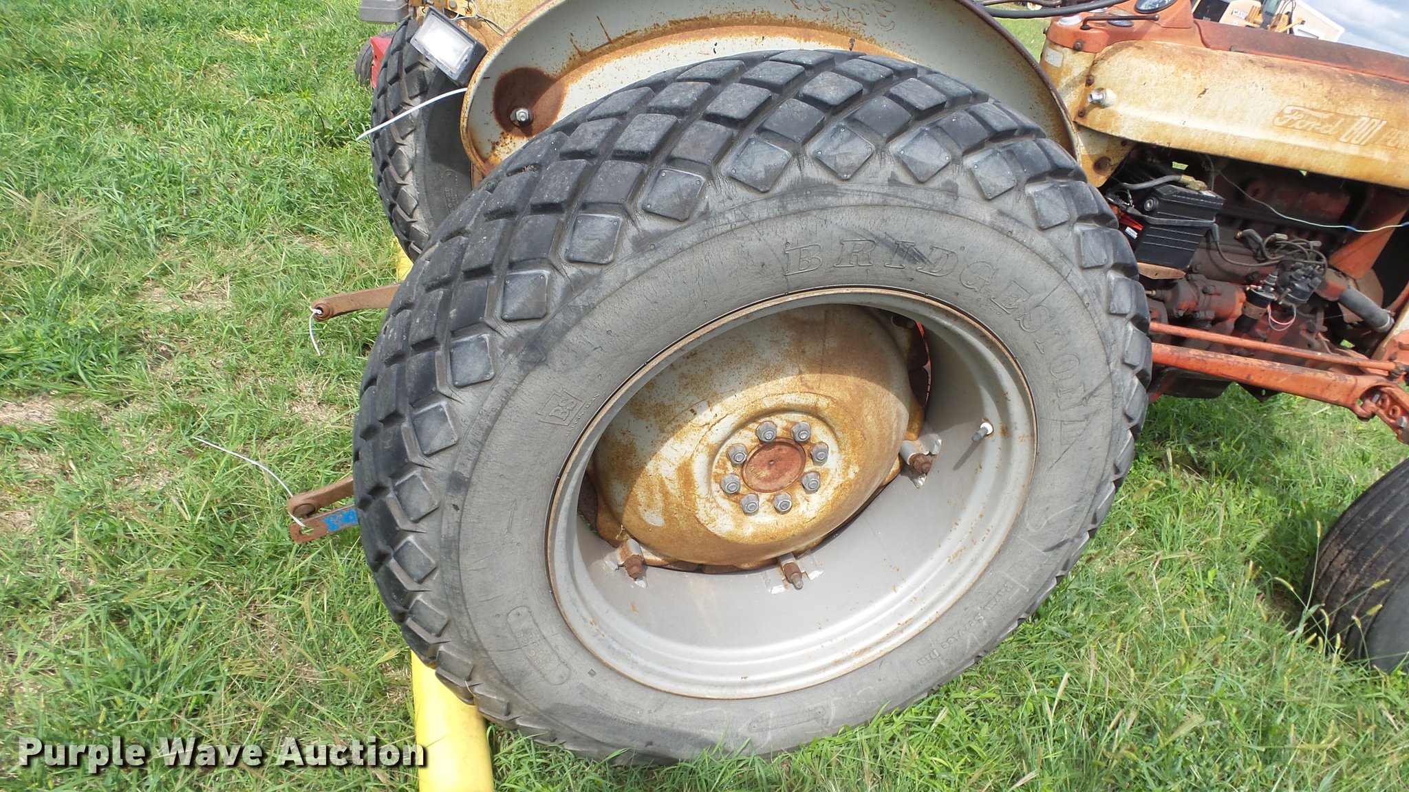 Purple Wave is selling a used Tractor in Kansas. This item is a Ford 801 Powermaster tractor with the following: 1,628 hours on meter, Four cylinder gas engine, Manual transmission, Work lights, Three point, 540 PTO, 9.5L-15 front tires, 13.6-28 rear tires, Unknown operating condition, Dead battery