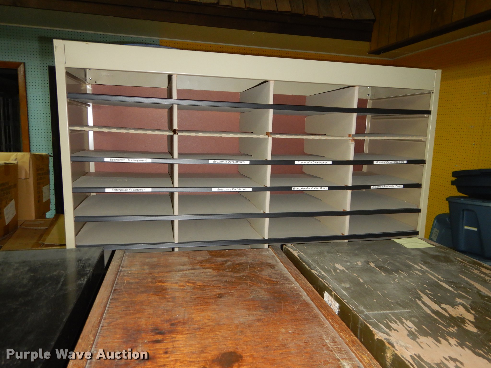 Purple Wave is selling a used Office Supplies and Equip. in Kansas. This item is a Office equipment with the following: (4) four drawer filing cabinet, Three drawer filing cabinet, 48 slot organizer