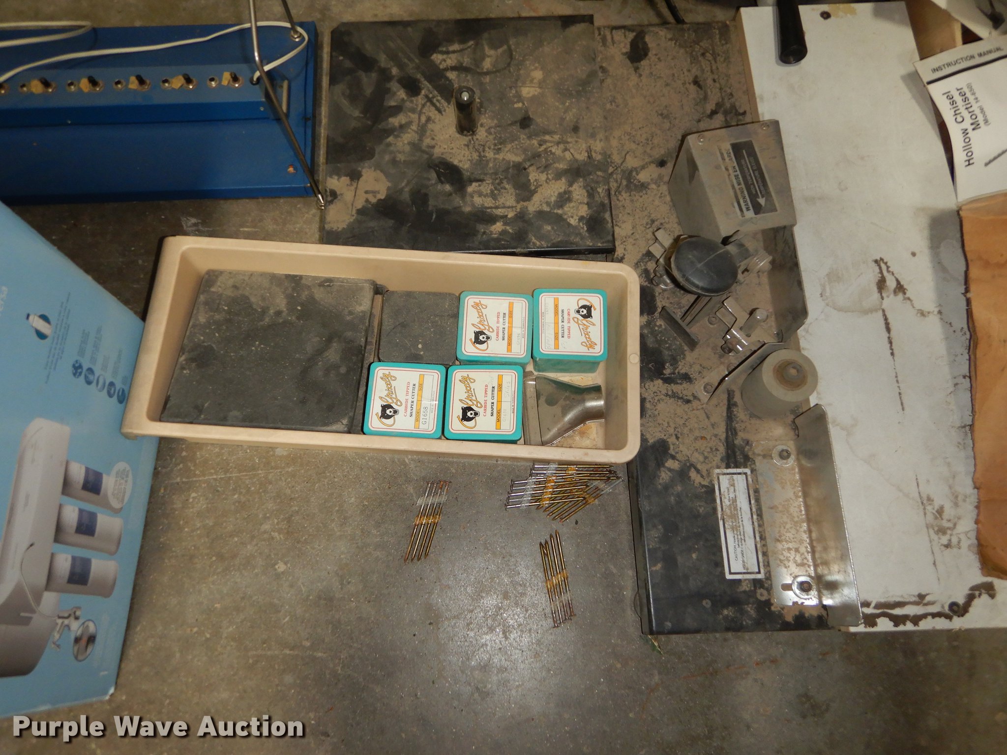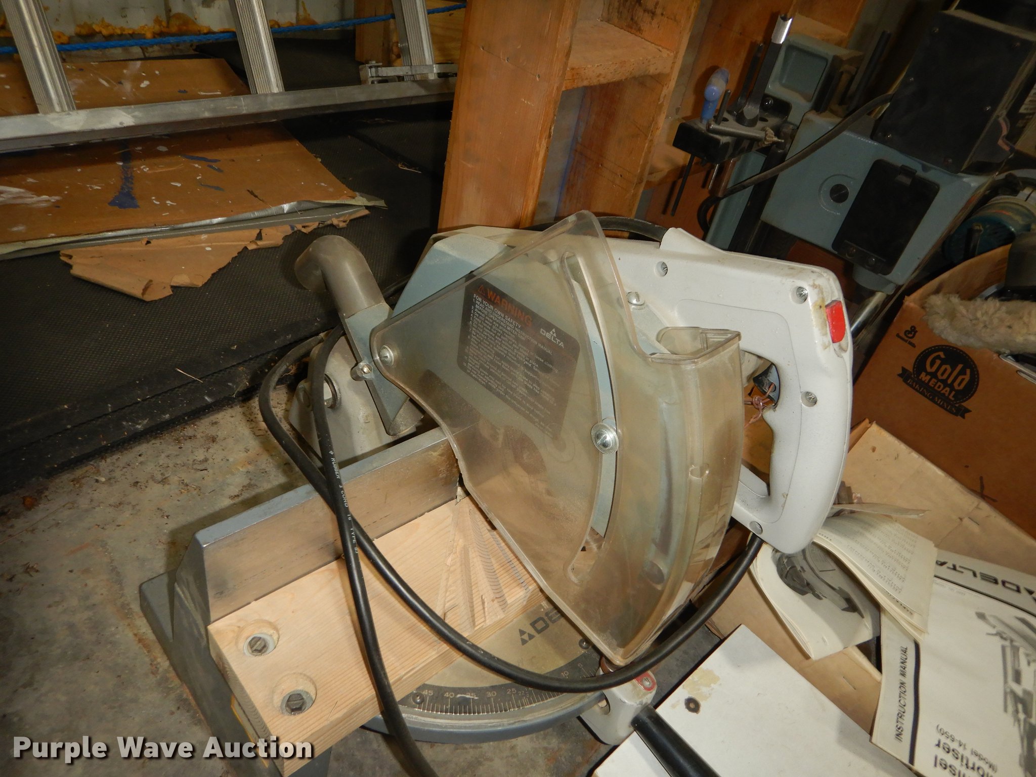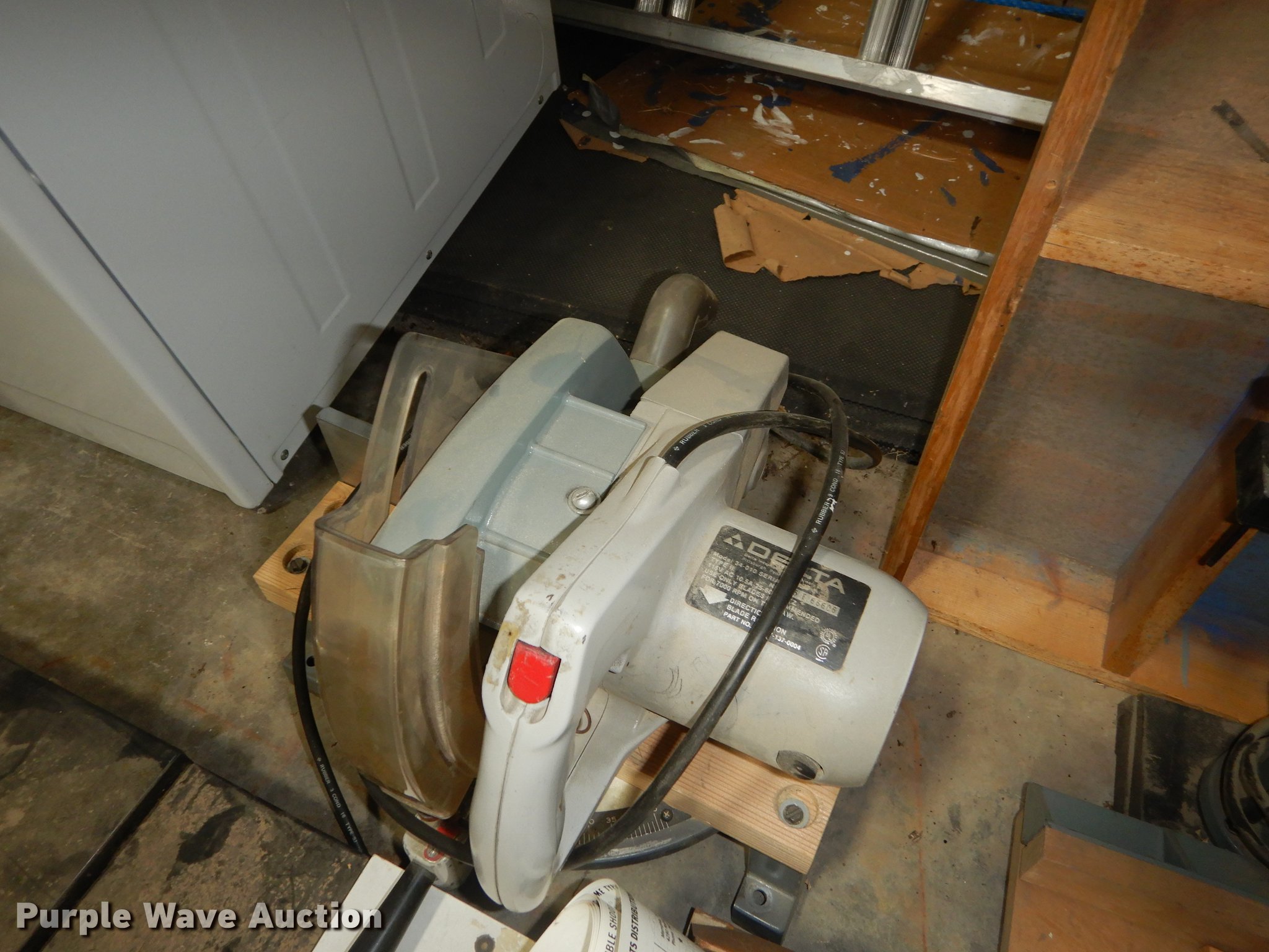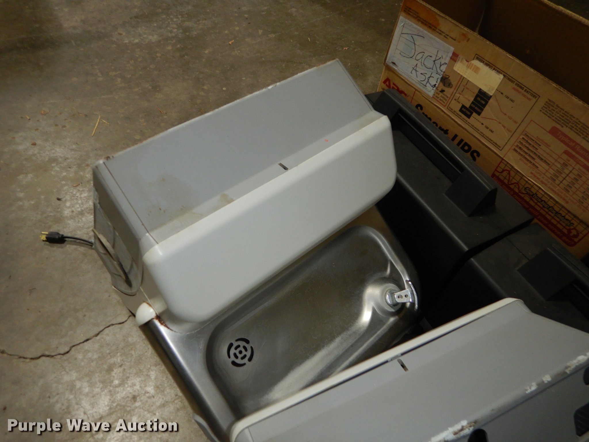 Purple Wave is selling a used Office Supplies and Equip. in Kansas. This item is a Office supplies and equipment with the following: Dryer, Canopy tent, Time clock, Miter saw, Chisel mortiser, Jointer, Water fountains, Power cords and more, Unknown operating conditions