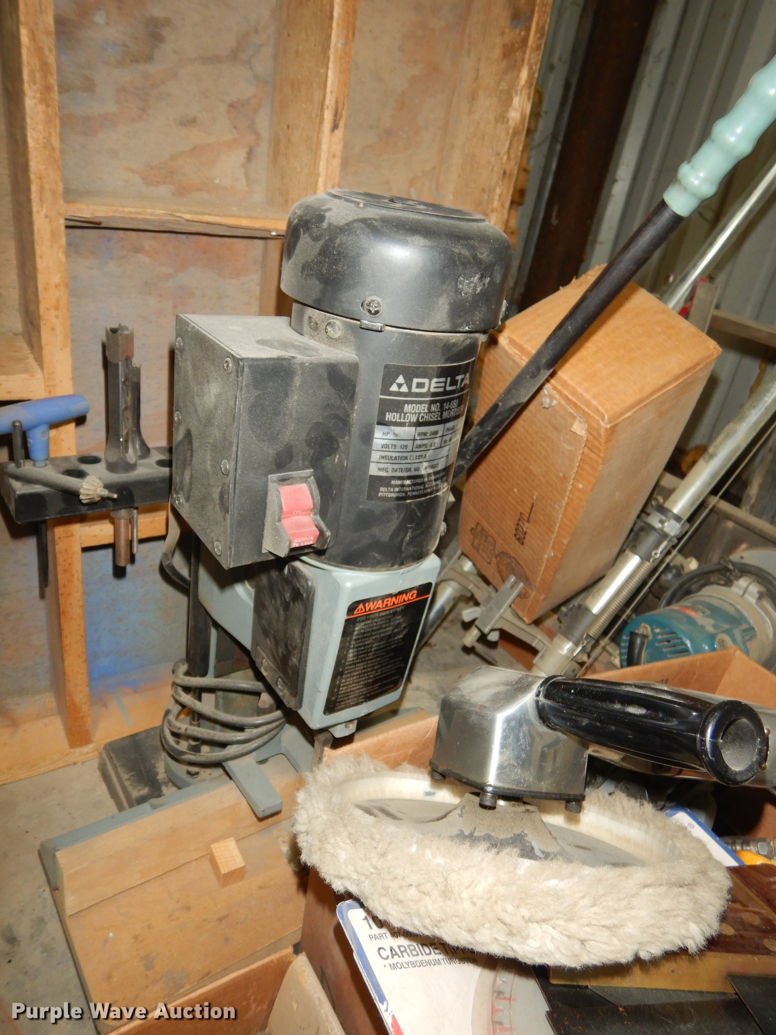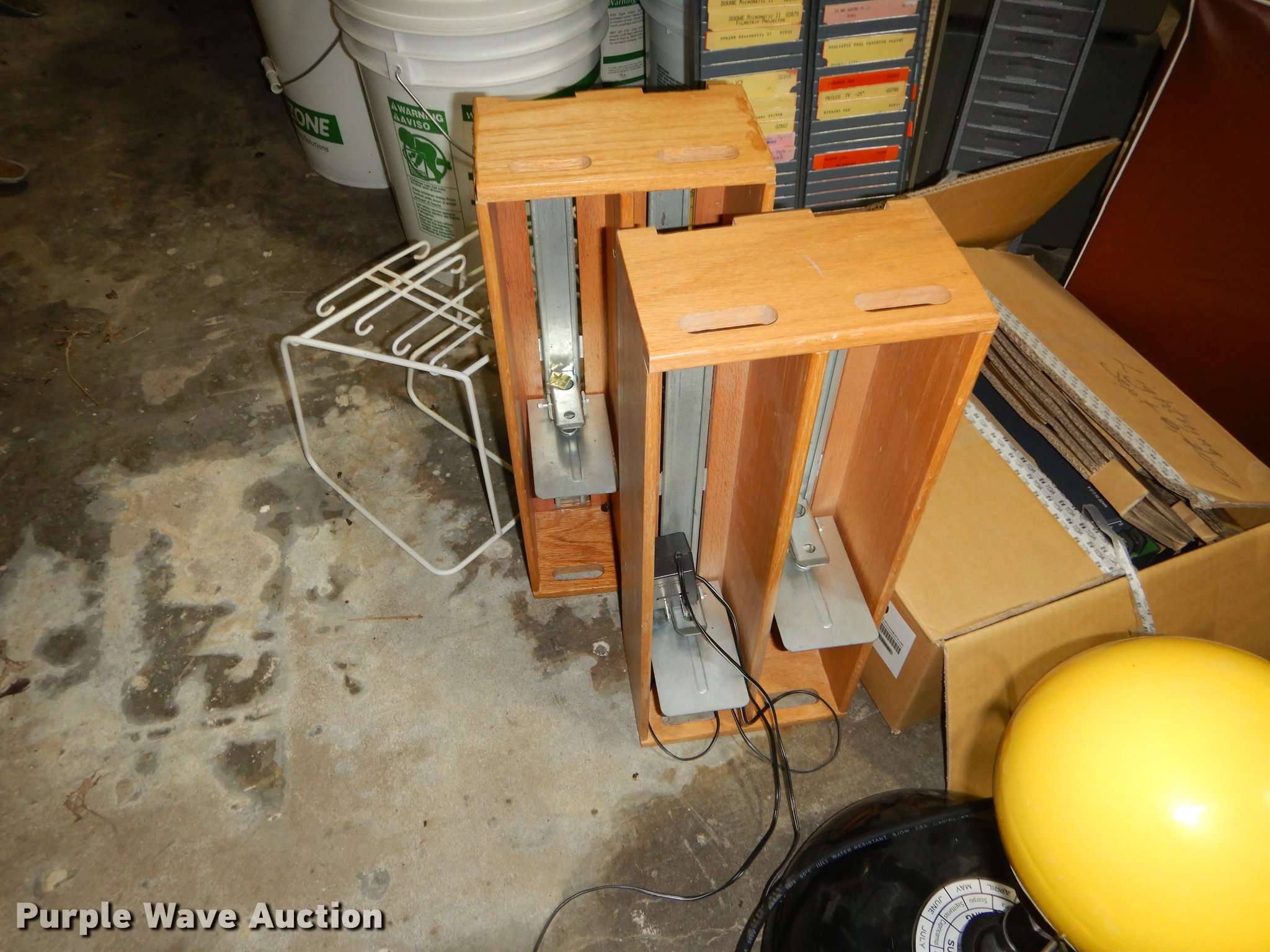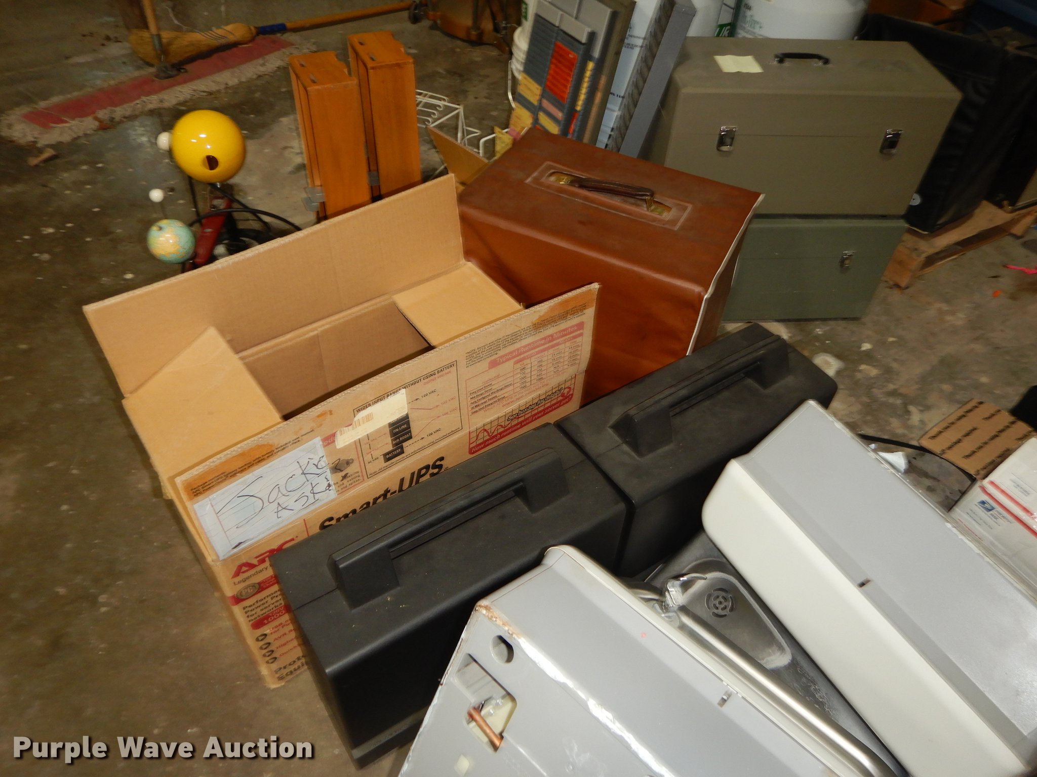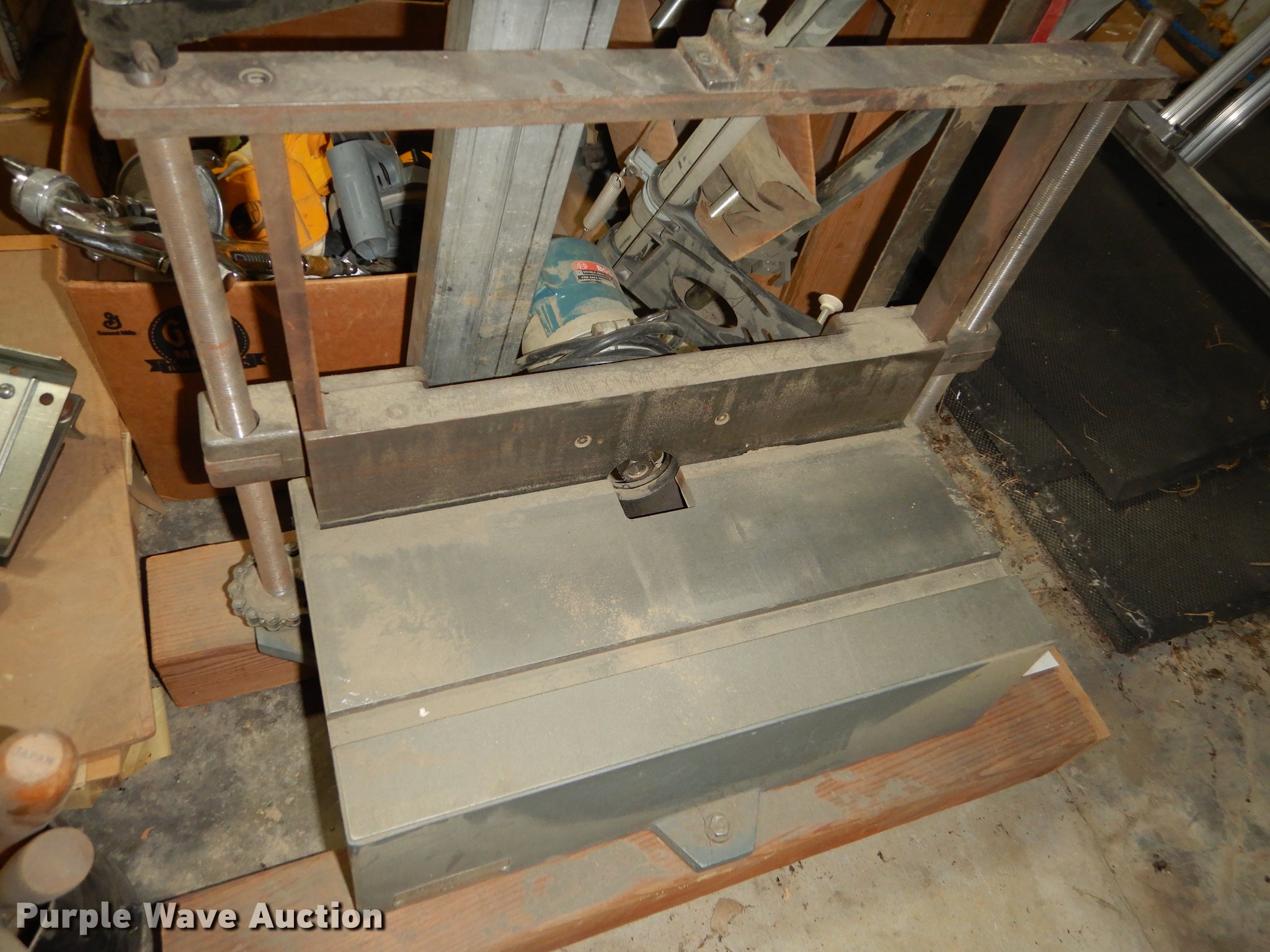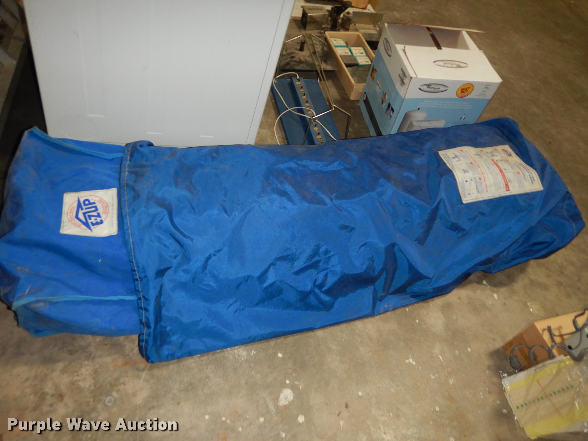 Purple Wave is selling a used Office Supplies and Equip. in Kansas. This item is a Office supplies and equipment with the following: Dryer, Canopy tent, Time clock, Miter saw, Chisel mortiser, Jointer, Water fountains, Power cords and more, Unknown operating conditions