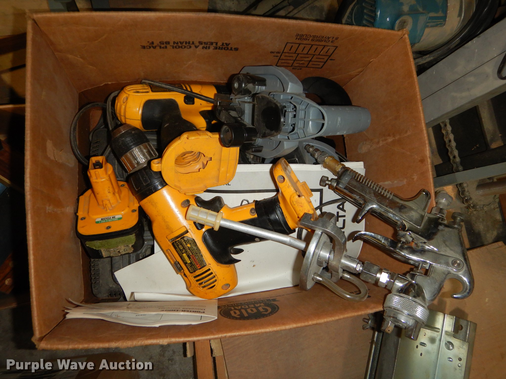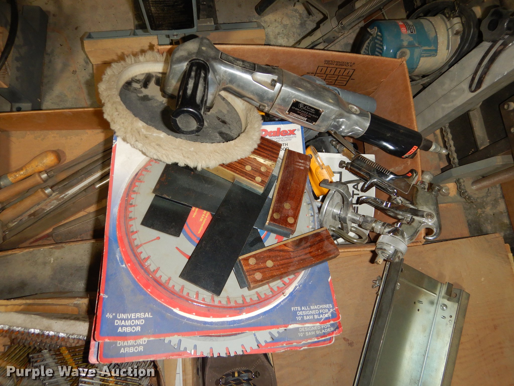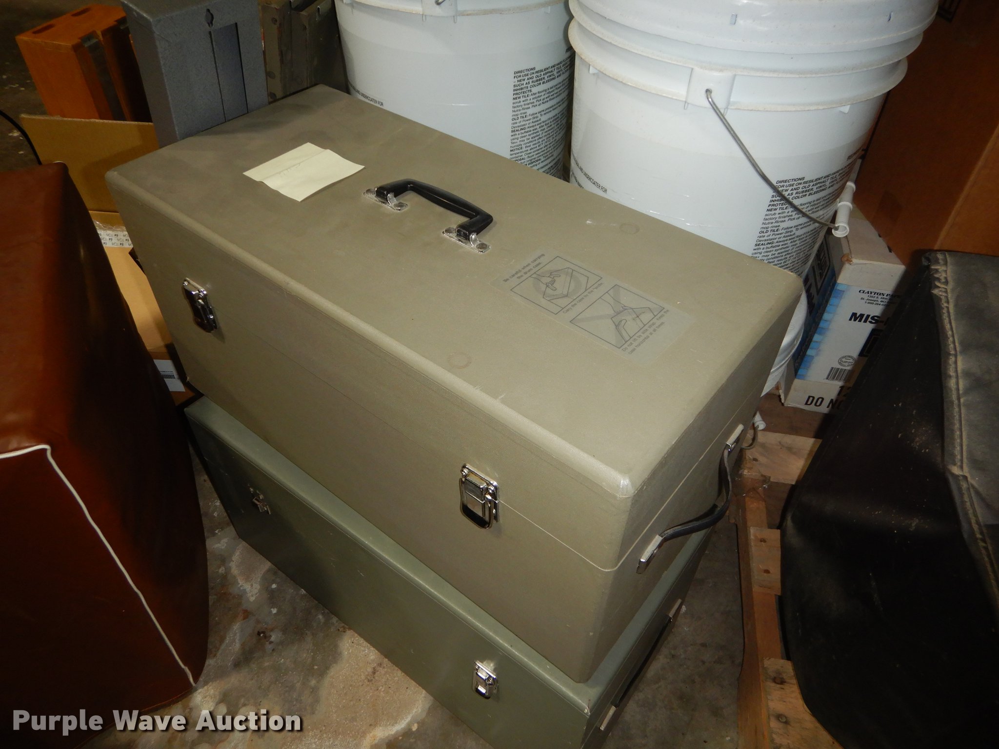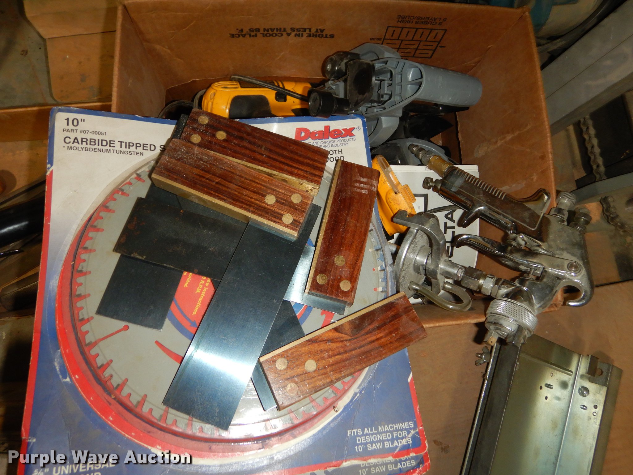 Purple Wave is selling a used Office Supplies and Equip. in Kansas. This item is a Office supplies and equipment with the following: Dryer, Canopy tent, Time clock, Miter saw, Chisel mortiser, Jointer, Water fountains, Power cords and more, Unknown operating conditions