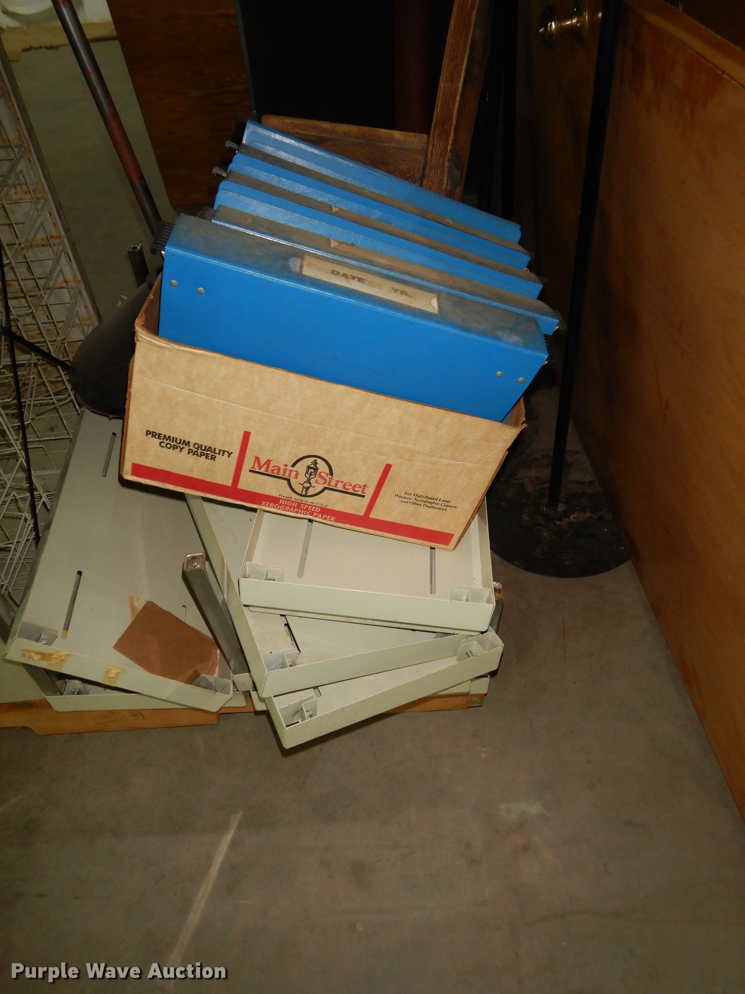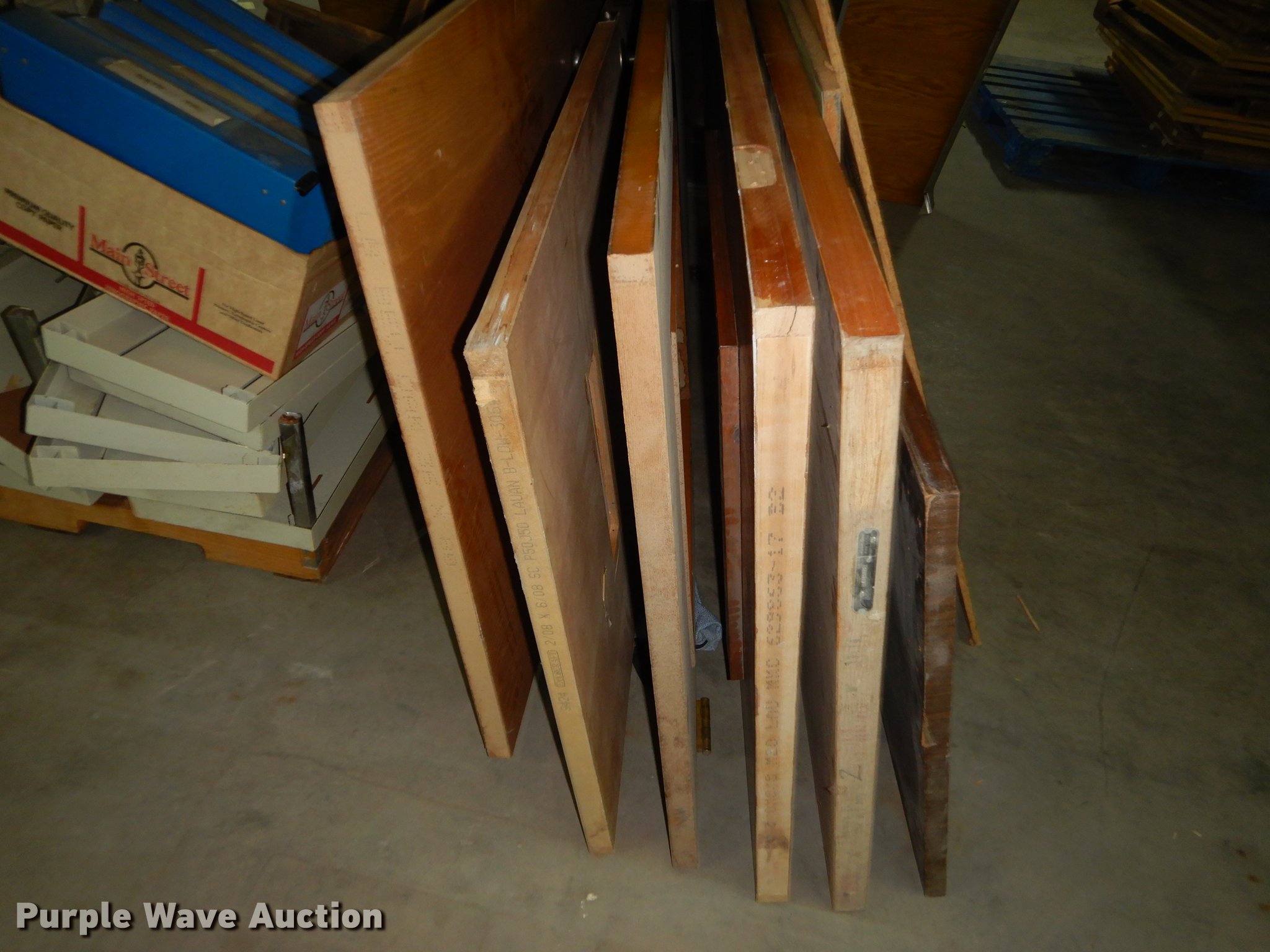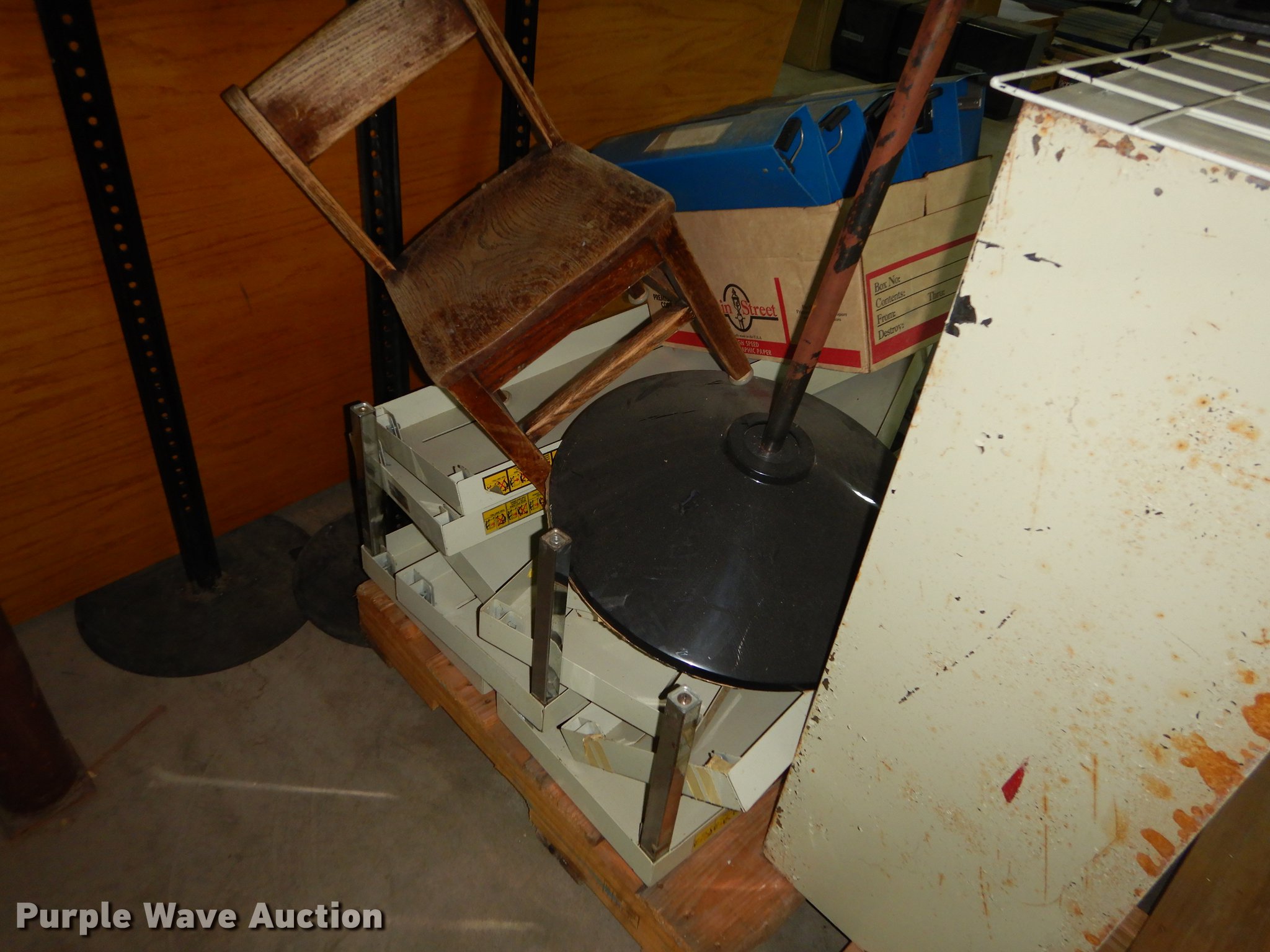 Purple Wave is selling a used Furniture in Kansas. This item is a Furniture with the following: Podium, Rack, Table, Chalkboard, (7) doors, Paper rack, Paper cutter, Office divider, Approx. 25 magazine racks, 31"W