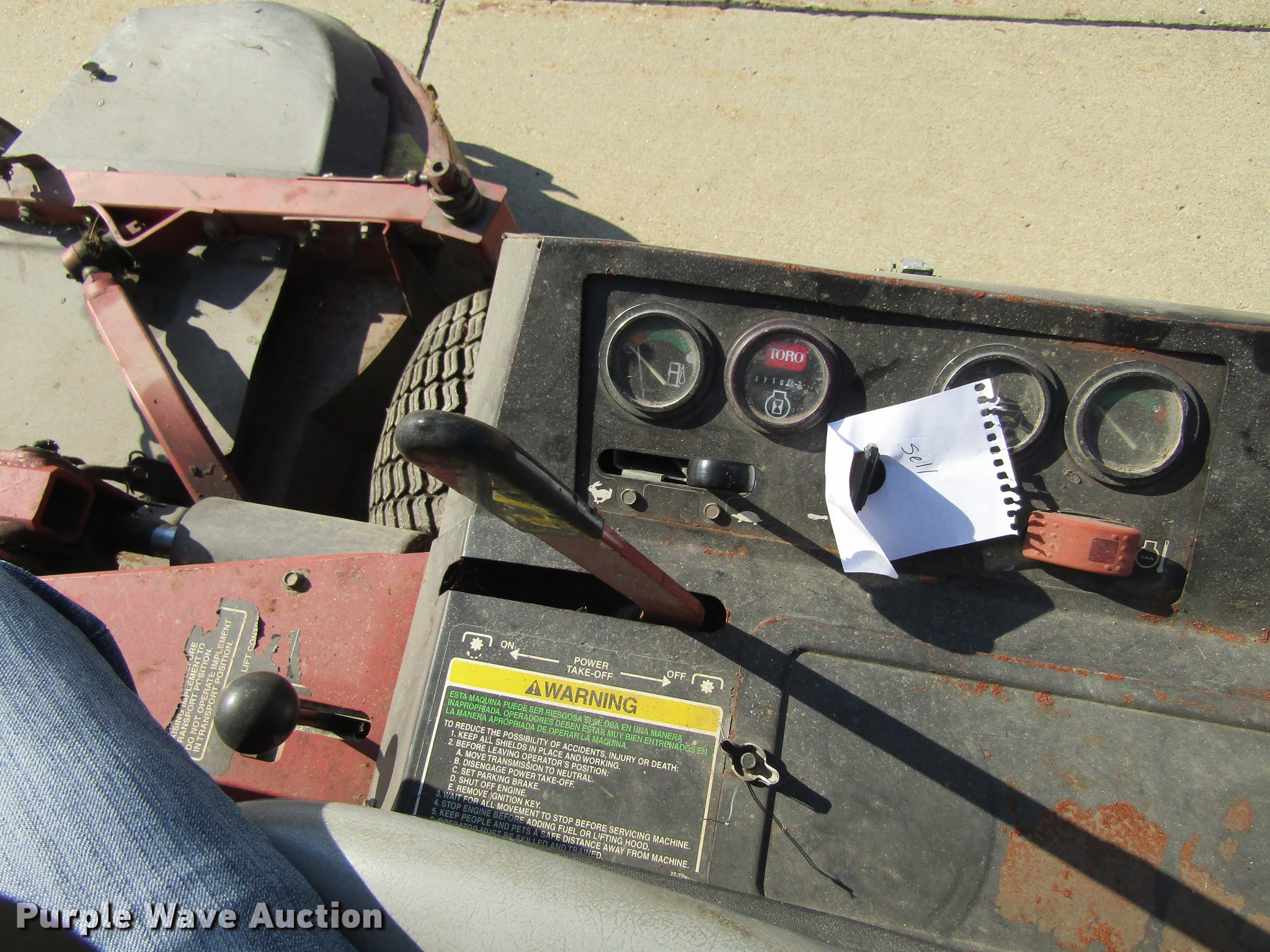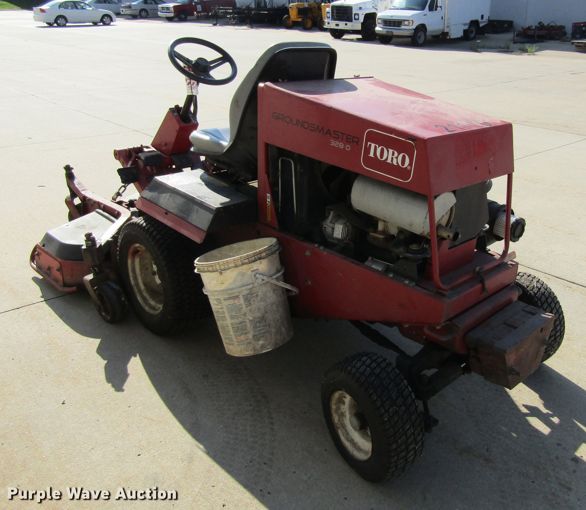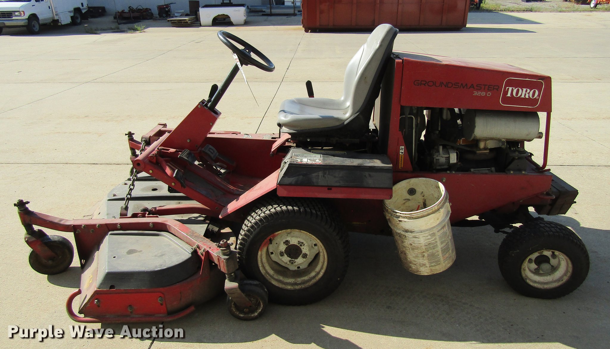 Purple Wave is selling a used Commercial Turf Mower in Iowa. This item is a 2003 Toro Groundsmaster 328D lawn mower with the following: 4,716 hours on meter, 72"W deck, Kubota three cylinder diesel engine, Hydrostatic transmission, 23 x 10.50-12 front tires, 16 x 6.5-8 rear tires, Serial 230000306