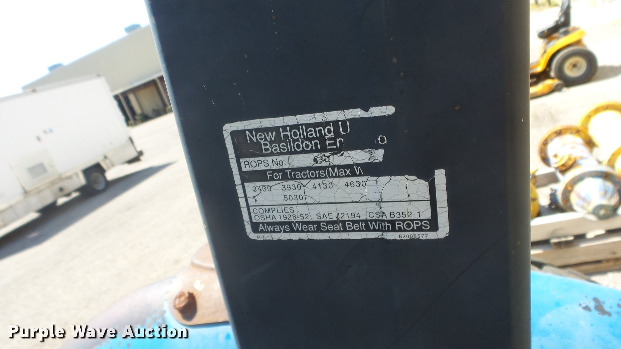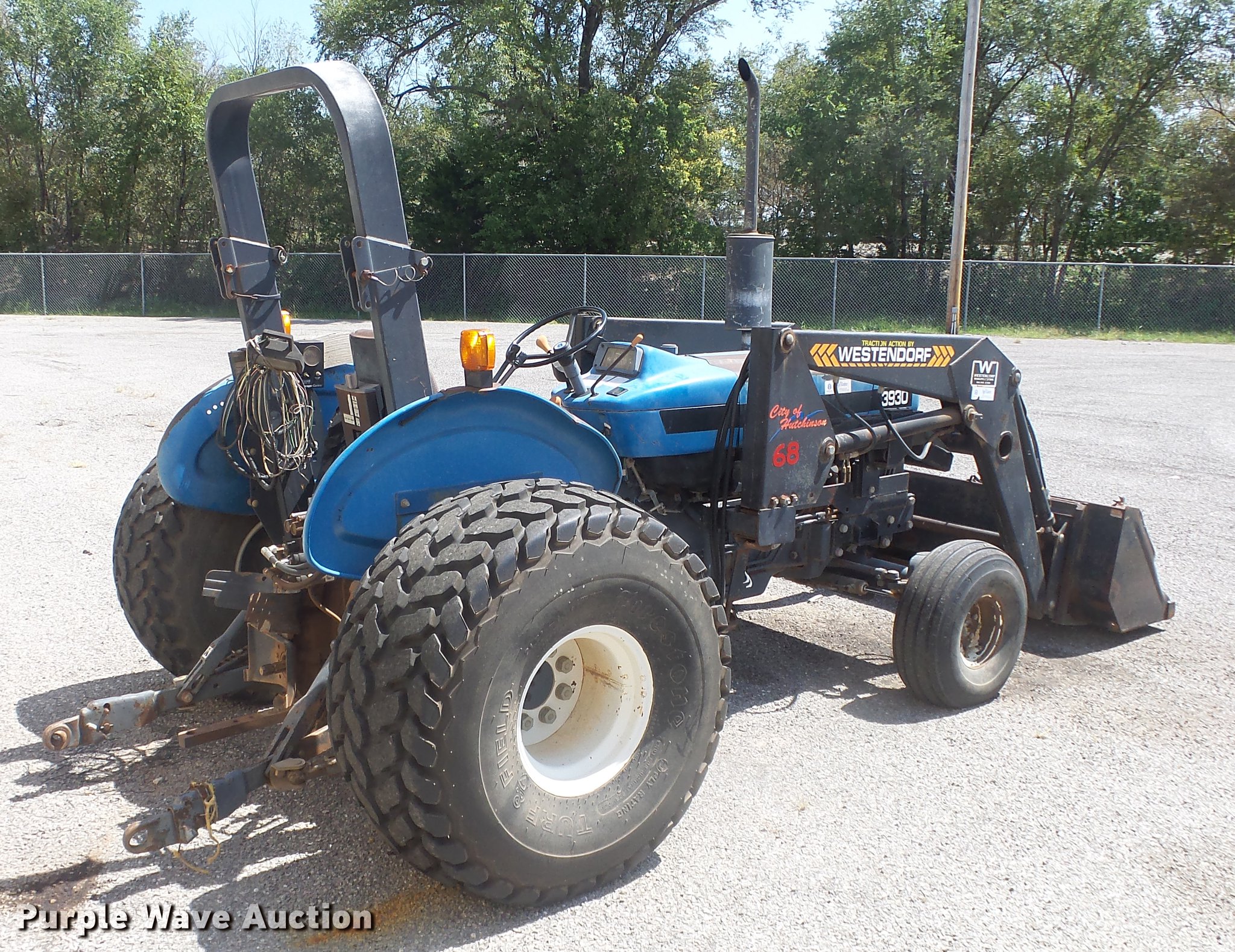 Purple Wave is selling a used Tractor in Kansas. This item is a New Holland 3930 tractor with the following: 2,140 hours on meter, Three cylinder diesel engine, Manual transmission, 8F-2R gears, ROPS, Work lights, Westendorf loader, 62"W bucket, Three point, 540 PTO, (3) rear hydraulic remote sets, 9.00-10 front tires, 21.5L-16.1 rear tires, PTO operational issues