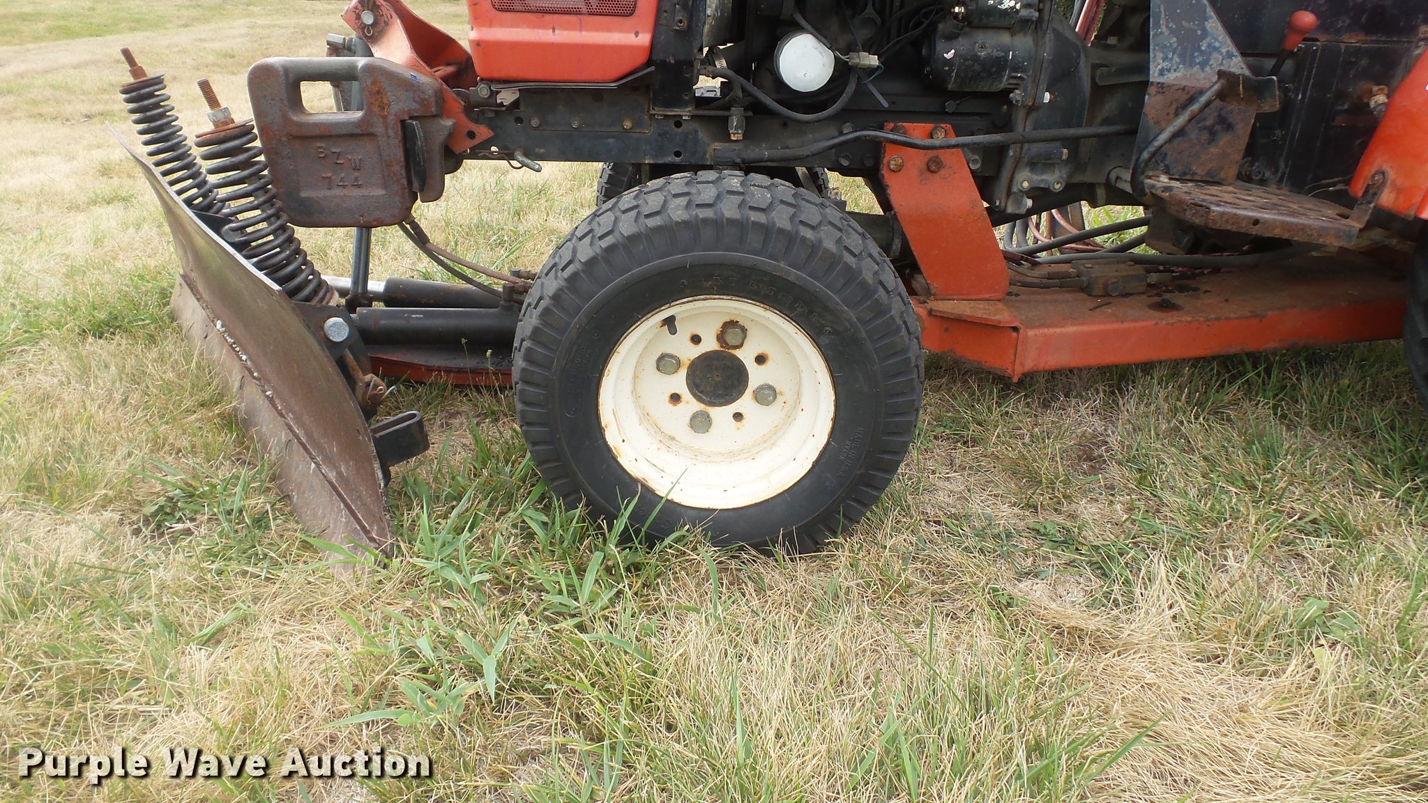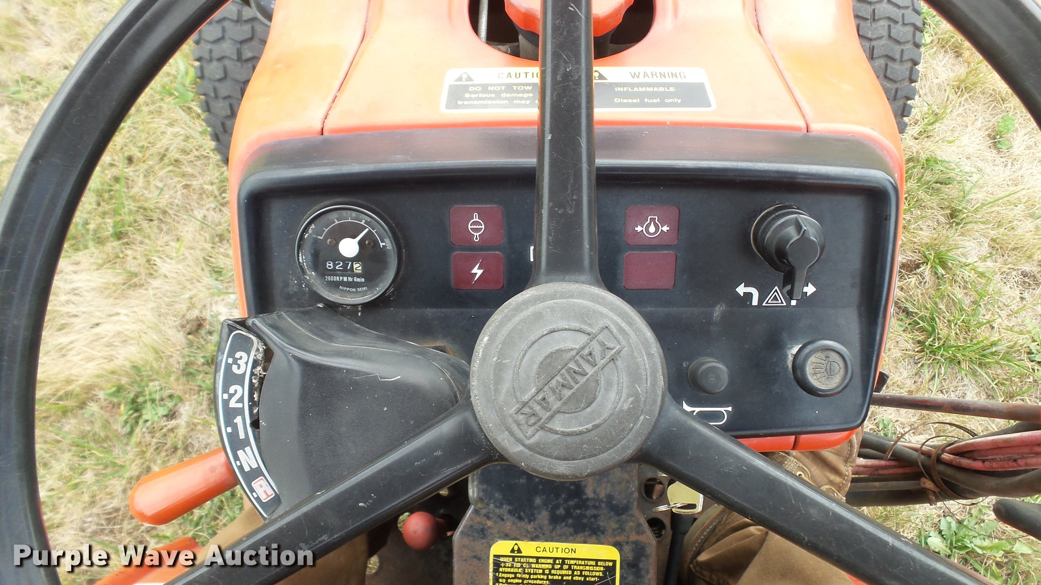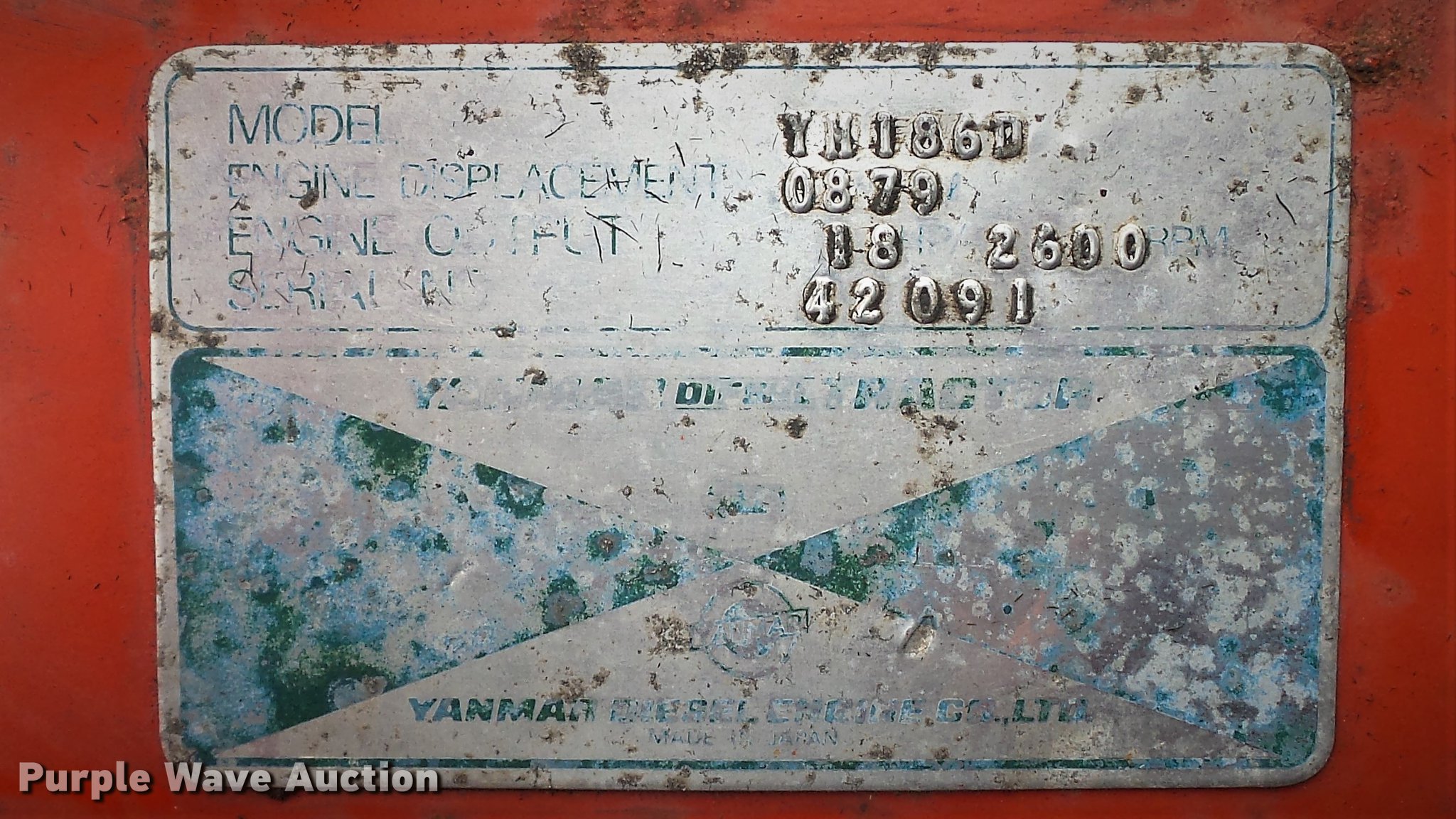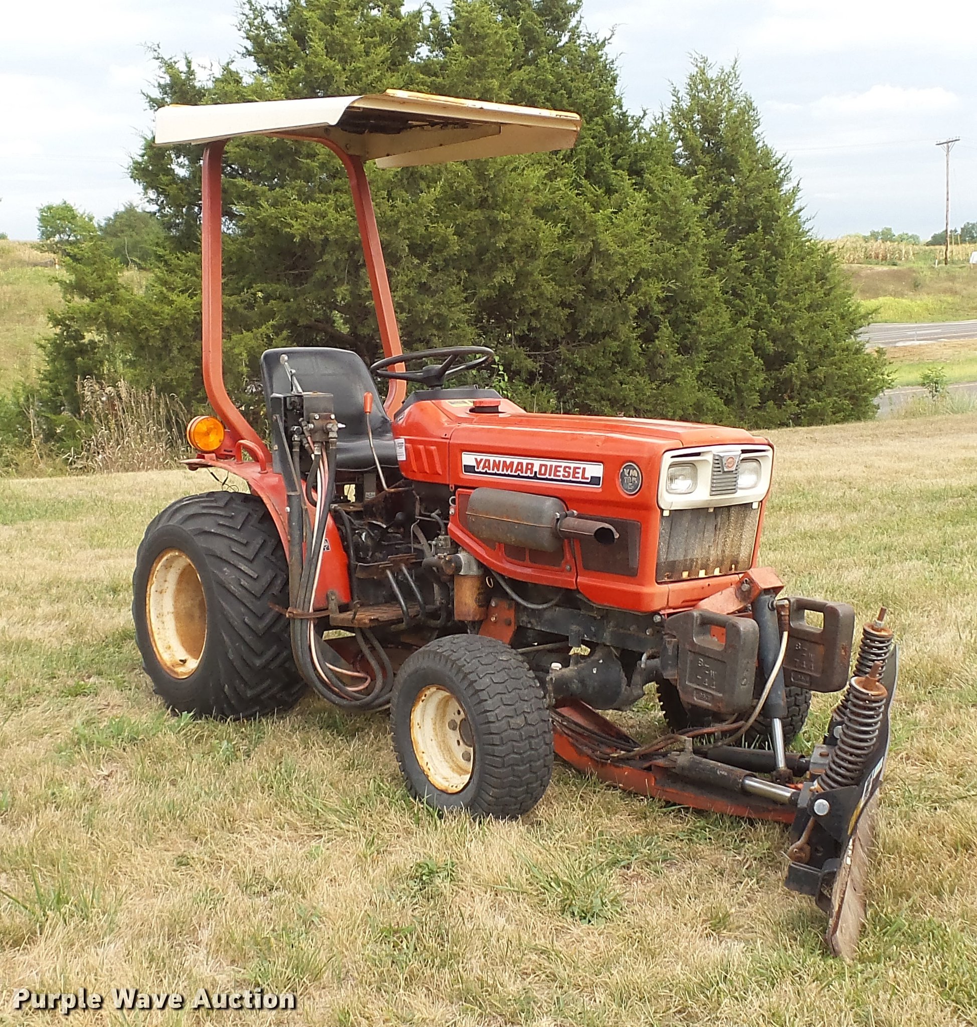 Purple Wave is selling a used Tractor in Missouri. This item is a Yanmar YM186D MFWD tractor with the following: 827 hours on meter, Yanmar 3T72HA three cylinder diesel engine, 18 HP, Powershift transmission, 9F-3R gears, Differential lock, Four wheel drive, Two post ROPS/canopy, Yanmar 53.5"W four-way dozer blade, Two-lever blade controls, Three point, Top link, 540 PTO, Draw bar, Yanmar YRB145 rear blade, 60"W, Bolt-on cutting edge, Adjustable angle, Three point, (2) suitcase weights, Adjustable rear axle width, 20x8.00-10 front tires, 31x15.50-15 rear tires, Serial 42091