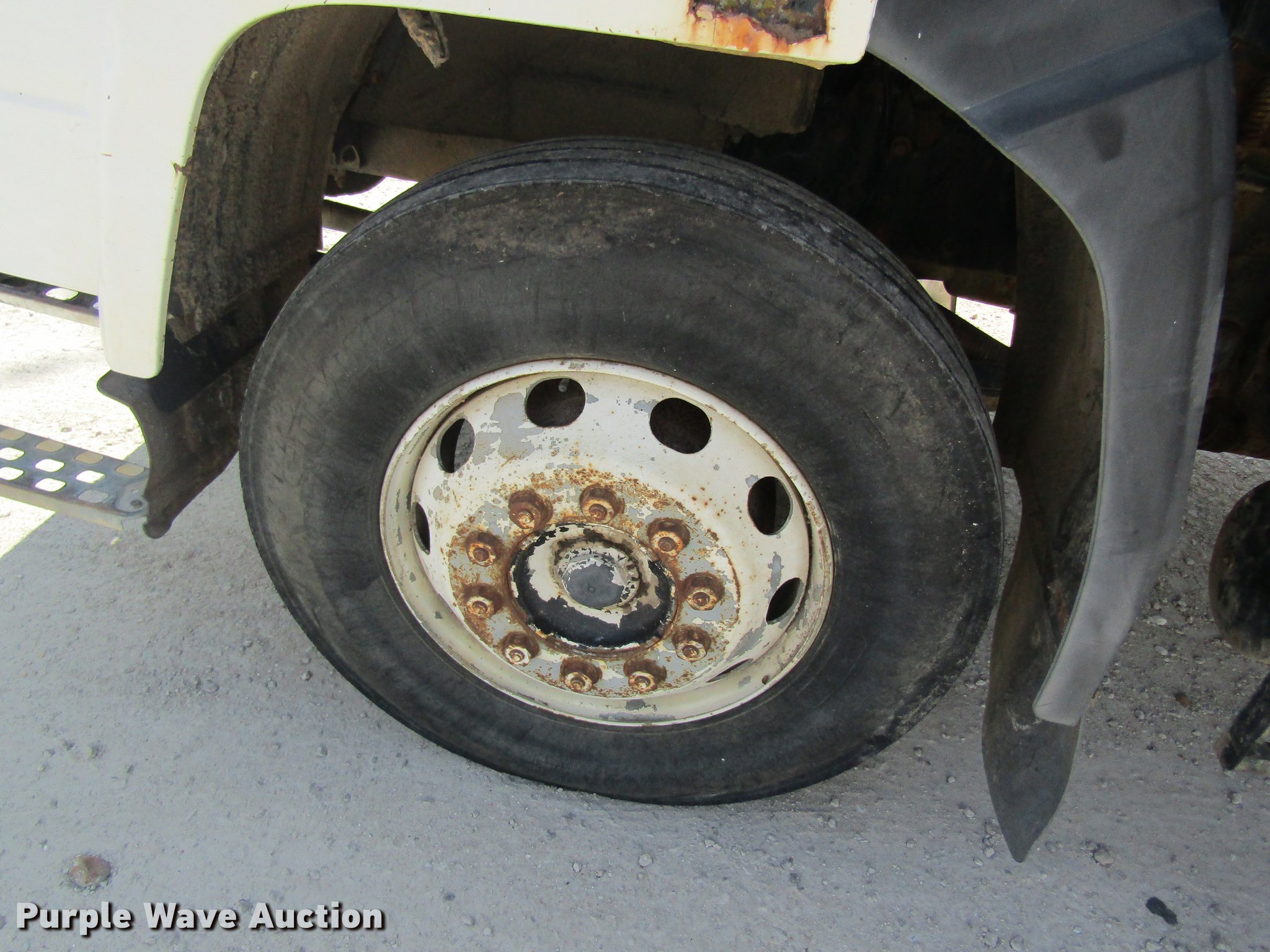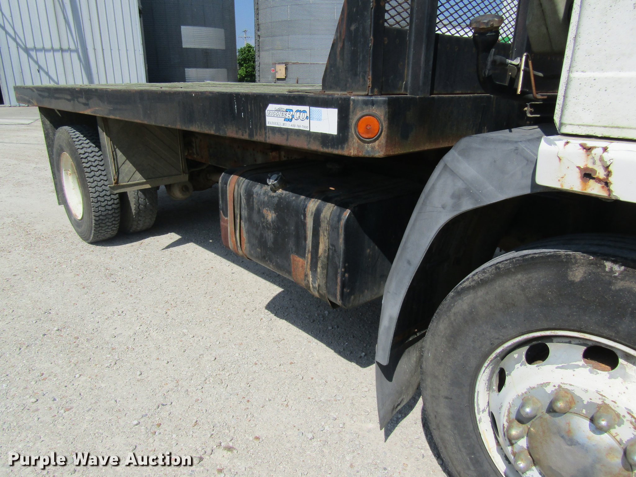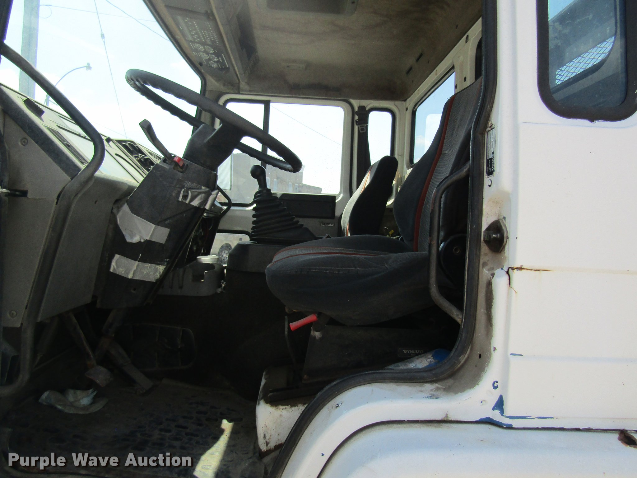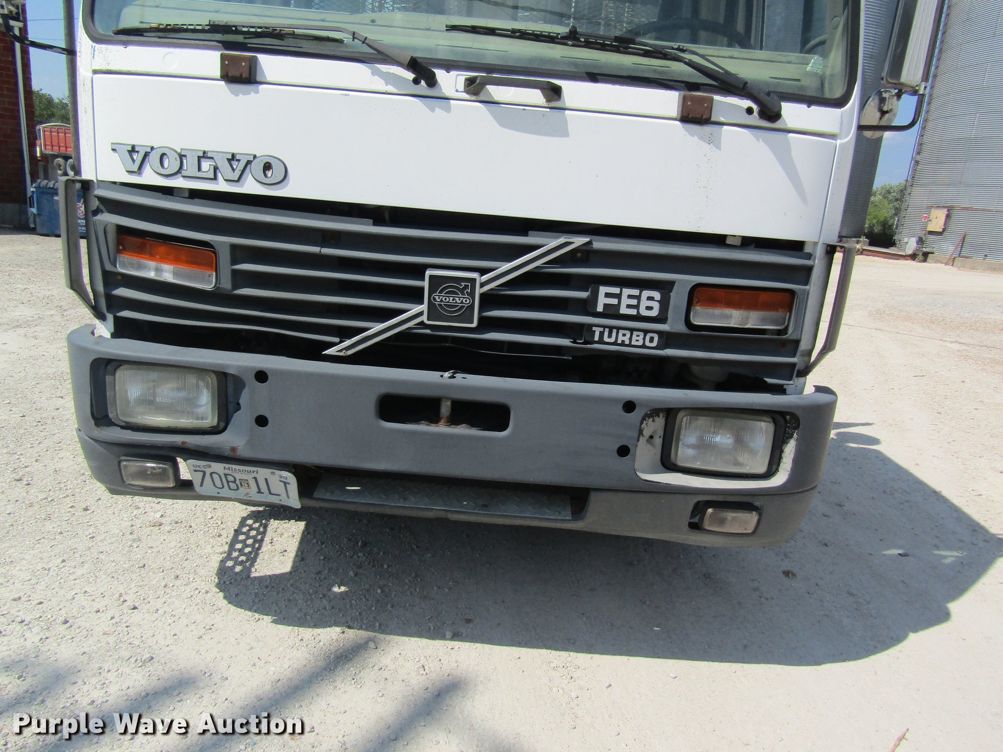 Purple Wave is selling a used Flat Bed Truck in Missouri. This item is a 1989 Volvo FE613 flatbed truck with the following: 34,738 miles on odometer, Six cylinder diesel engine, Five speed manual transmission, Single axle, Heat, AM/FM, Suspension seat, 16'L x 8'W flatbed, Wood deck, Stake pockets, Single fuel tank, Trailer wiring, Spring suspension, Air brakes, 275/80R22.5 tires, Flat tire