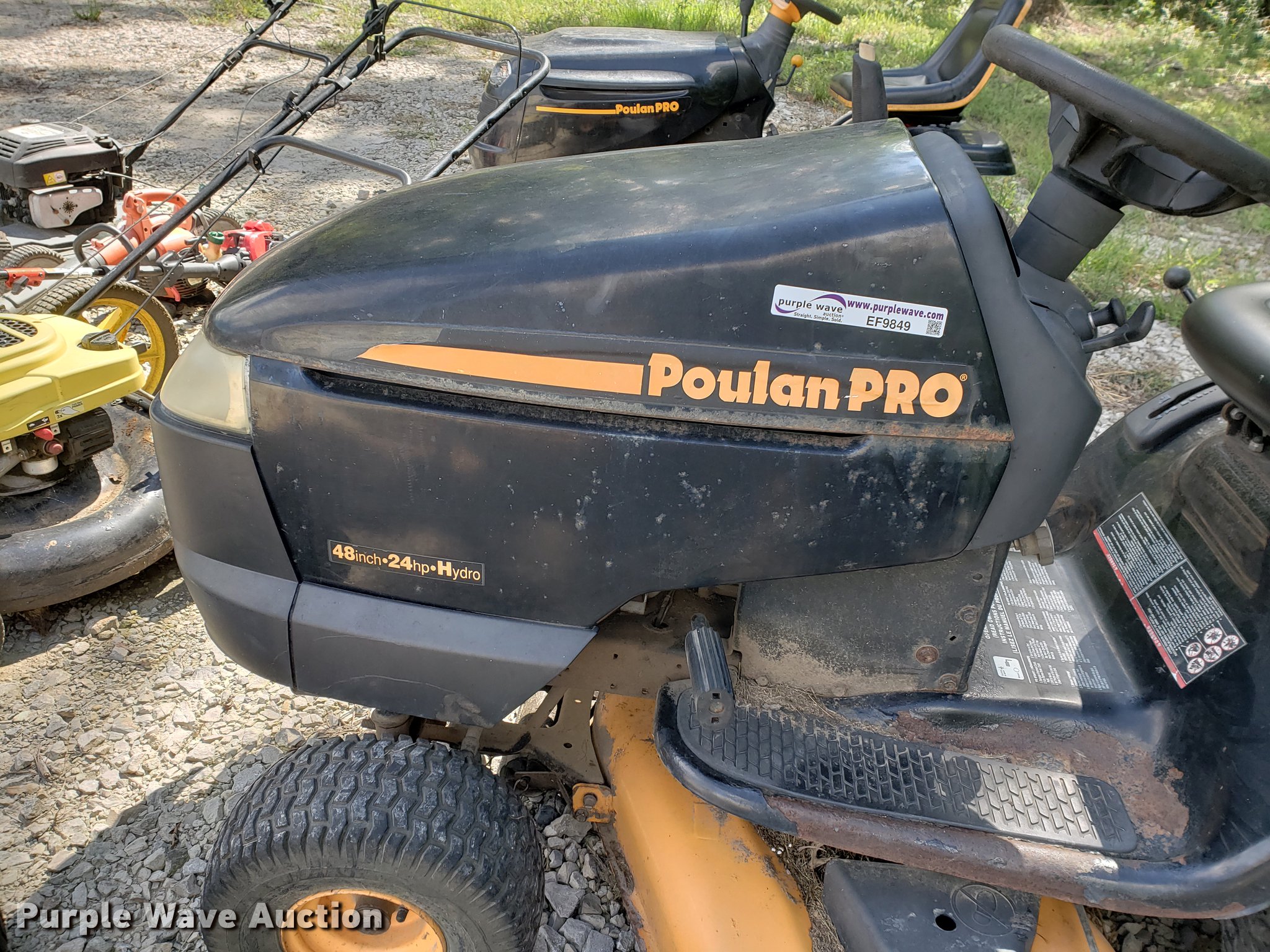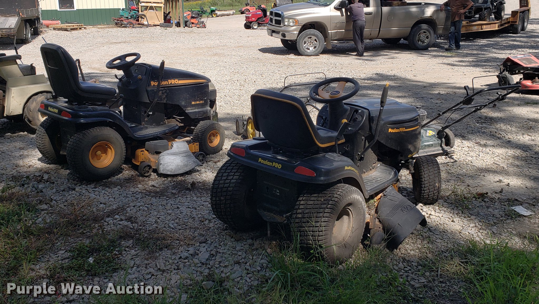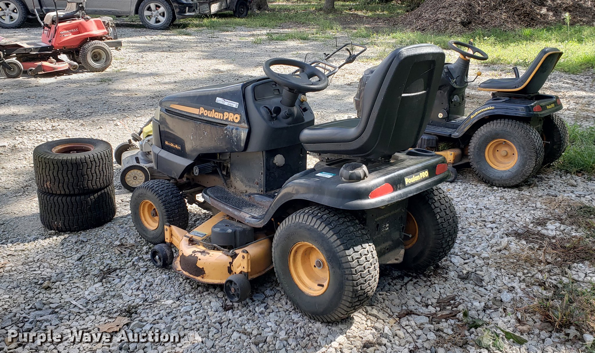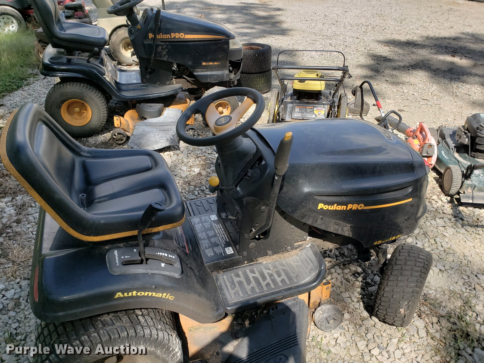 Purple Wave is selling a used Lawn and Garden in Missouri. This item is a Lawn and garden equipment with the following: Poulan Pro lawn mower, 48" cut, 24 HP engine, Hydrostatic transmission, Poulan Pro lawn mower, 42" cut, 18 HP engine, Hydrostatic transmission, Craftsman push mower, 22" cut, 6 HP engine, Leaf blower, Troy Built string trimmer, Stanley push mower, 22" cut, 6 HP engine, Items are non-operational