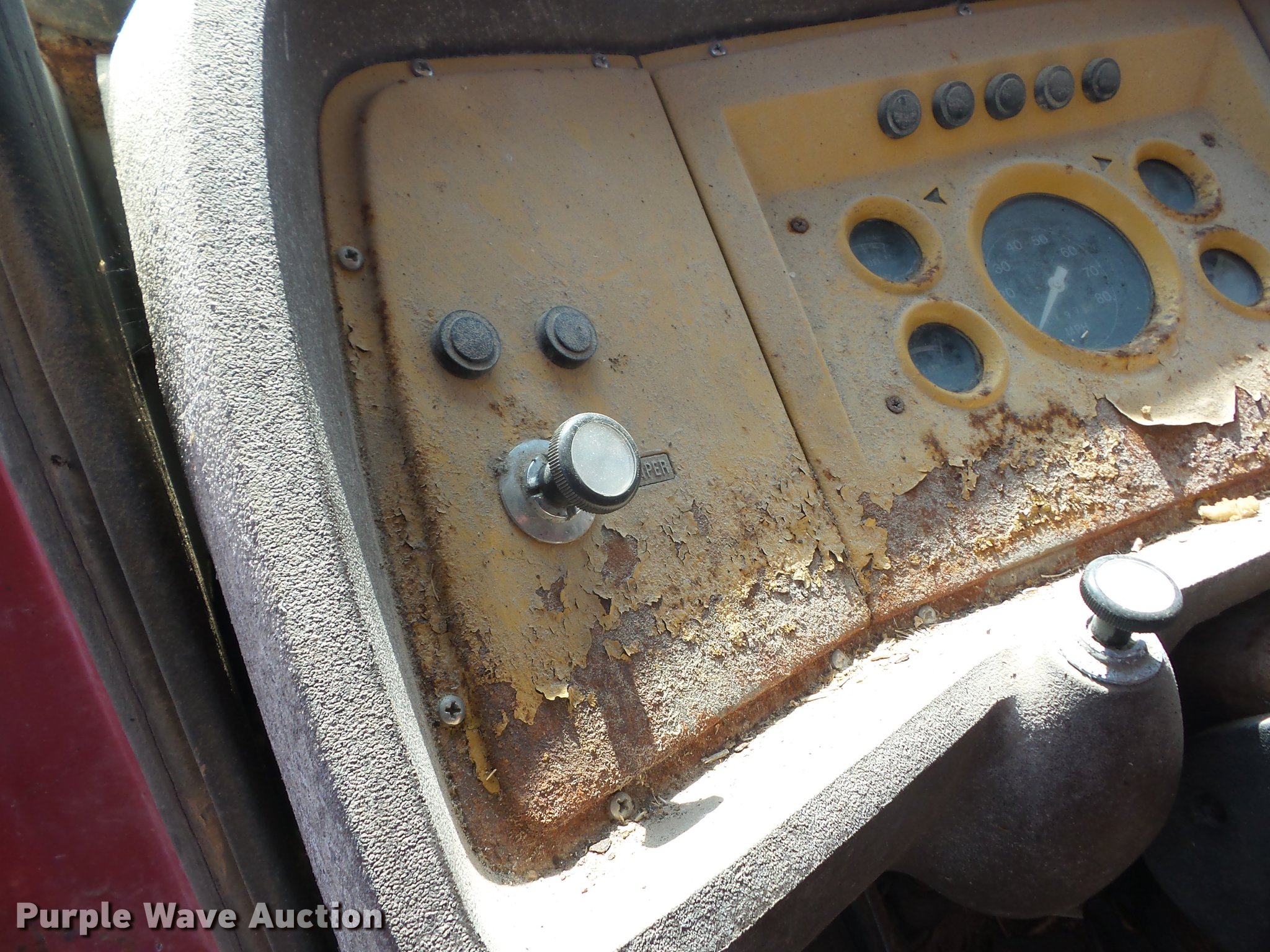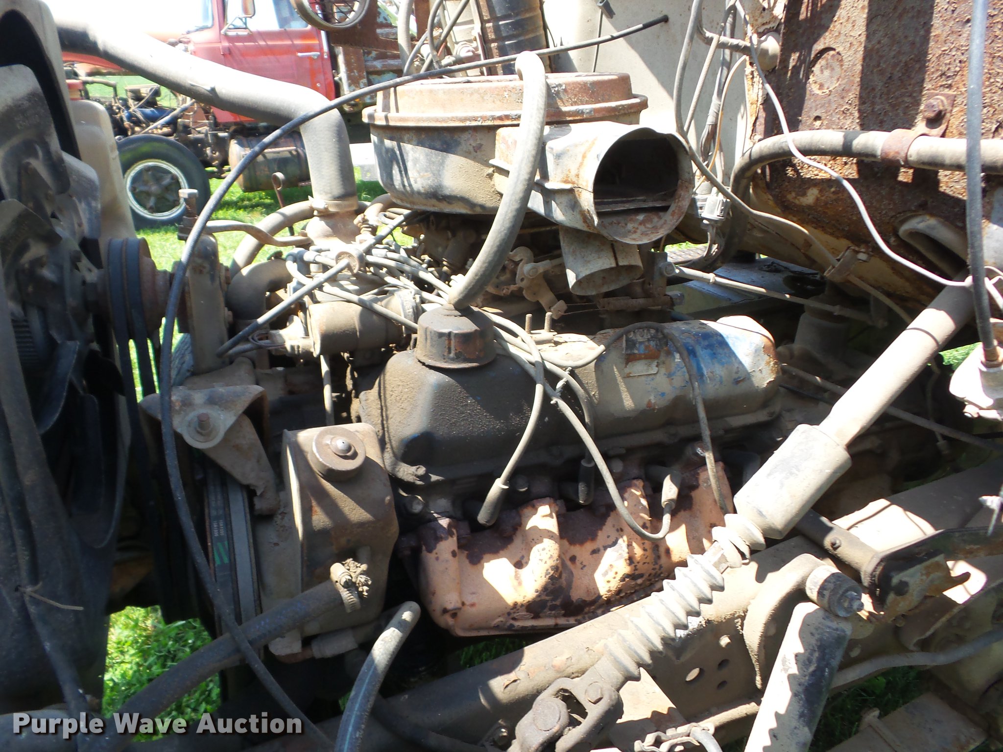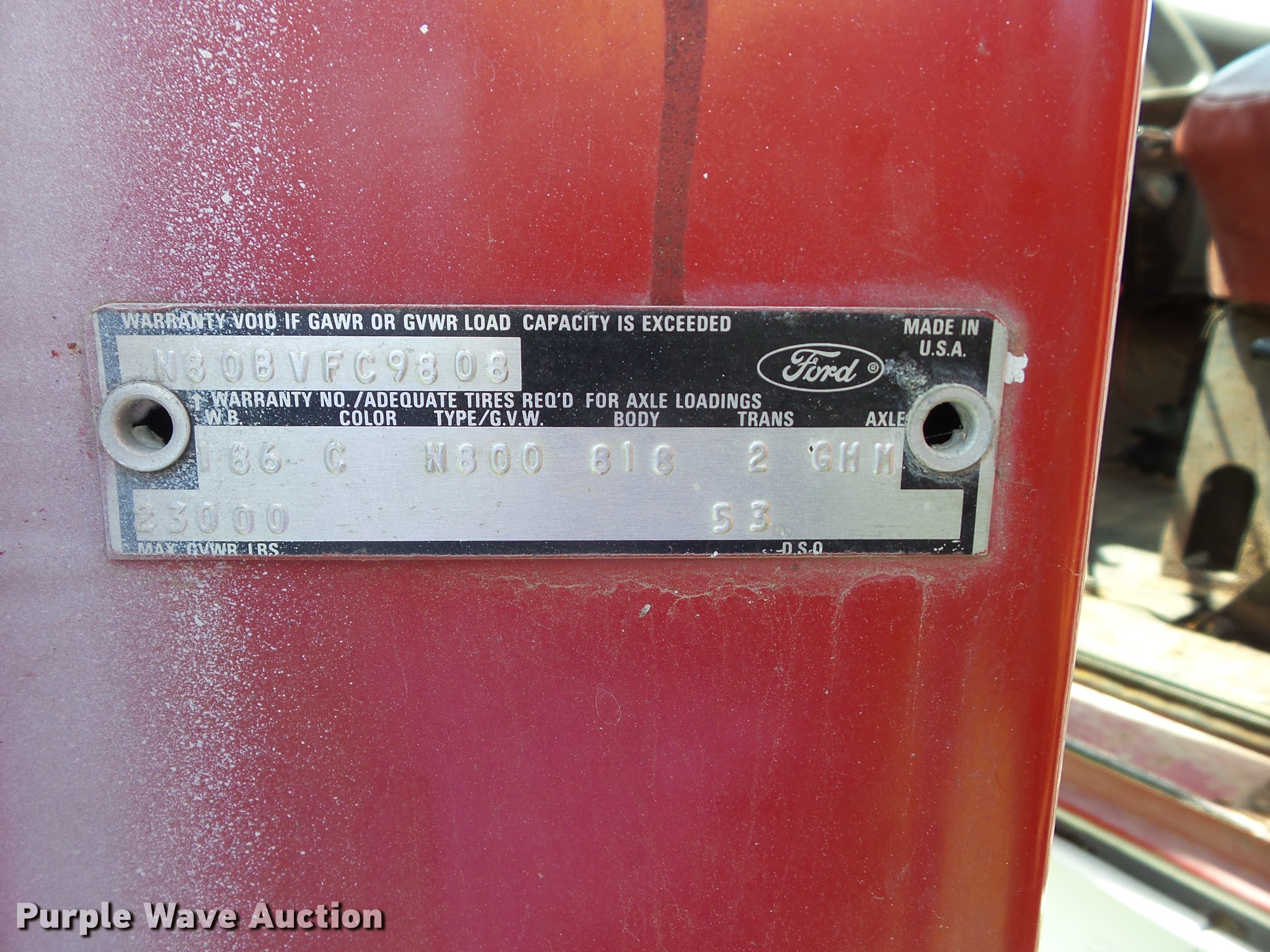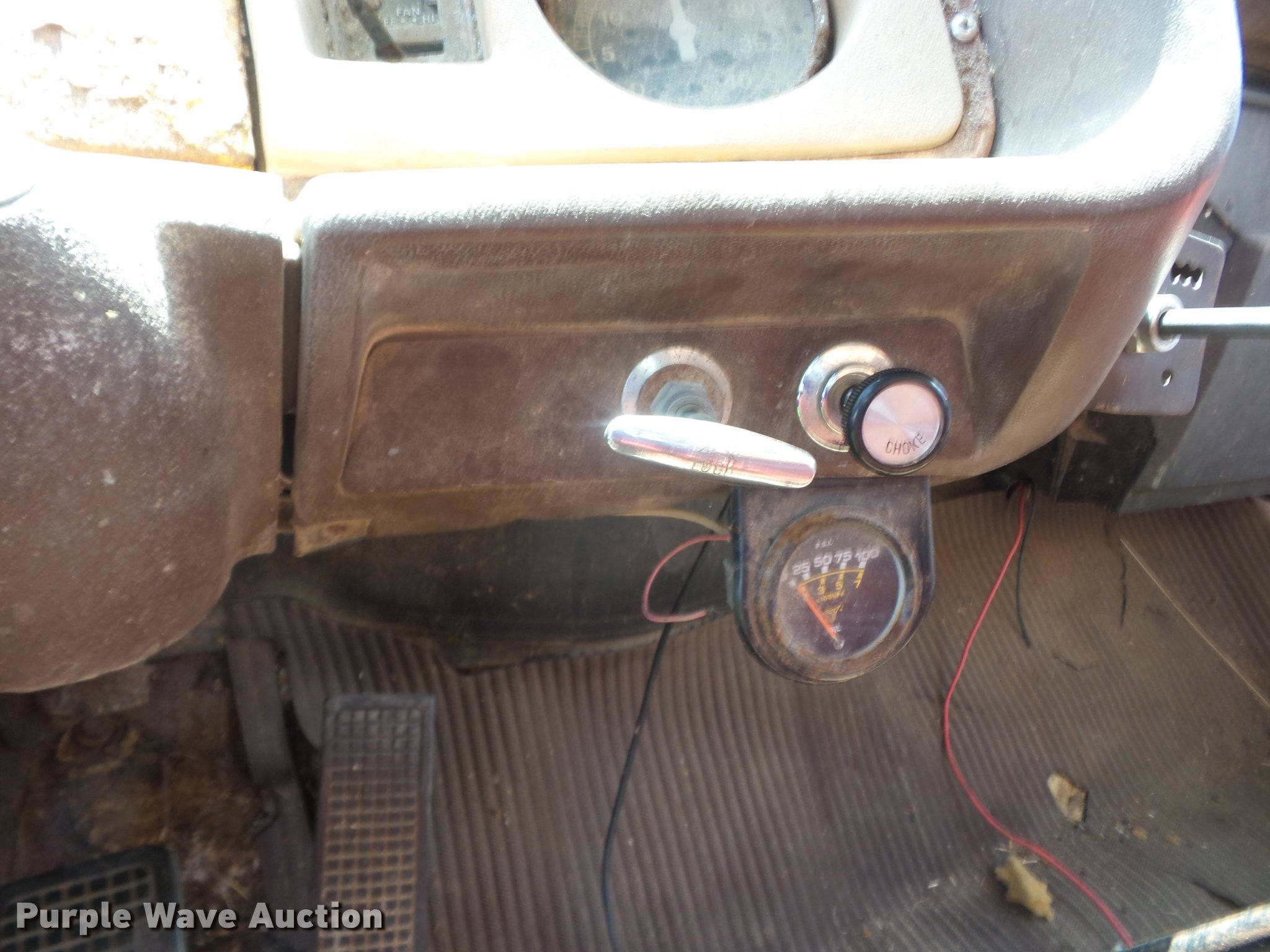 Purple Wave is selling a used Grain Truck in Kansas. This item is a 1979 Ford 800 grain truck with the following: 71,797 miles on odometer, Ford eight cylinder gas engine, Five speed manual transmission, Two speed rear end, Single axle, Heat, AM, Suspension seat, PTO, 16'4"L x 96"W steel grain bed, 52" side height, Single ram hoist, Manual end gate, Spring suspension, Hydraulic brakes, 10-20 front tires, 10.00R20 rear tires