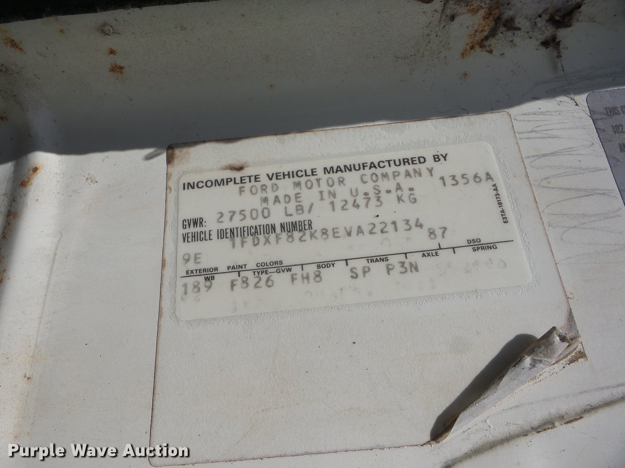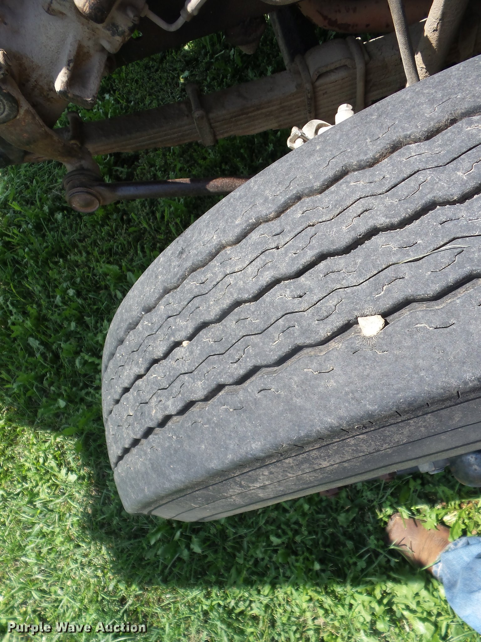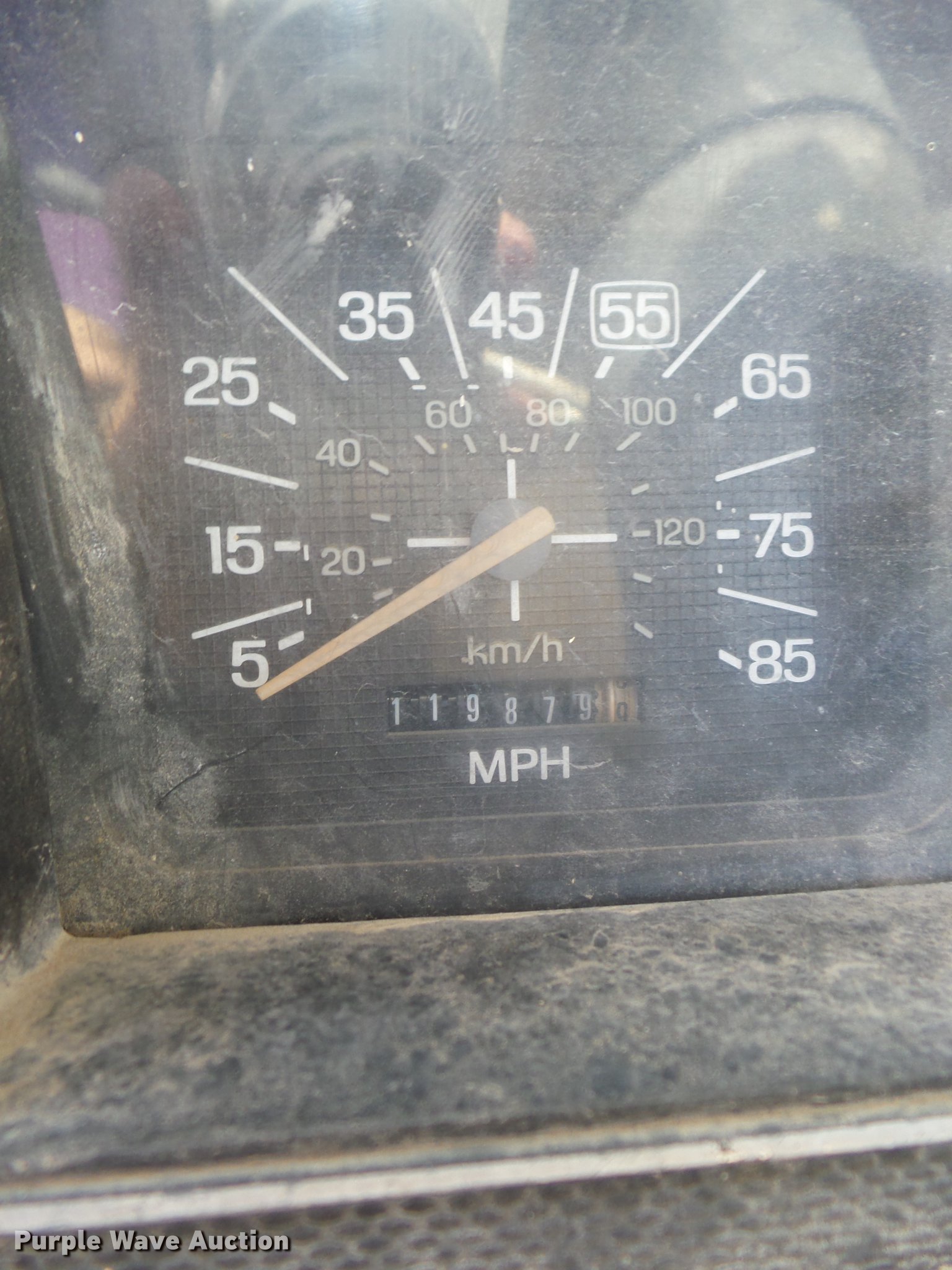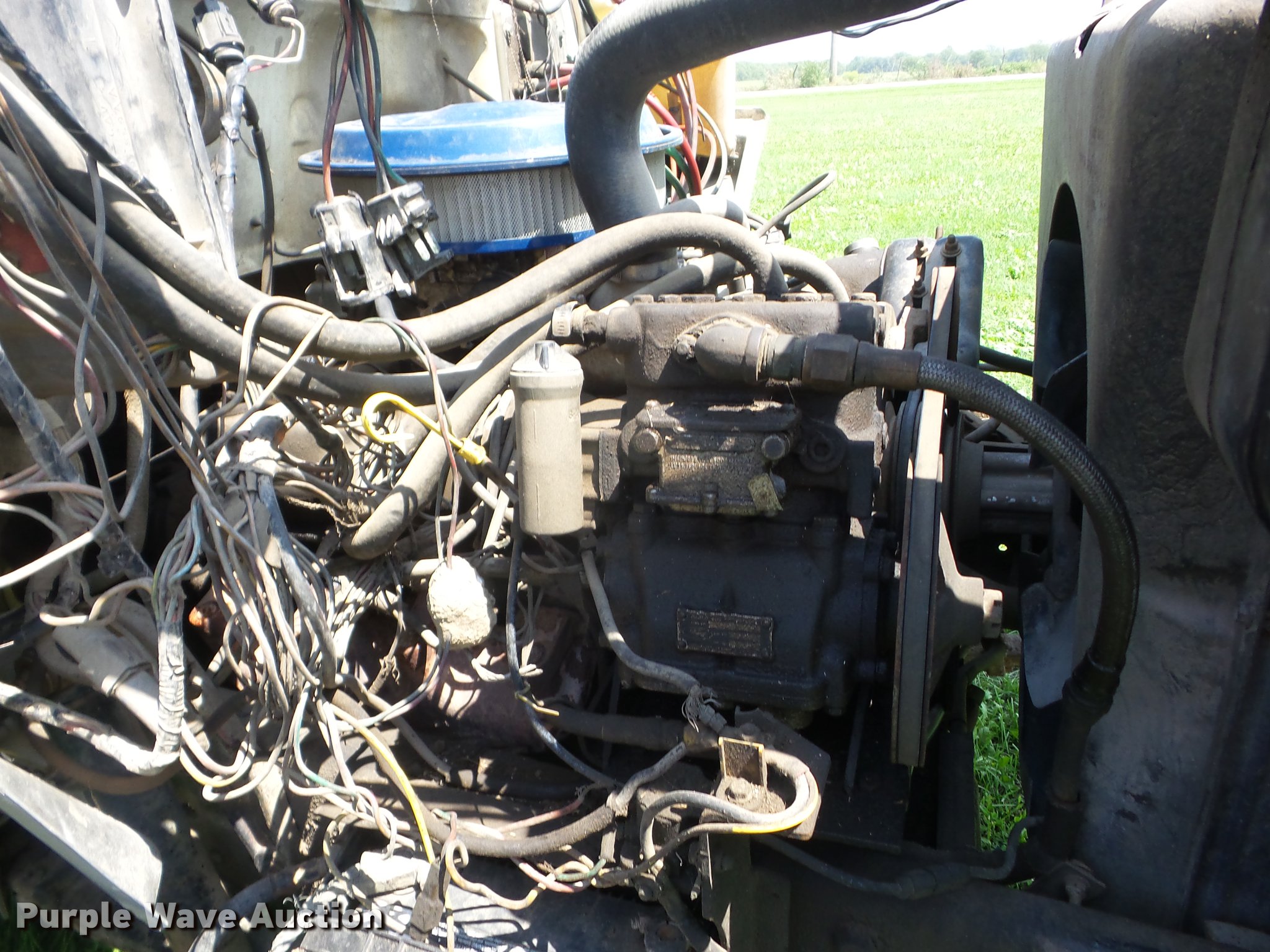 Purple Wave is selling a used Truck Chassis in Kansas. This item is a 1984 Ford F700 flatbed truck with the following: 119,879 miles on odometer, Ford 7.0L V8 gas engine, Five speed manual transmission, Two speed rear end, Single axle, Heat, Suspension seat, Dual fuel tanks, Fifth wheel plate, Spring suspension, Air brakes, 139" wheelbase, 9.00-20 front tires, 10R22.5 rear tires, GVWR 27,500 lbs
