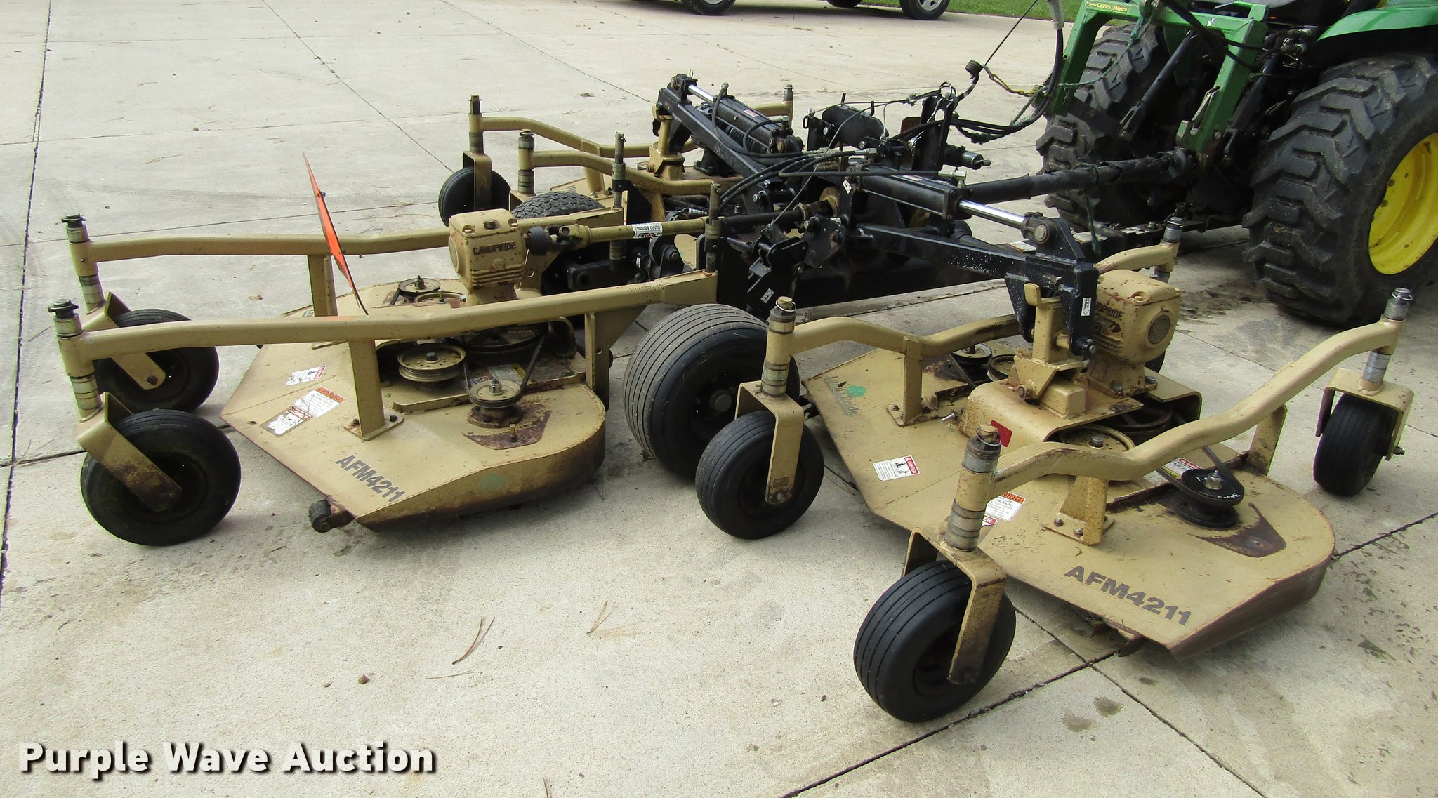 Purple Wave is selling a used Mower, Cutter, Shredder in Iowa. This item is a Land Pride AFM4211 rotary mowers with the following: 11'W cut overall, (3) decks, 18x9.5-8 main tires, 13x5.0-6 deck tires, Tractor not included, Serial 365484