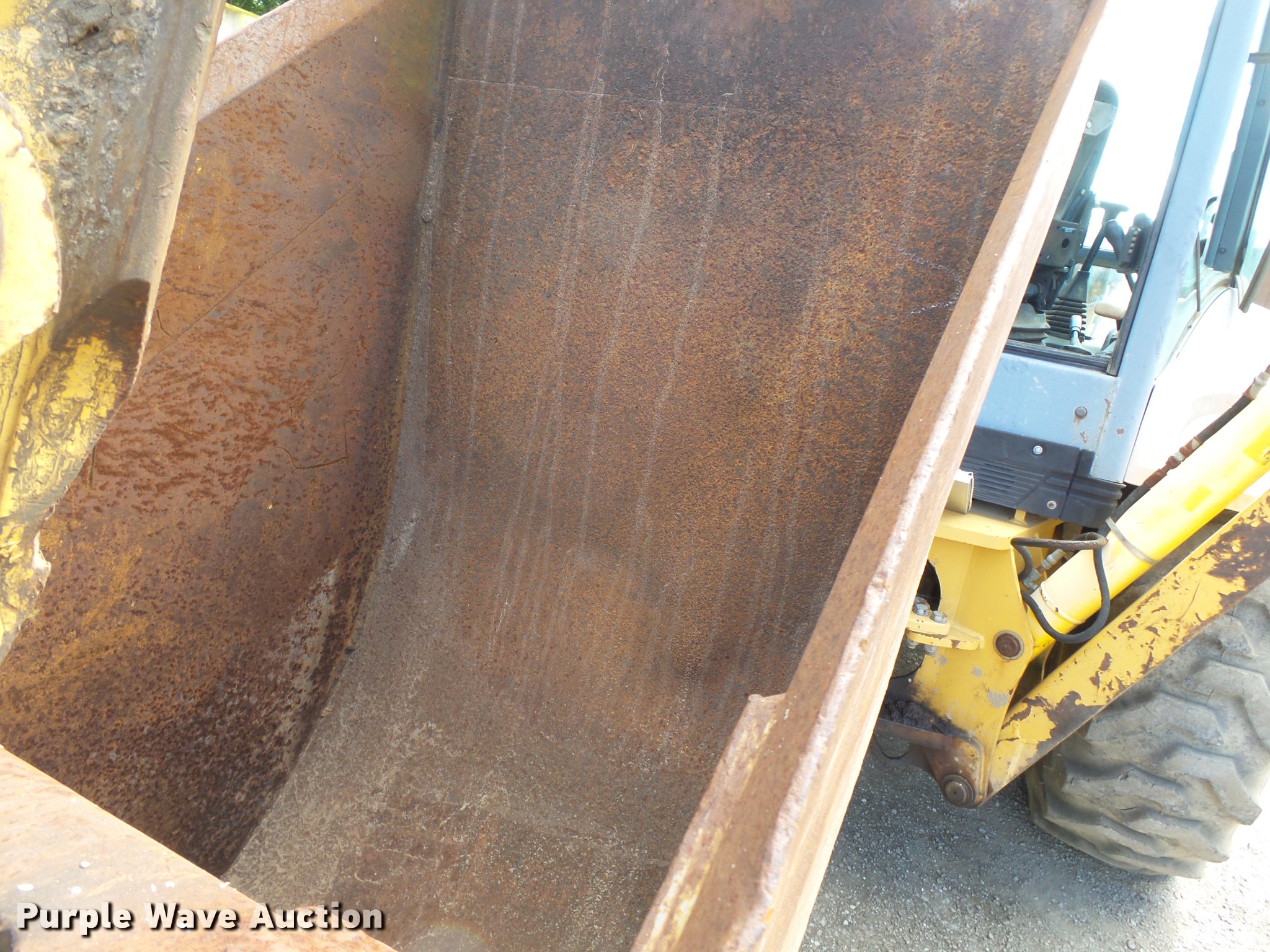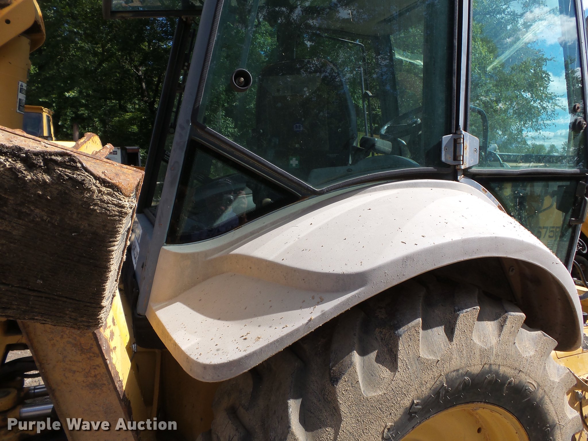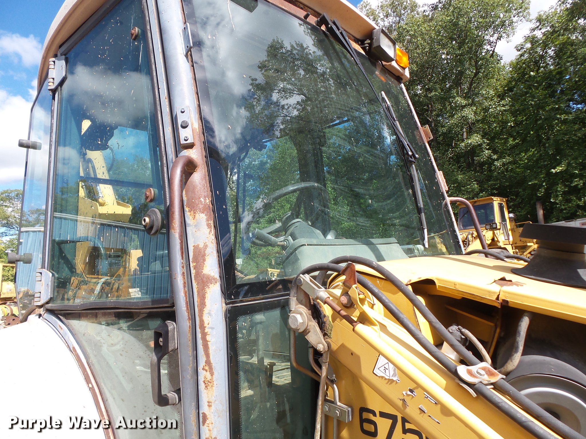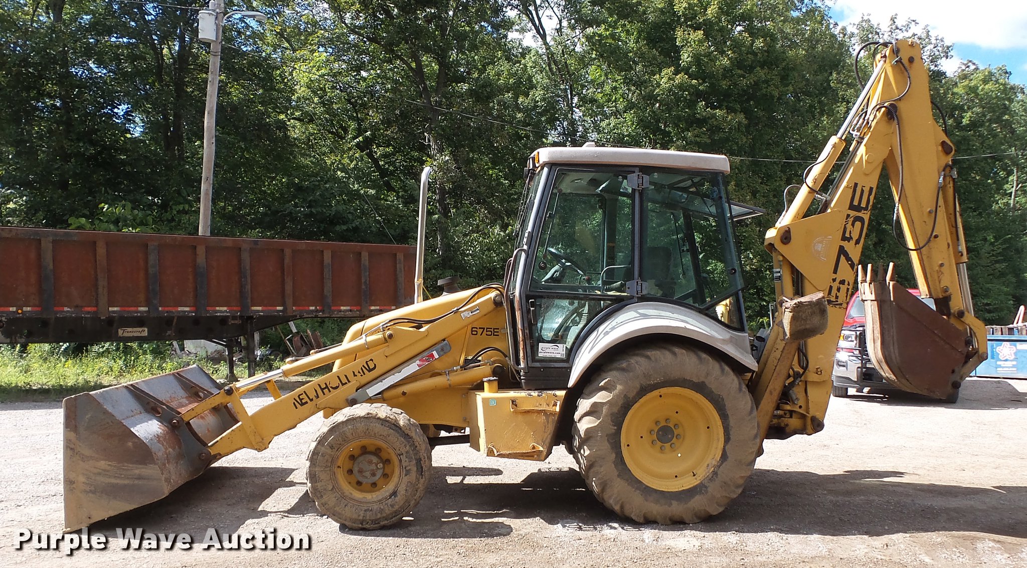 Purple Wave is selling a used Tractor Loader Backhoe in Missouri. This item is a 1999 New Holland 675E backhoe with the following: 2,416 hours on meter, 5.0L four cylinder diesel engine, Serial PD834268, Shuttle shift transmission, 4F-4R gears, Four wheel drive, Differential lock, EROPS, Heat, Suspension seat, Wobble stick backhoe controls, Wipers, Front and rear work lights, 89"W loader bucket, Weld-on cutting edge, 18.5' maximum digging depth, E-stick, 24"W backhoe bucket, (4) teeth, Front counter weights, 12-16.5 front tires, 16.9/28 rear tires, Engine shield missing, Serial 031018328