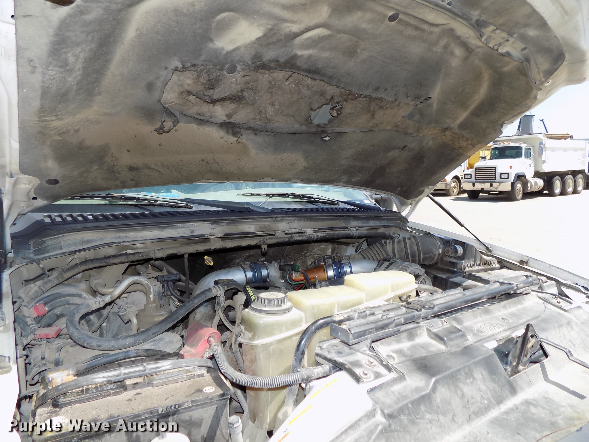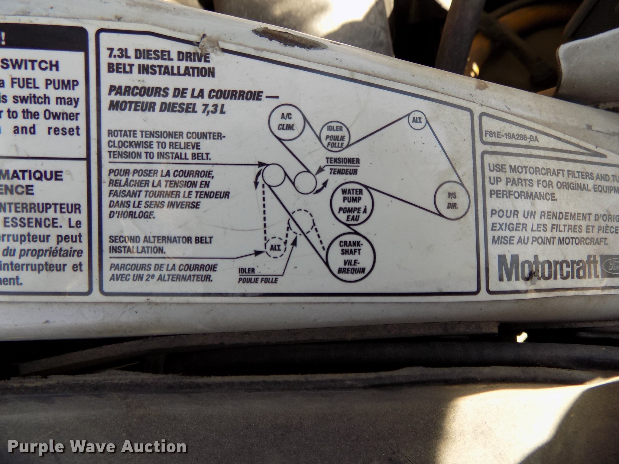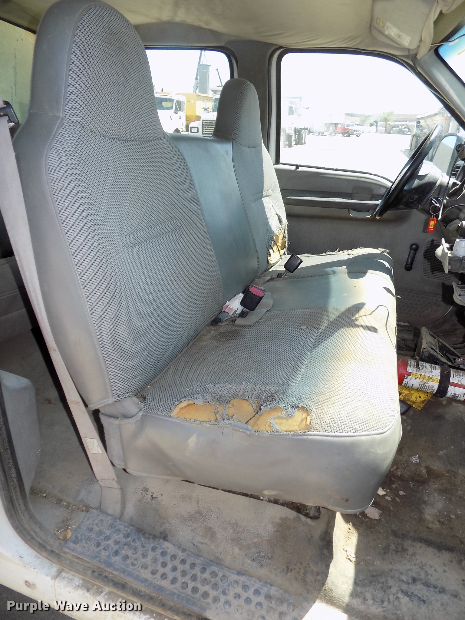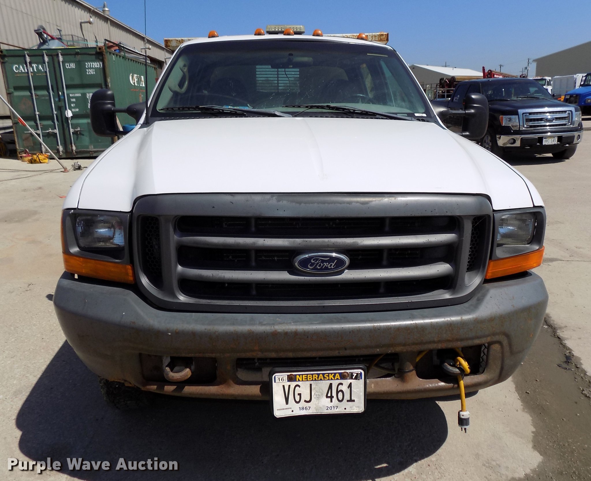 Purple Wave is selling a used Construction Dump Truck in Nebraska. This item is a 1999 Ford F450 Super Duty Crew Cab dump truck with the following: 157,199 miles on odometer, 7.3L V8 diesel engine, Automatic transmission, Four wheel drive, Single axle, AC and heat, AM/FM, Suspension seat, Trailer brake controller, Running boards, 9'L x 89"W steel dump bed, 11" side height, 6" side board height, Electric over hydraulic hoist, Manual operated end gate, Recessed toolbox, 176" wheelbase, Hydraulic brakes, 225/70R19.5 tires, GVWR 15,000 lbs, Unknown operating condition of AC, Hood will not stay up, Contents not included, Dump bed will be emptied prior to auction, Unit# 186