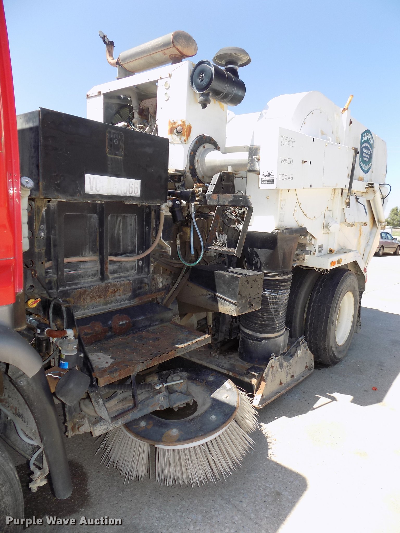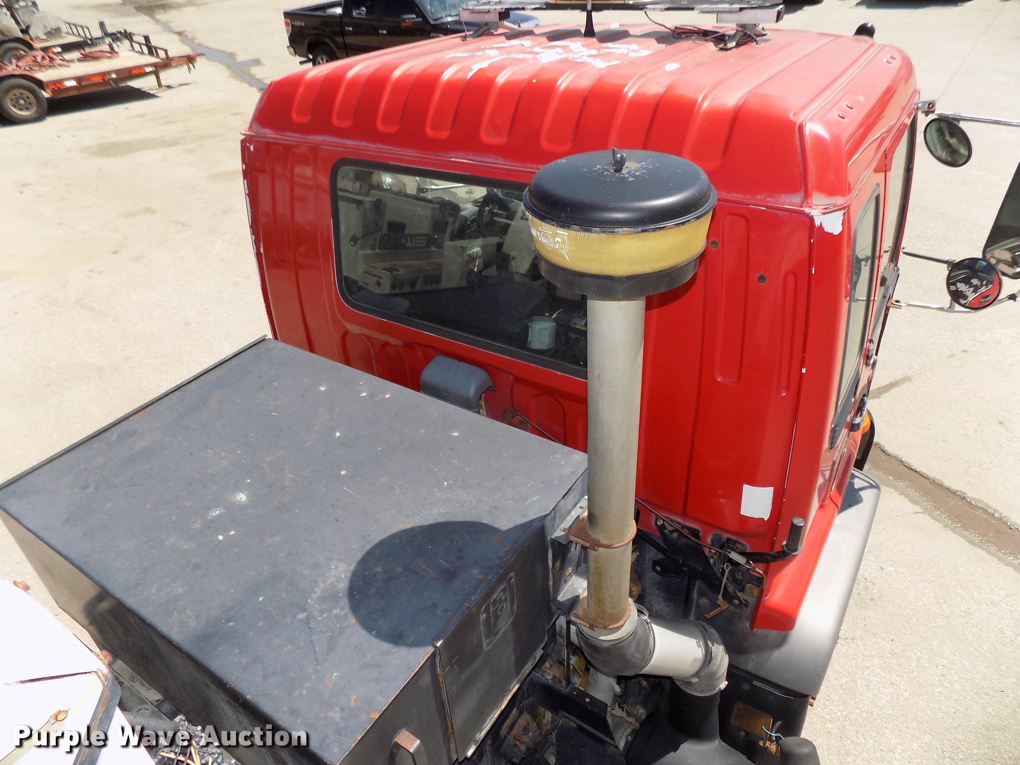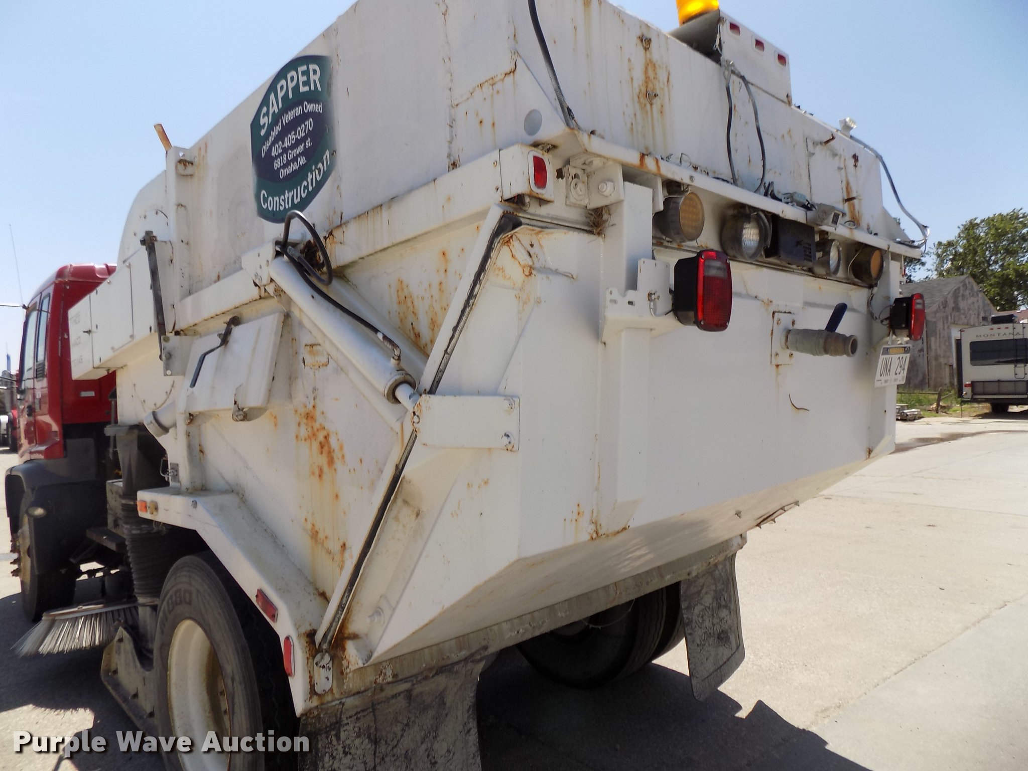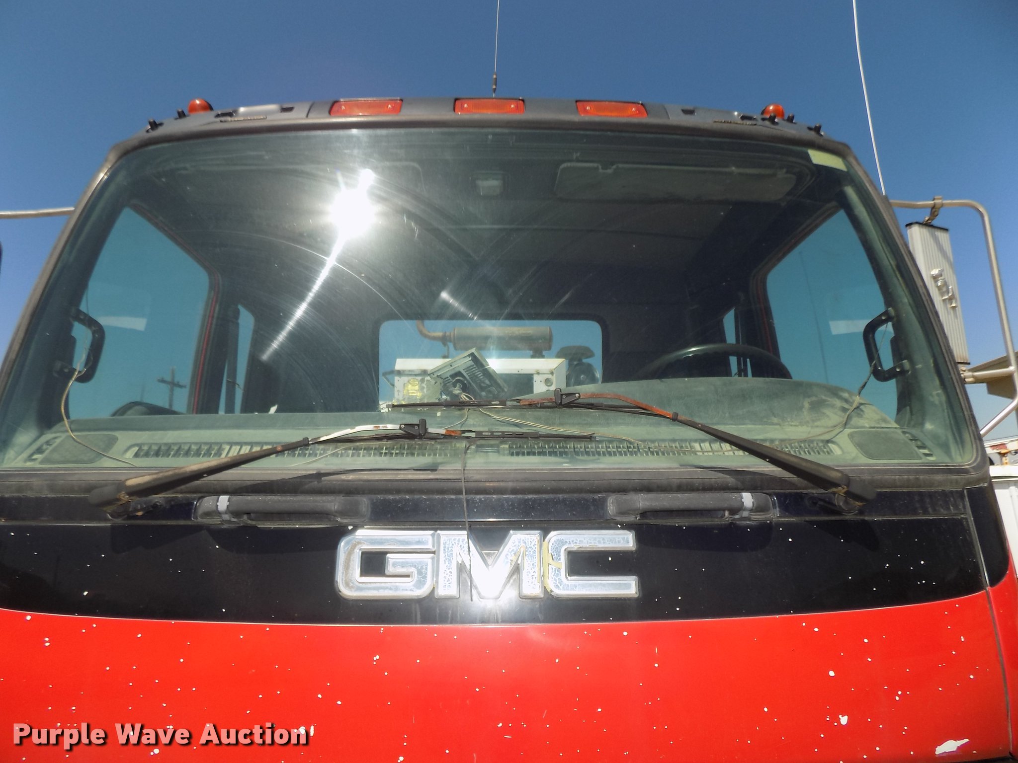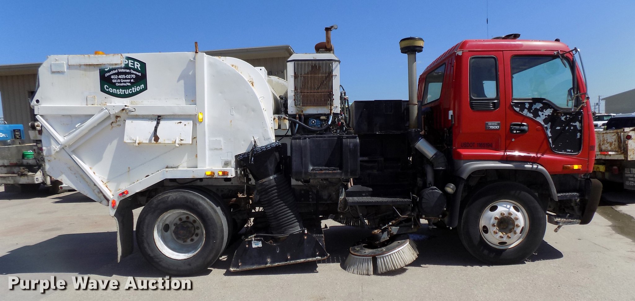 Purple Wave is selling a used Street Sweeper Truck in Nebraska. This item is a 1997 GMC T7500 street sweeper with the following: 162,520 miles on odometer, 734 hours on meter, Caterpillar 3116 6.6L six cylinder turbo diesel engine, Automatic transmission, Single axle, Heat, Tilt, AM/FM, Suspension seat, Backup alarm, Ecco backup camera, Beacon light, Tymco hydrovac, 7,241 hours on meter, John Deere 4045DF150R 4.5L four cylinder diesel engine, Steel tank, 89"W poly bristle center broom, 30"W gutter brooms, Single fuel tank, Spring suspension, Air brakes, 11R22.5 tires, GVWR 30,000 lbs, Annual inspection valid through September 2018, Unit# 190