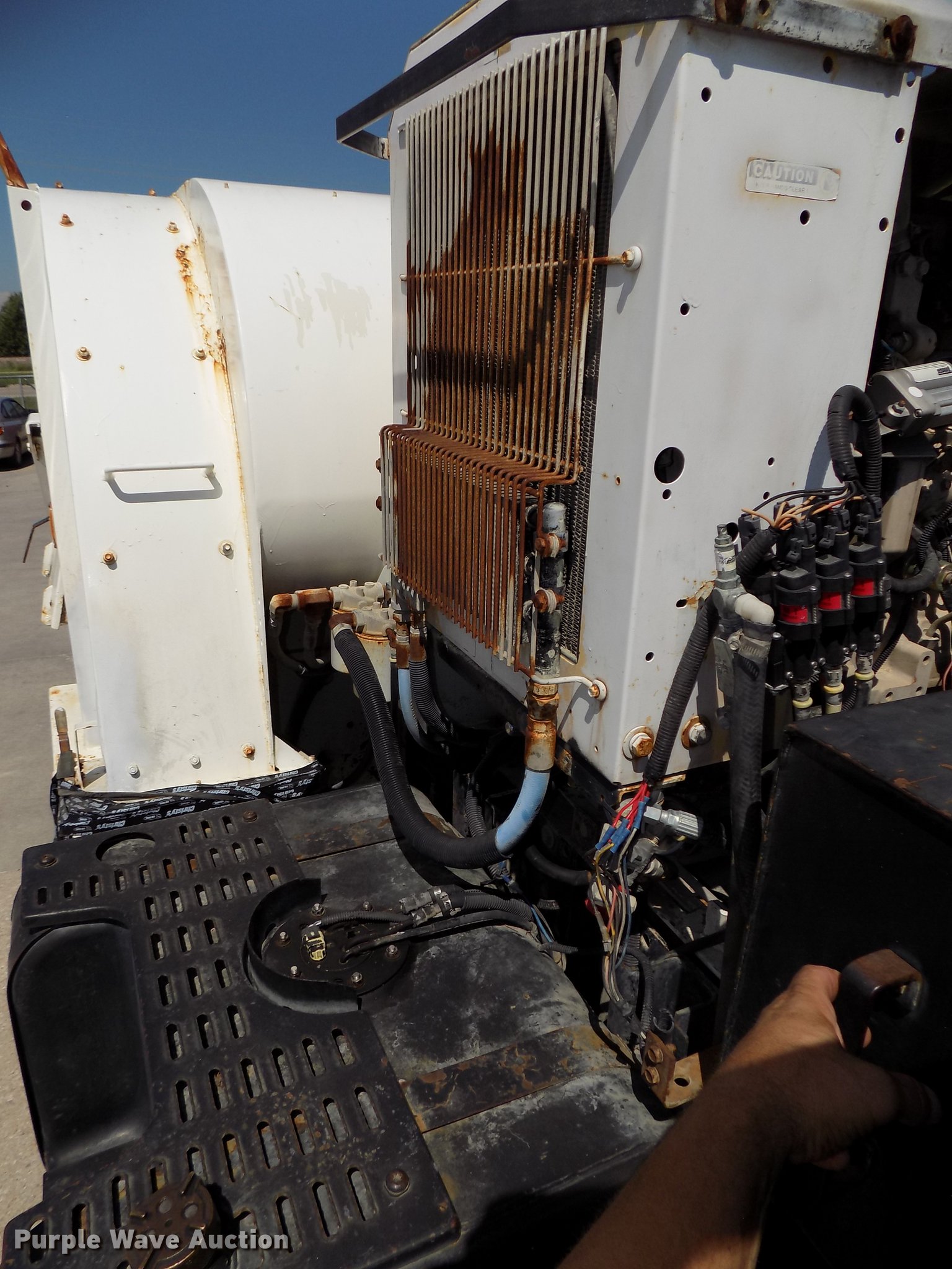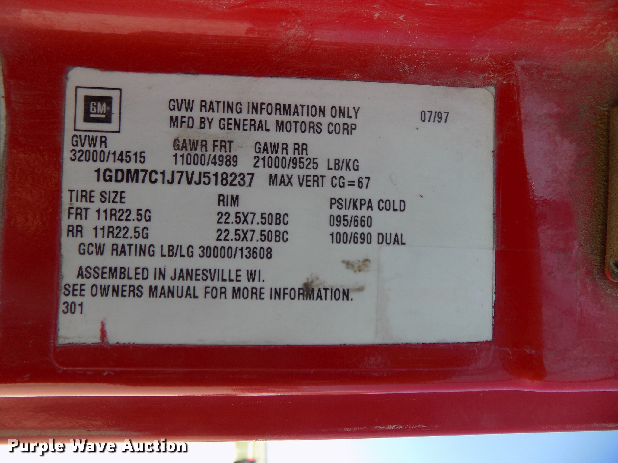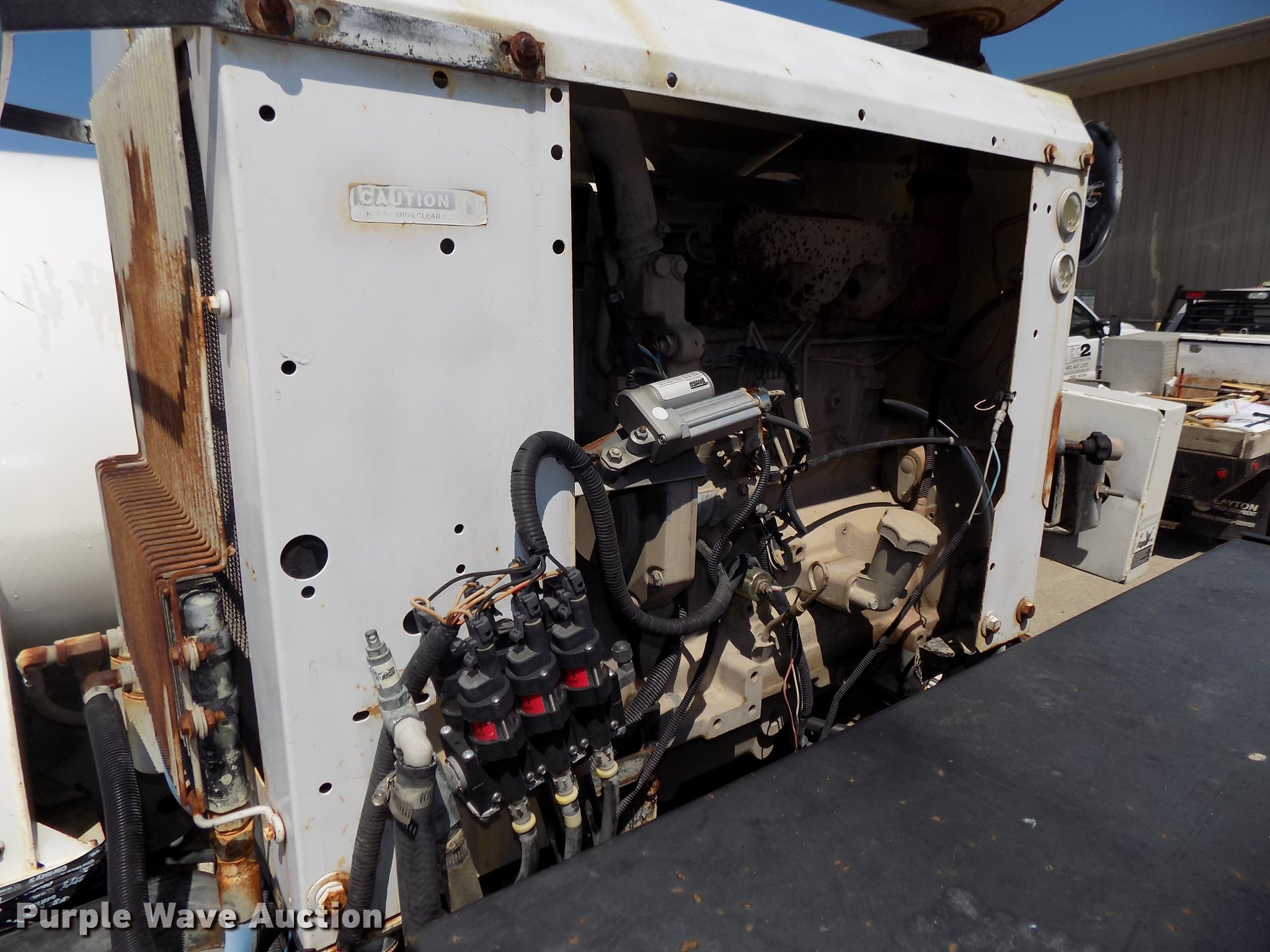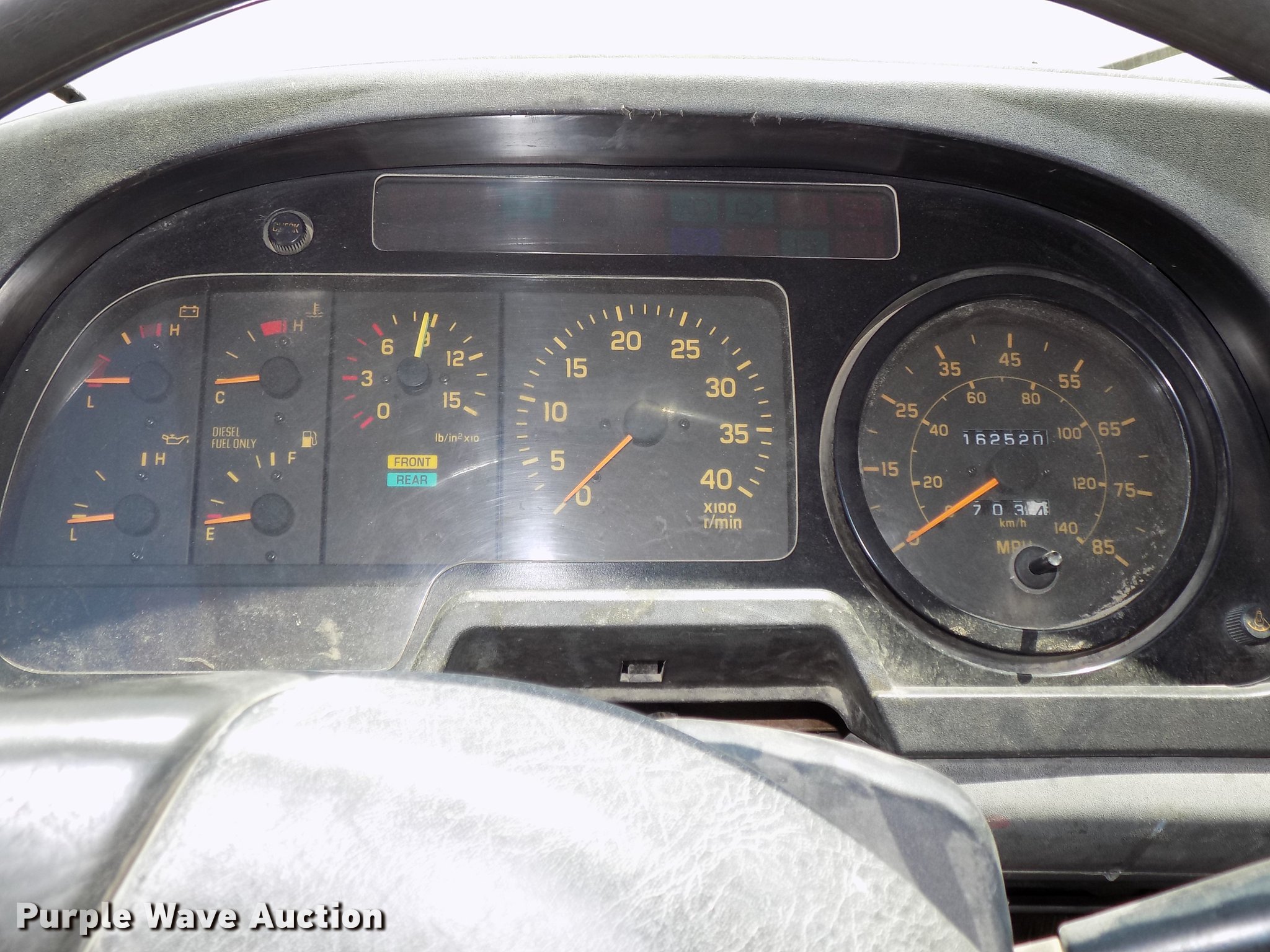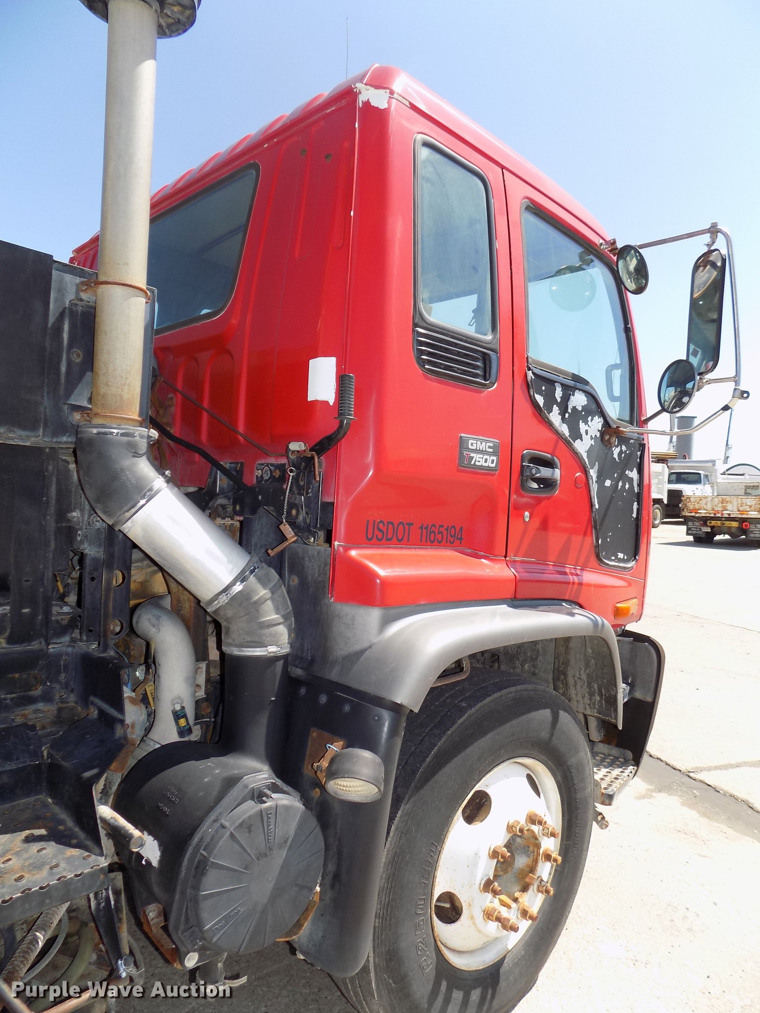 Purple Wave is selling a used Street Sweeper Truck in Nebraska. This item is a 1997 GMC T7500 street sweeper with the following: 162,520 miles on odometer, 734 hours on meter, Caterpillar 3116 6.6L six cylinder turbo diesel engine, Automatic transmission, Single axle, Heat, Tilt, AM/FM, Suspension seat, Backup alarm, Ecco backup camera, Beacon light, Tymco hydrovac, 7,241 hours on meter, John Deere 4045DF150R 4.5L four cylinder diesel engine, Steel tank, 89"W poly bristle center broom, 30"W gutter brooms, Single fuel tank, Spring suspension, Air brakes, 11R22.5 tires, GVWR 30,000 lbs, Annual inspection valid through September 2018, Unit# 190