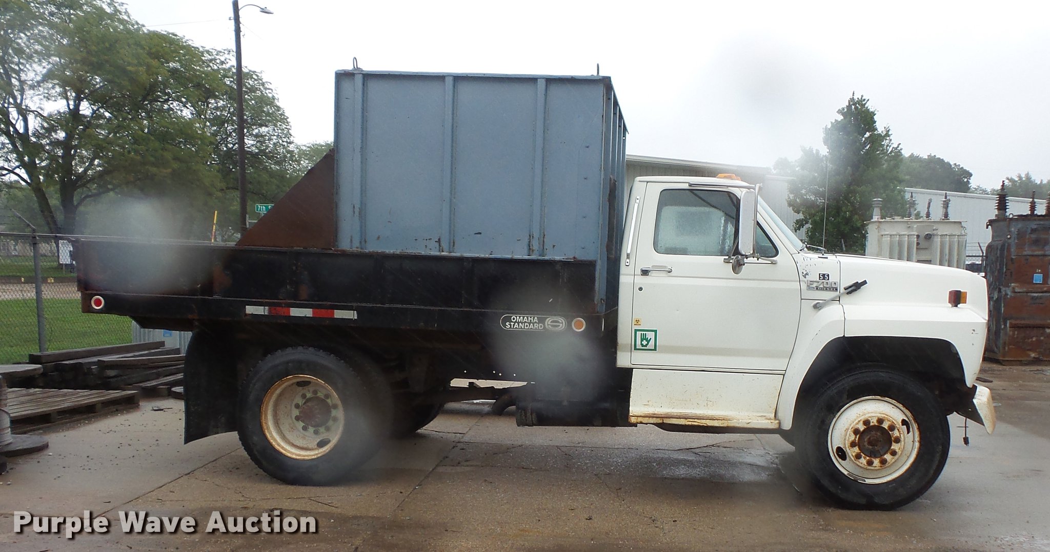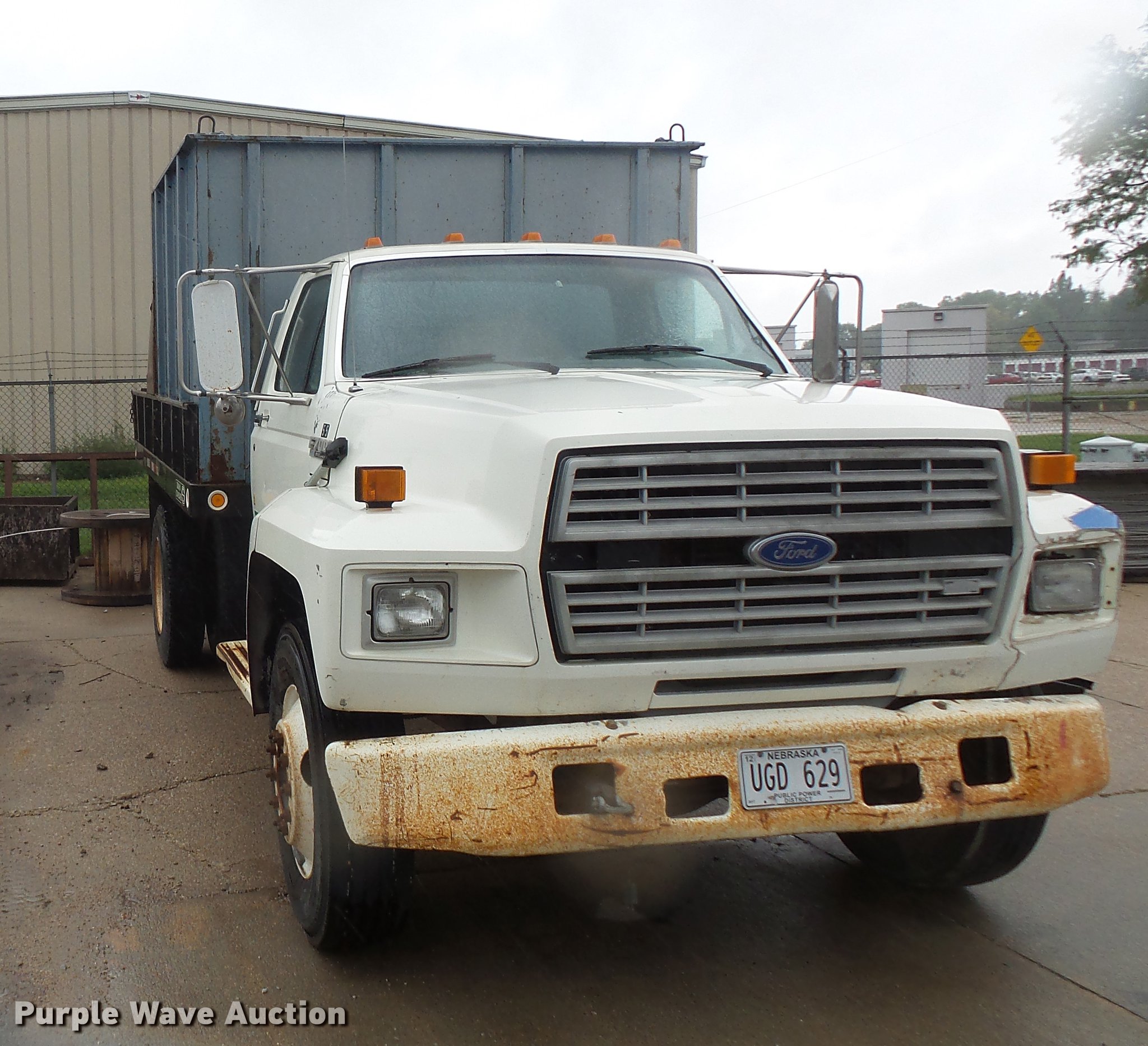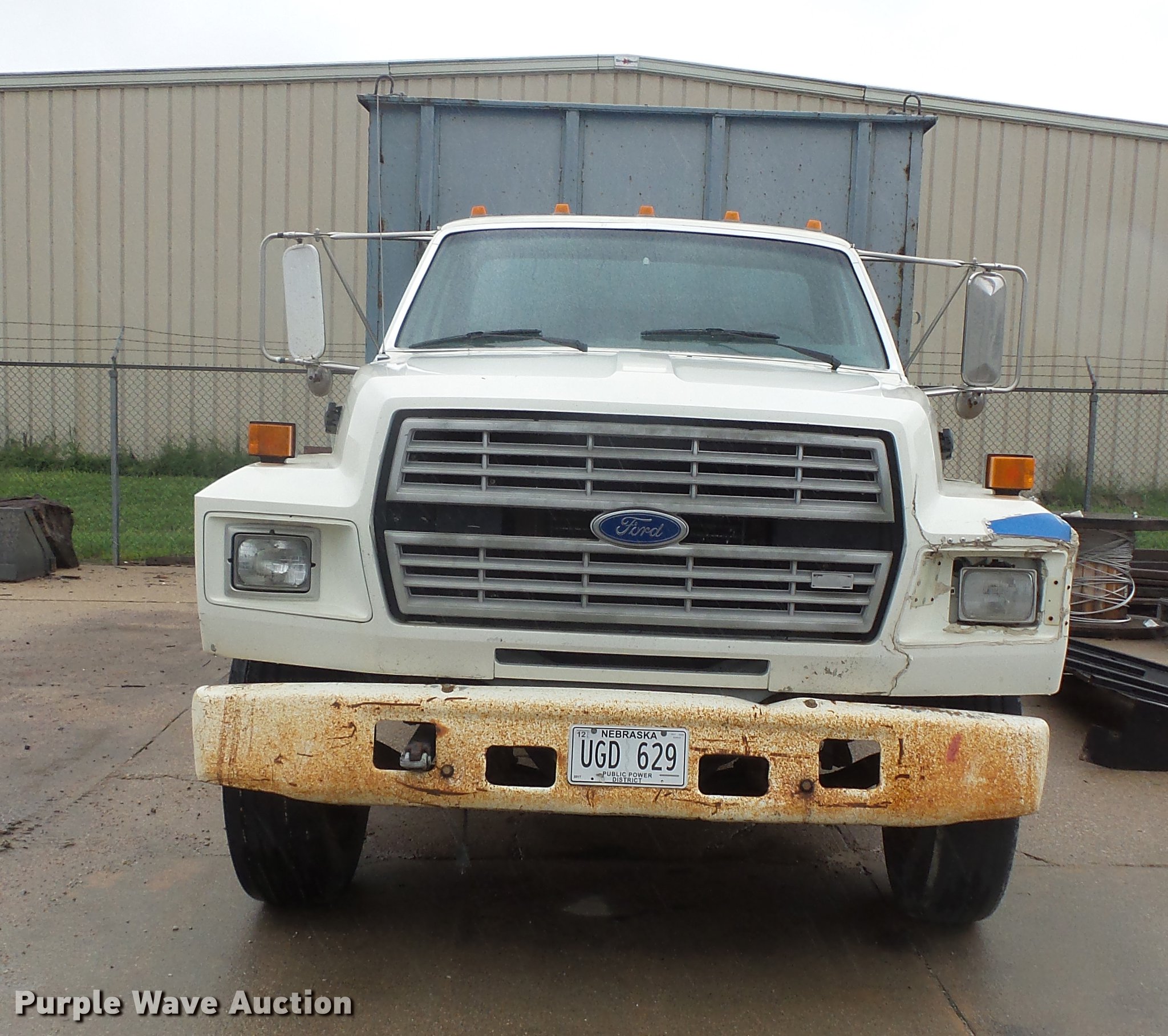 Purple Wave is selling a used Construction Dump Truck in Nebraska. This item is a 1994 Ford F700 dump truck with the following: 207,773 miles on odometer, Cummins 5.9L L6 turbo diesel engine, Six speed manual transmission, Single axle, Heat, AM/FM, PTO, Block heater, Omaha standard steel dump bed, 142"L x 96"W, 46" side height, 14" side height, Single ram hoist, Manual operated end gate, Single fuel tank, 237" wheelbase, Spring suspension, Hydraulic brakes, 275/80R22.5 front tires, 10R22.5 rear tires, GVWR 26,000 lbs, FAWR 7,000 lbs, RAWR 19,000 lbs