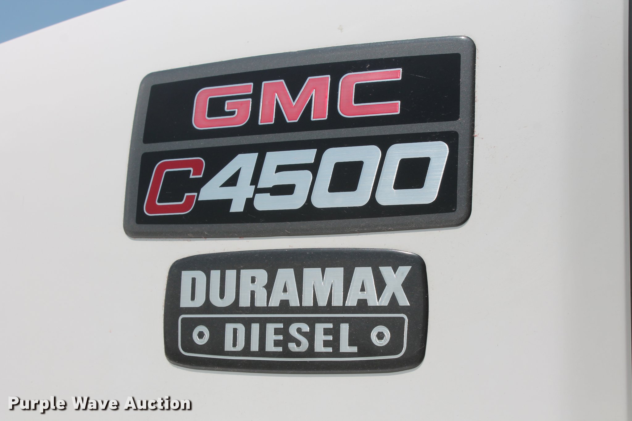Purple Wave is selling a used Truck Chassis in Oklahoma. This item is a 2007 GMC C4500 truck cab and chassis with the following: 233,361 miles on odometer, 193 hours on meter, 6.6L V8 turbo diesel engine, Automatic transmission, Single axle, AC and heat, Tilt, Cruise, AM/FM/CD, Power windows, locks, and mirrors, PTO, Beacon light, Front tow hooks, Single fuel tank, 152" wheelbase, Spring suspension, Hydraulic brakes, Longmarch 245/70R19.5 tires, GVWR 17,500 lbs, FAWR 7,000 lbs, RAWR 13,500 lbs