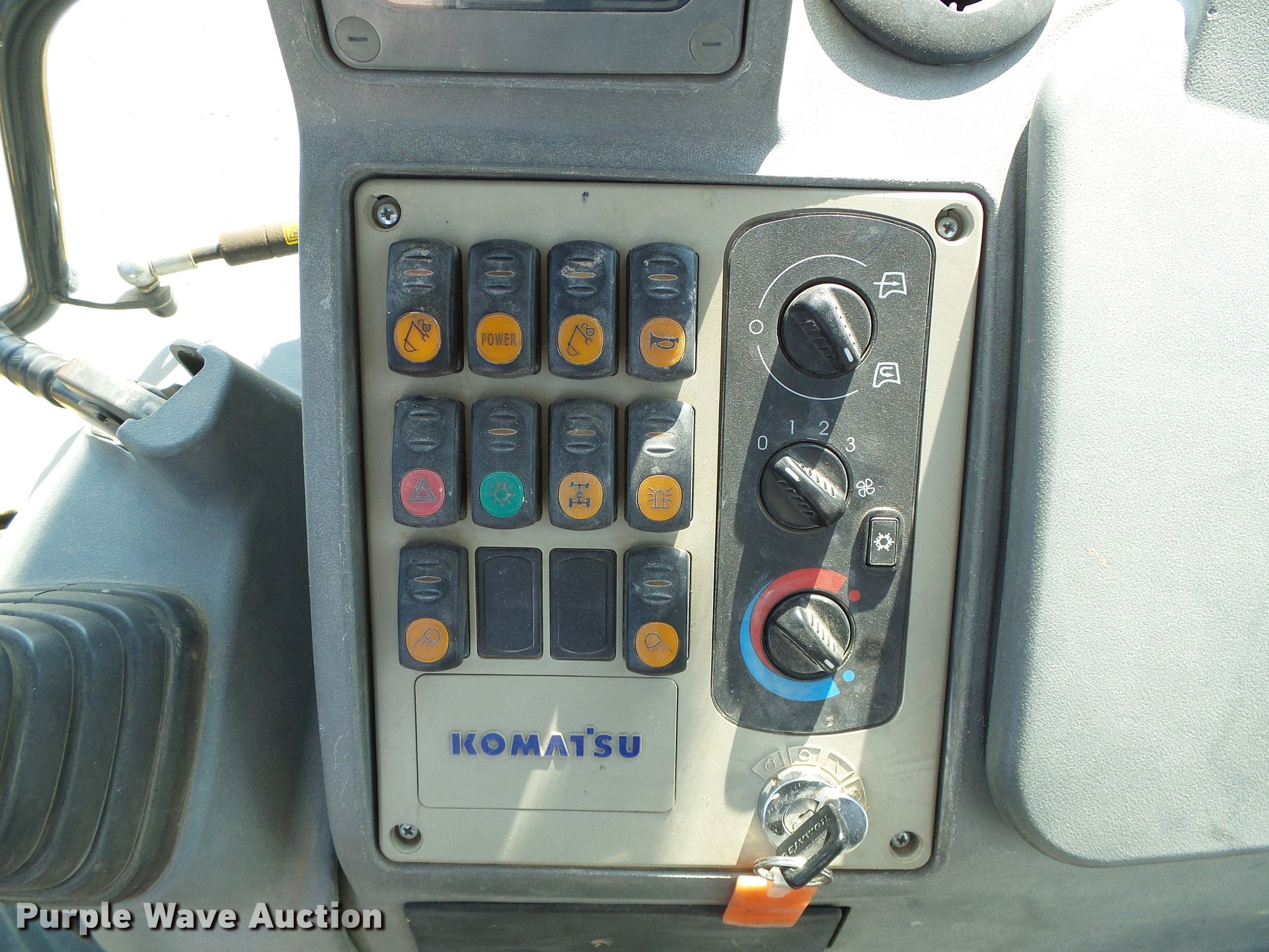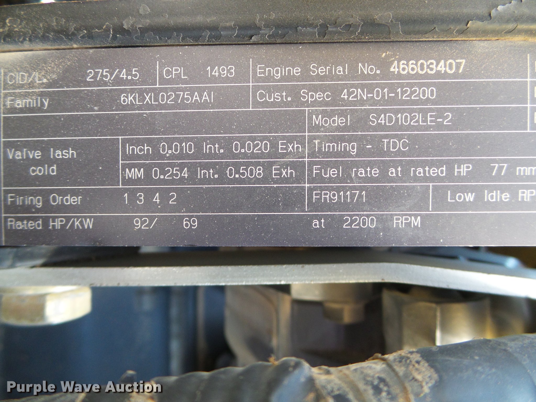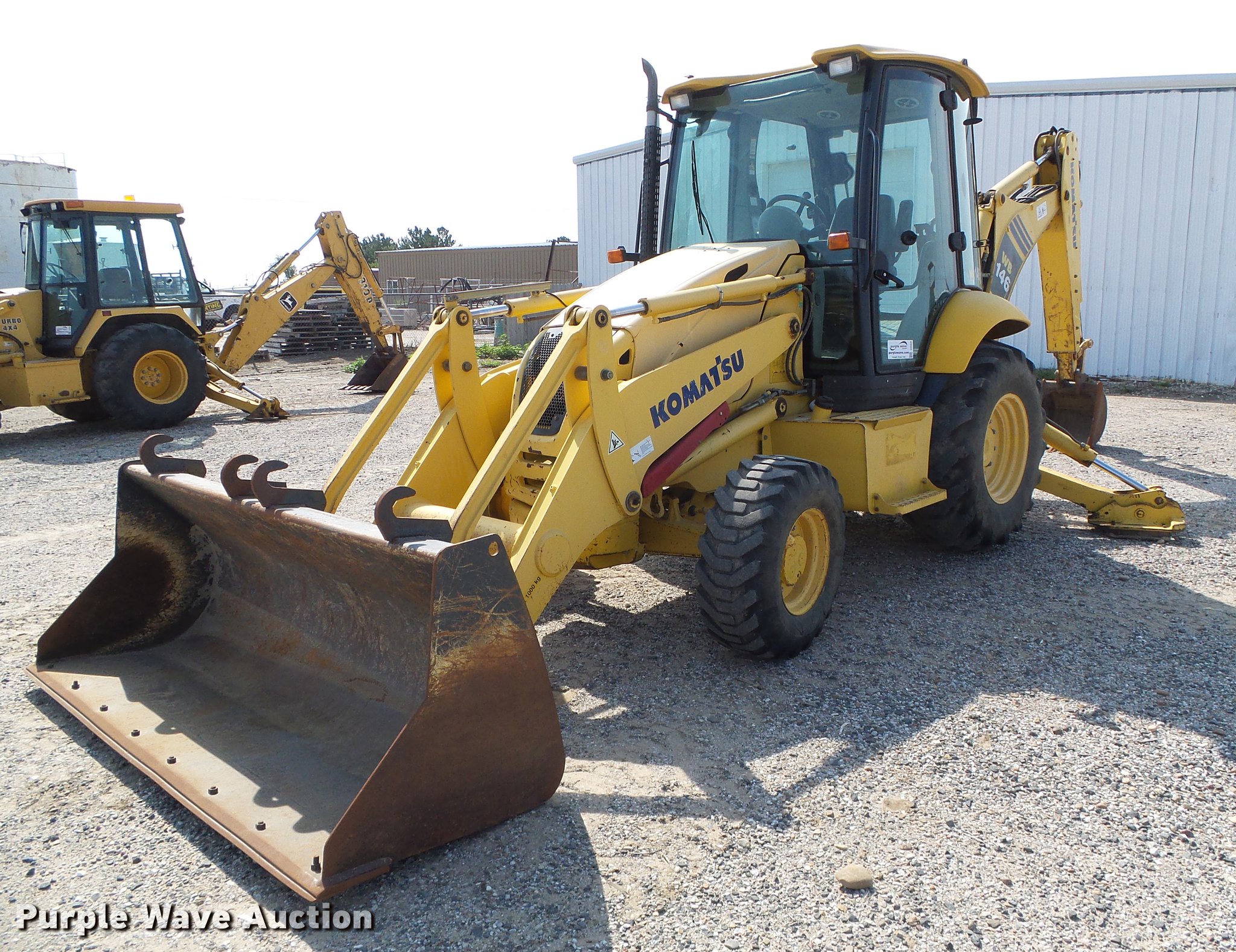 Purple Wave is selling a used Tractor Loader Backhoe in Kansas. This item is a 2006 Komatsu WB146 backhoe with the following: 75,877 hours on meter, Actual hours unknown, Komatsu S4D102LE-2 4.5L four cylinder turbo diesel engine, Serial 46603407, Shuttle shift transmission, 4F-4R gears, Four wheel drive, EROPS, AC and heat, Tilt steering wheel, Suspension seat, Pilot control, Wipers, Front and rear work lights, 92"W loader bucket, Bolt-on cutting edge, Extendable stick, 24"W backhoe bucket, (5) teeth, Front counter weights, Drivetrain guards, 14-17.5 front tires, 19.5L-24 rear tires, Serial D0145A