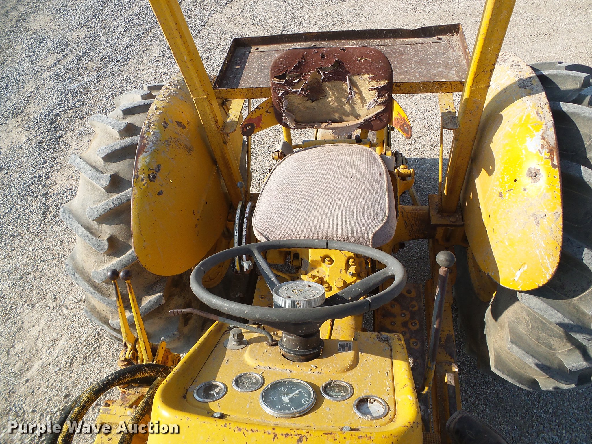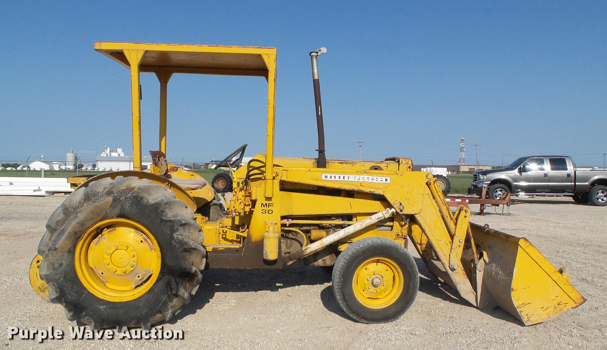 Purple Wave is selling a used Tractor in Kansas. This item is a Massey Ferguson MF30 tractor with the following: 5,046 hours on meter, Massey Ferguson four cylinder gas engine, Manual transmission, 6F-1R gears, Hi-Low, Spring suspension seat, Massey Ferguson loader, 79"W bucket, Two lever control, Three point, 540 PTO, (4) wheel weights, Three point counterweight, 245/70R16 front tires, 16.9-24 rear tires, Rear tires do not hold air, Serial 9AI08I53