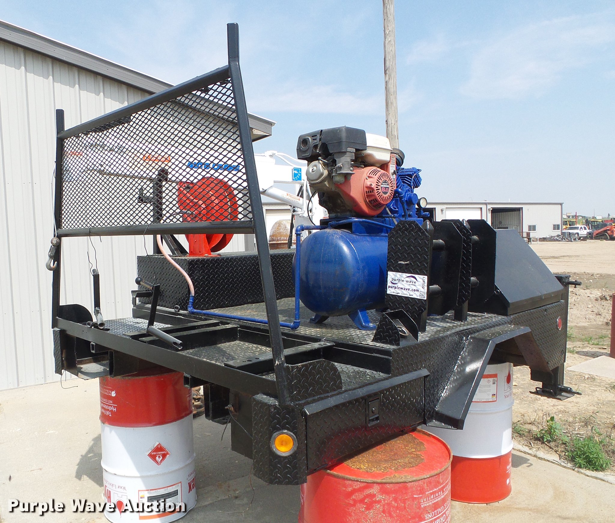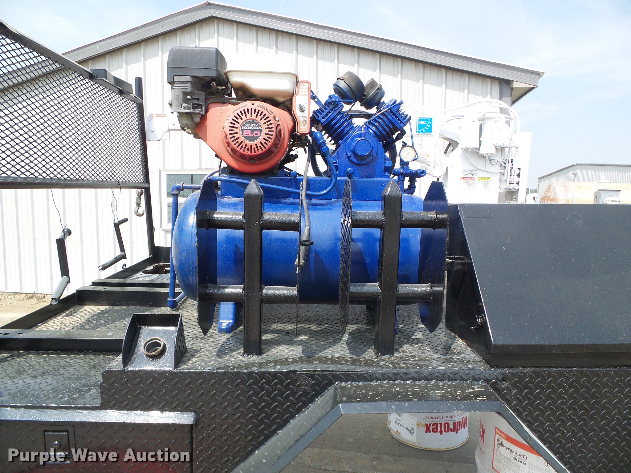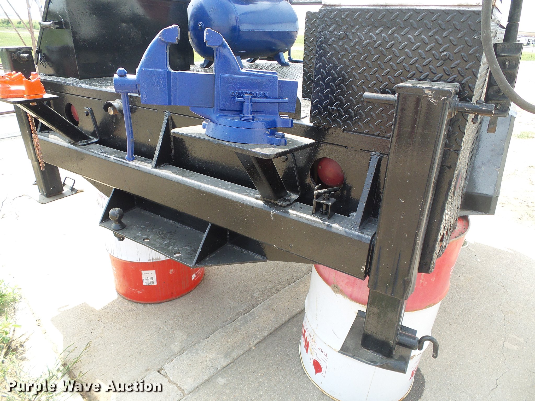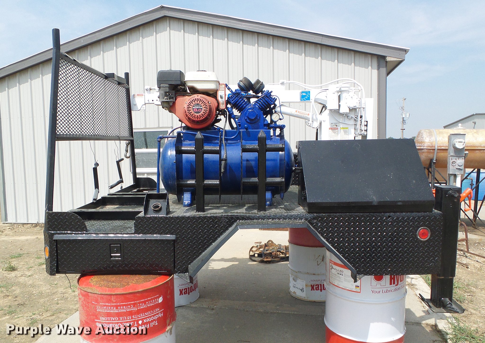Purple Wave is selling a used Automotive Parts or Acces. in Kansas. This item is a Flatbed with crane with the following: 8'L x 83"W, Auto Crane 3203 crane, Remote, Torch bottle rack, Air compressor, Honda GX240 single cylinder gas engine, 8 HP, Hose reel, Welding and torch reel, Outriggers, Toolboxes