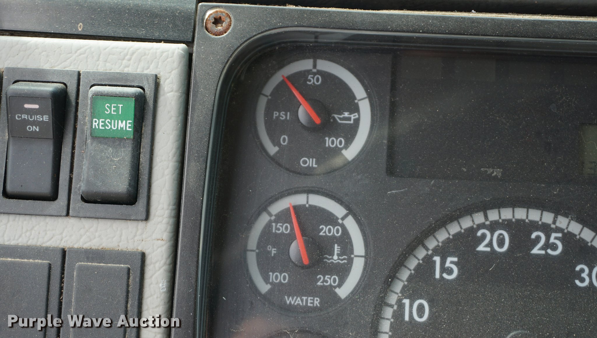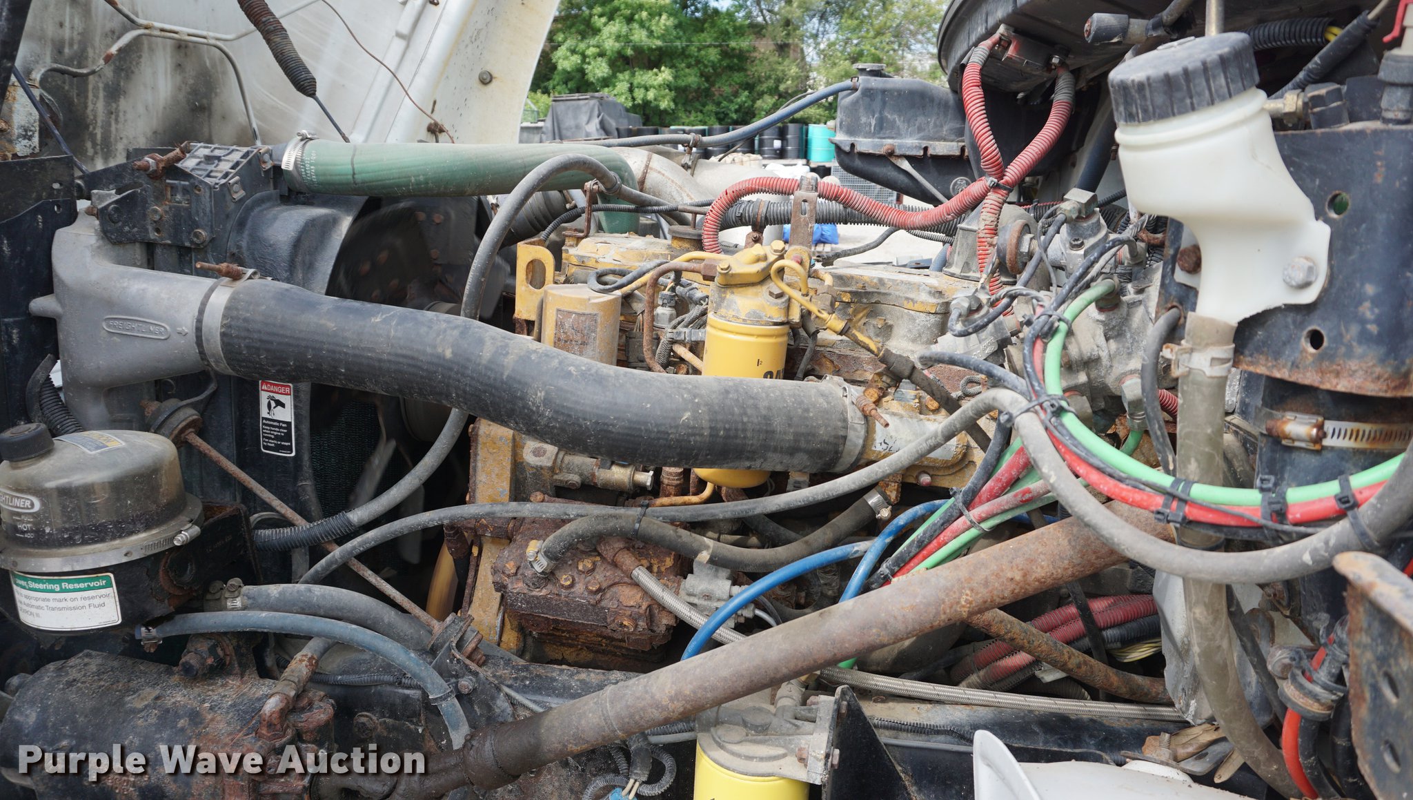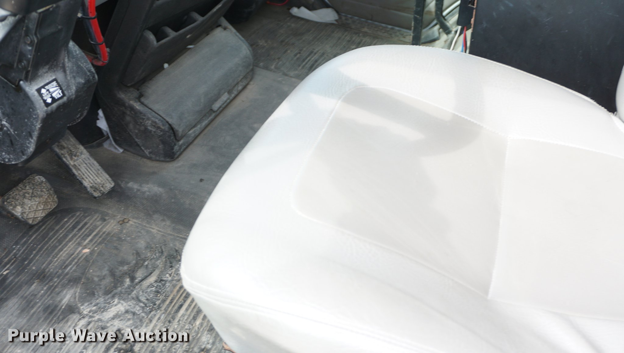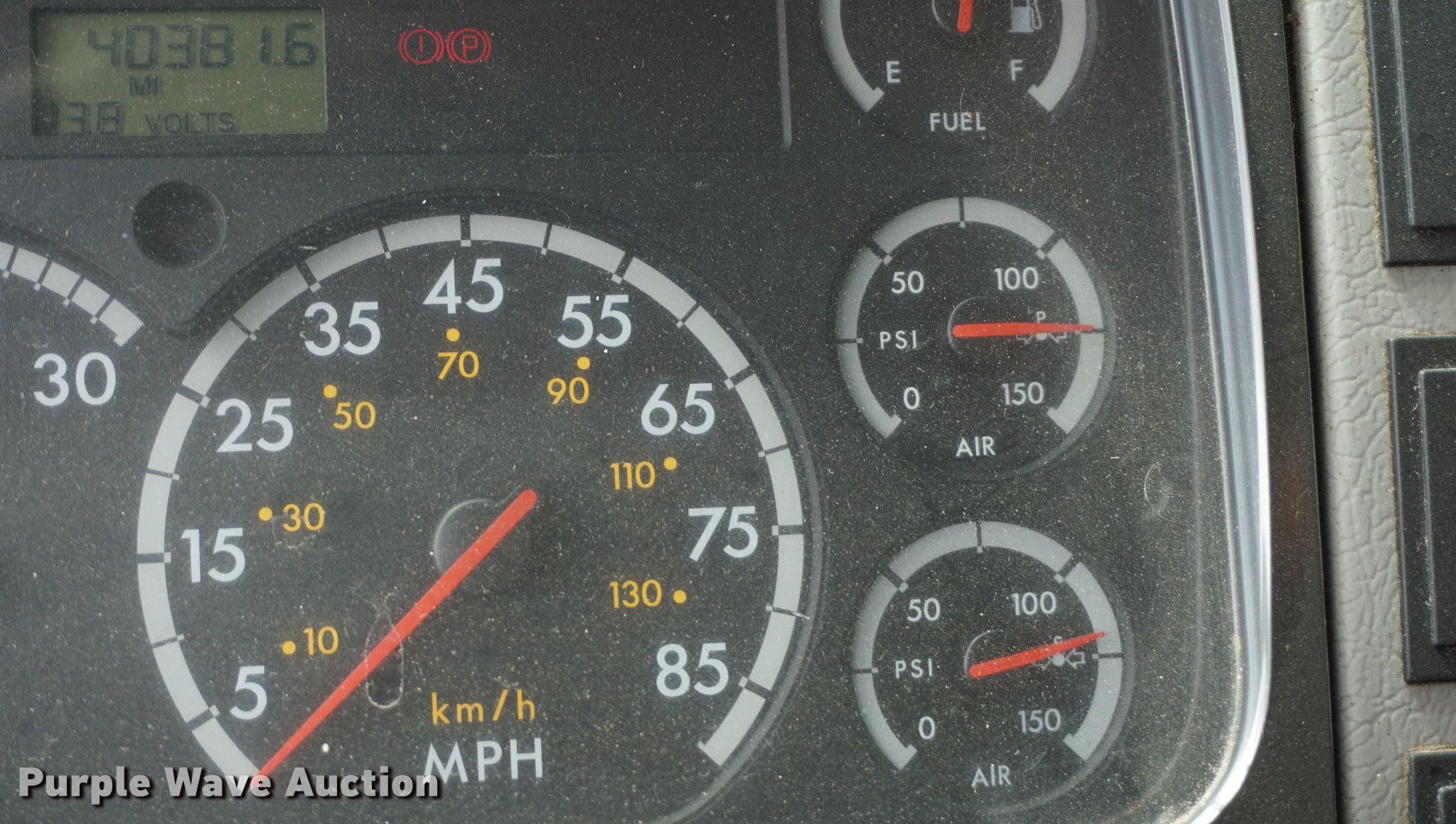 Purple Wave is selling a used Construction Dump Truck in Kansas. This item is a 2003 Freightliner FL80 dump truck with the following: 40,381 miles on odometer, 4,950 hours on meter, Caterpillar 3126 7.2L L6 turbo diesel engine, 330 HP, Automatic transmission, Single axle, AC and heat, Tilt telescopic steering wheel, Cruise, AM/FM/cassette, Heated mirrors, Air suspension seat, Front mounted PTO, In-cab plow controls, 10'L x 95"W steel dump bed, 24" side height, 12" side board height, Single ram hoist, Air operated end gate, Roll tarp, No tarp arms,, Single fuel tank, Pintle hitch, Air connections, Hydraulic connections, Spring suspension, Air brakes, 12R22.5 tires, GVWR 37,000 lbs, FAWR 14,000 lbs, RAWR 23,000 lbs