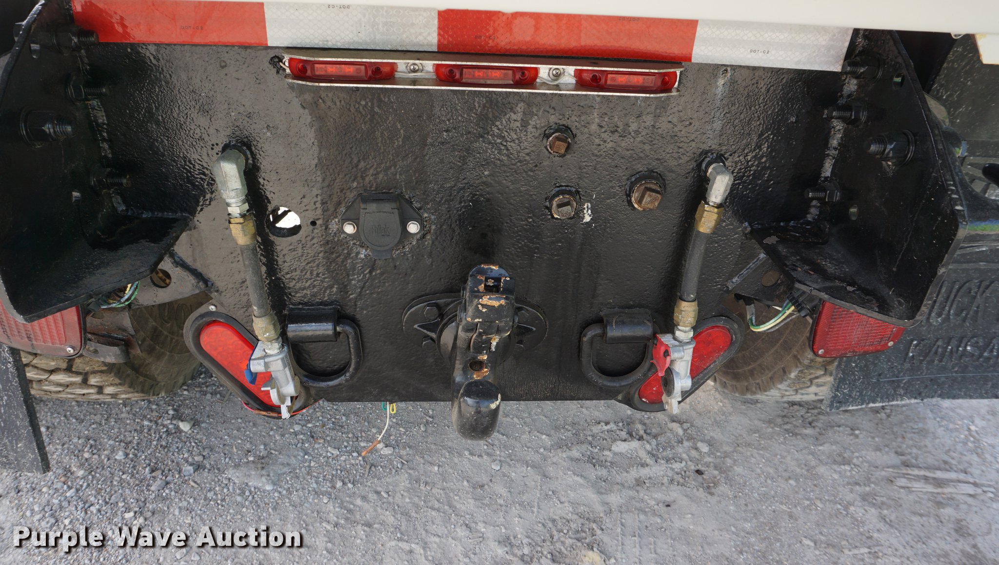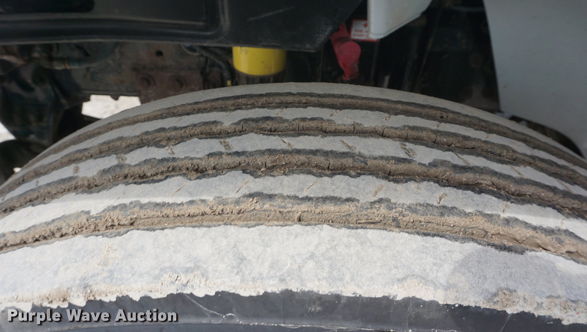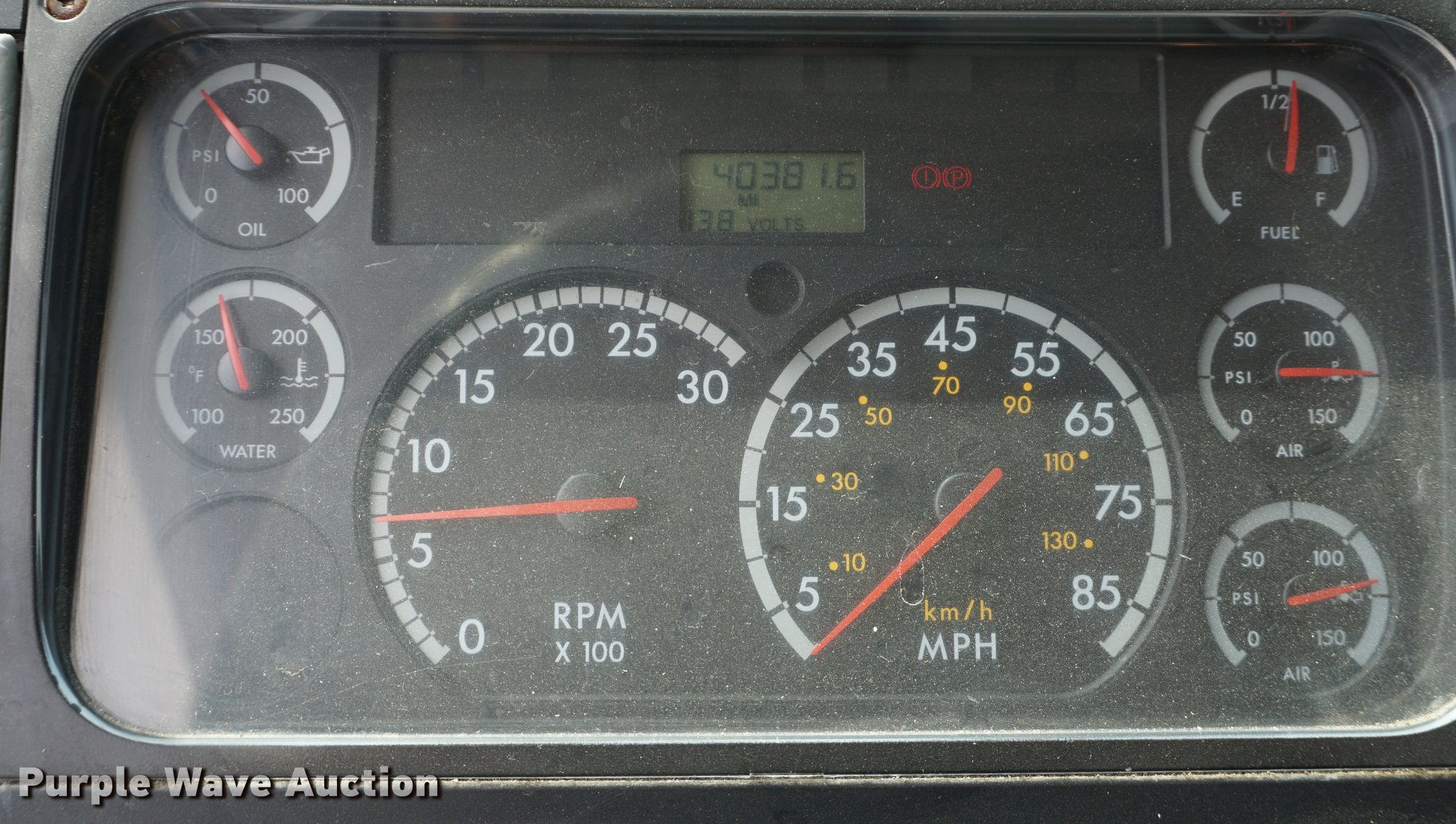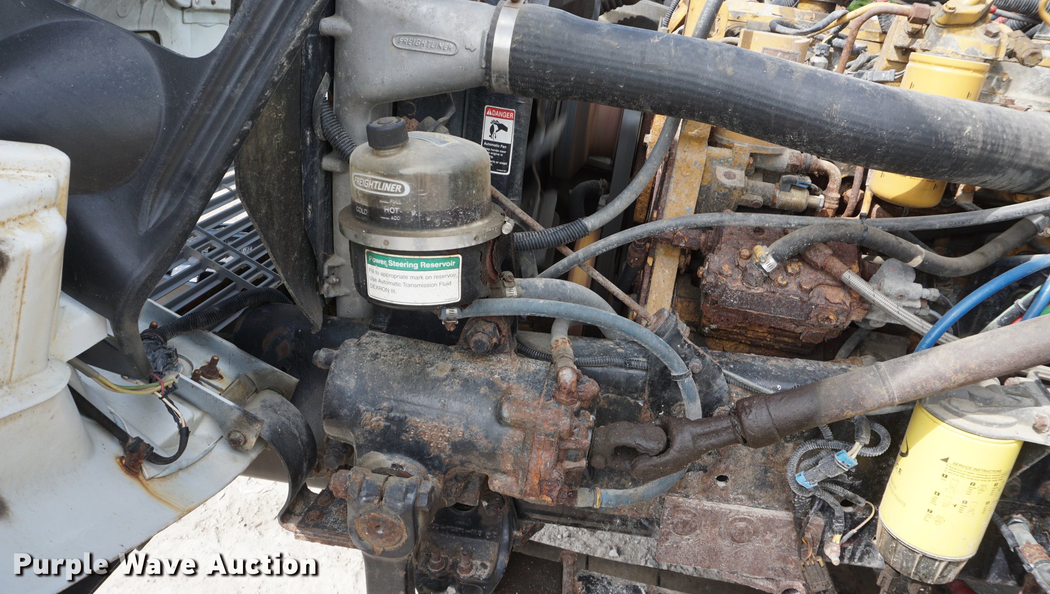 Purple Wave is selling a used Construction Dump Truck in Kansas. This item is a 2003 Freightliner FL80 dump truck with the following: 40,381 miles on odometer, 4,950 hours on meter, Caterpillar 3126 7.2L L6 turbo diesel engine, 330 HP, Automatic transmission, Single axle, AC and heat, Tilt telescopic steering wheel, Cruise, AM/FM/cassette, Heated mirrors, Air suspension seat, Front mounted PTO, In-cab plow controls, 10'L x 95"W steel dump bed, 24" side height, 12" side board height, Single ram hoist, Air operated end gate, Roll tarp, No tarp arms,, Single fuel tank, Pintle hitch, Air connections, Hydraulic connections, Spring suspension, Air brakes, 12R22.5 tires, GVWR 37,000 lbs, FAWR 14,000 lbs, RAWR 23,000 lbs
