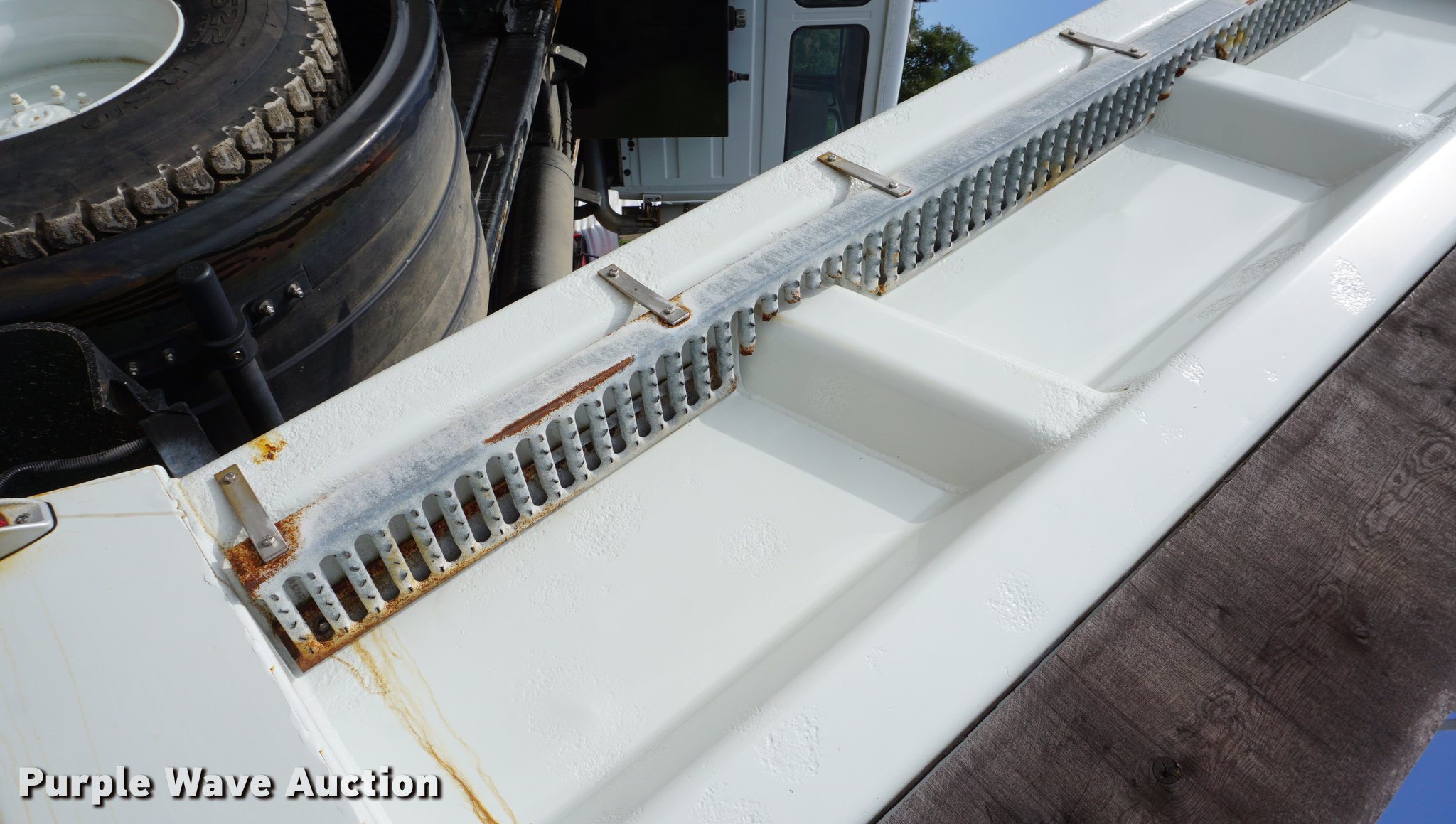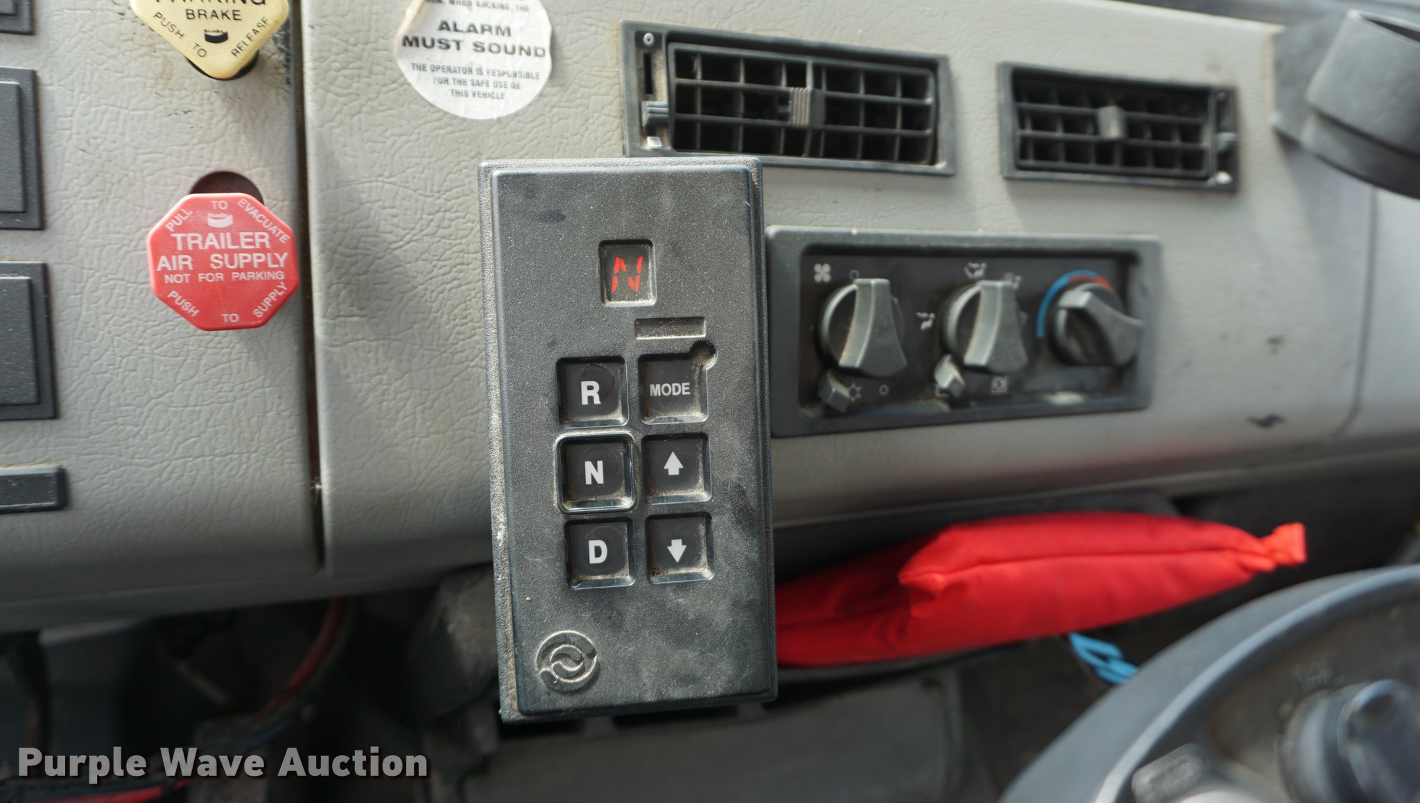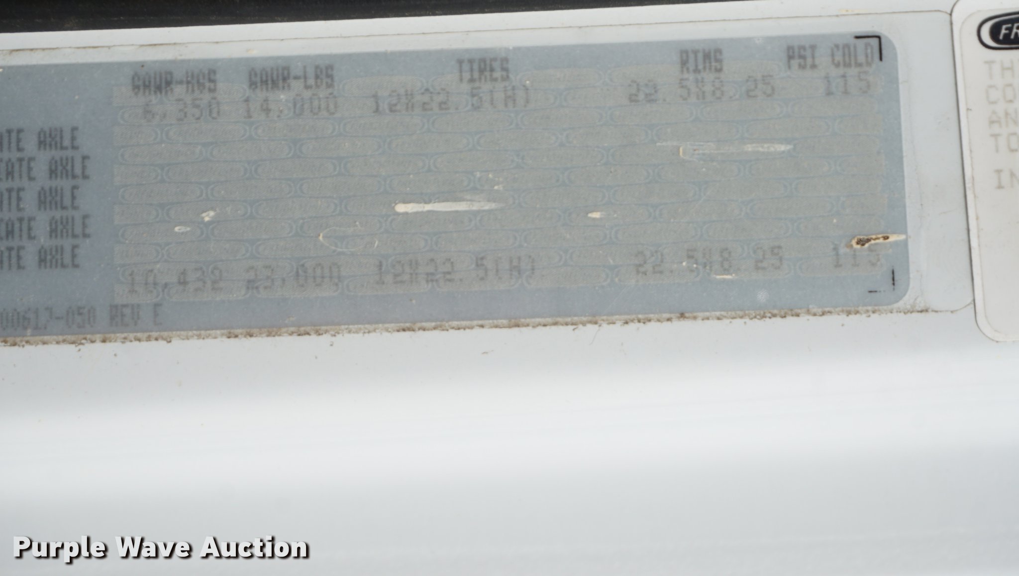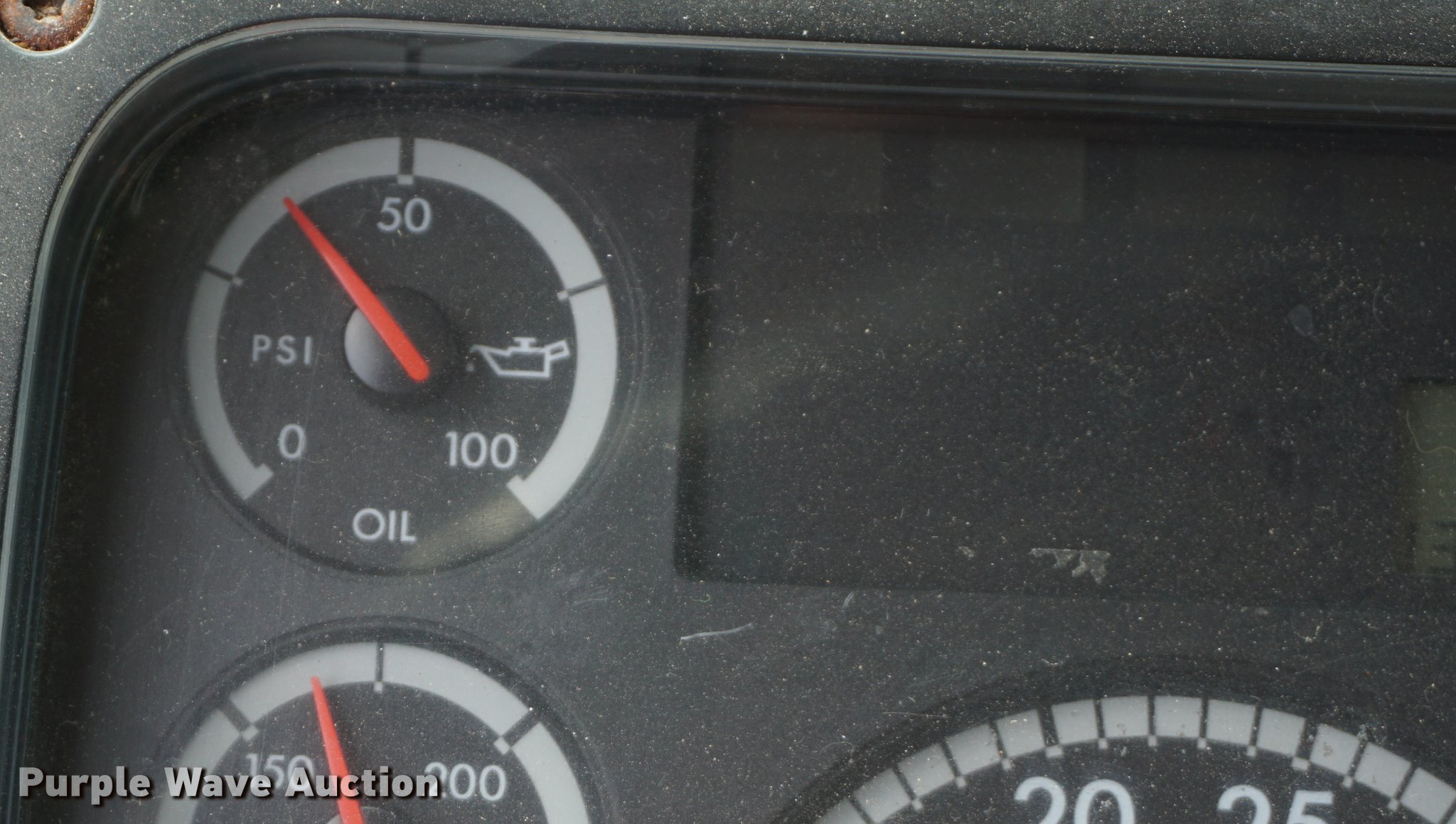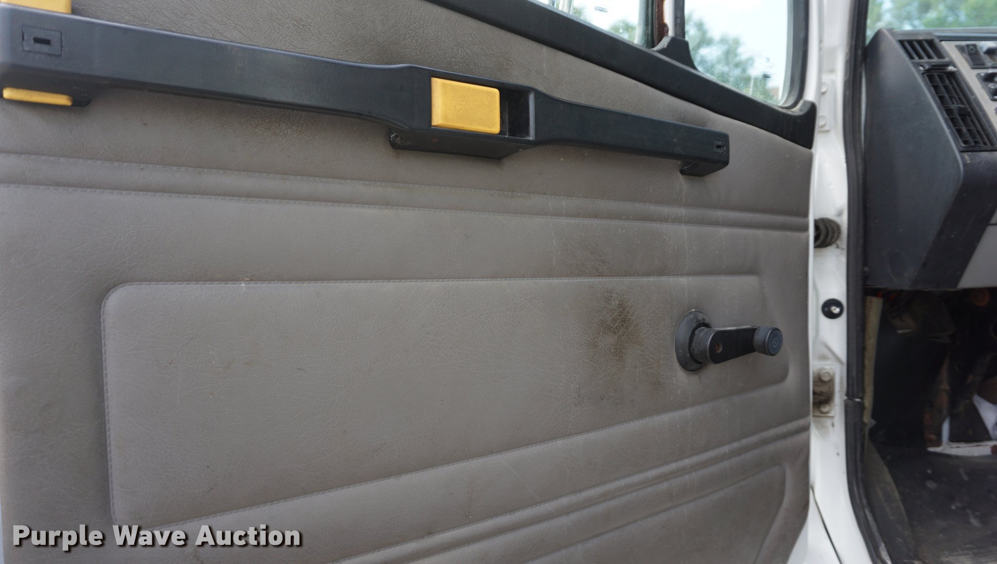 Purple Wave is selling a used Construction Dump Truck in Kansas. This item is a 2003 Freightliner FL80 dump truck with the following: 40,381 miles on odometer, 4,950 hours on meter, Caterpillar 3126 7.2L L6 turbo diesel engine, 330 HP, Automatic transmission, Single axle, AC and heat, Tilt telescopic steering wheel, Cruise, AM/FM/cassette, Heated mirrors, Air suspension seat, Front mounted PTO, In-cab plow controls, 10'L x 95"W steel dump bed, 24" side height, 12" side board height, Single ram hoist, Air operated end gate, Roll tarp, No tarp arms,, Single fuel tank, Pintle hitch, Air connections, Hydraulic connections, Spring suspension, Air brakes, 12R22.5 tires, GVWR 37,000 lbs, FAWR 14,000 lbs, RAWR 23,000 lbs