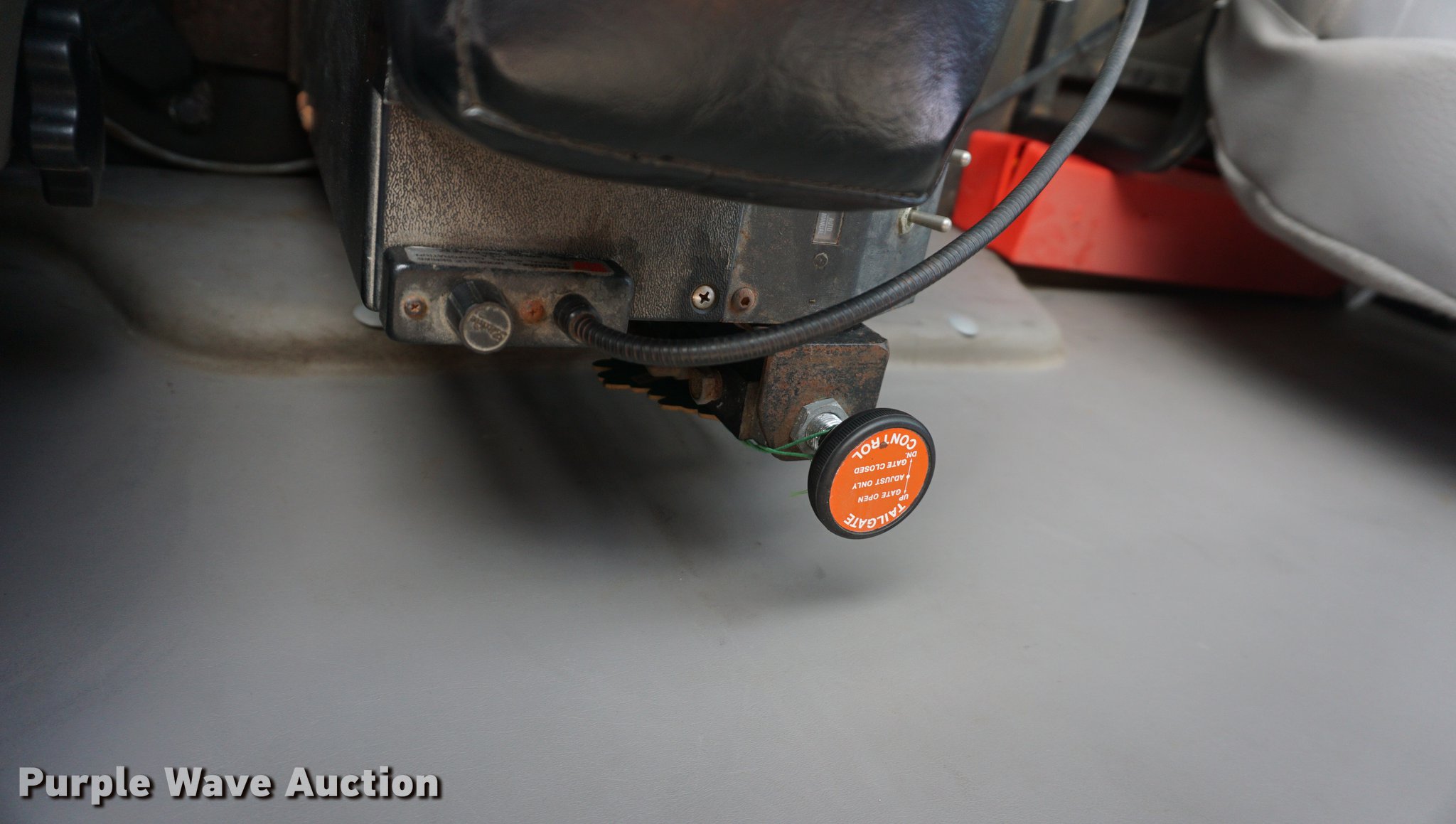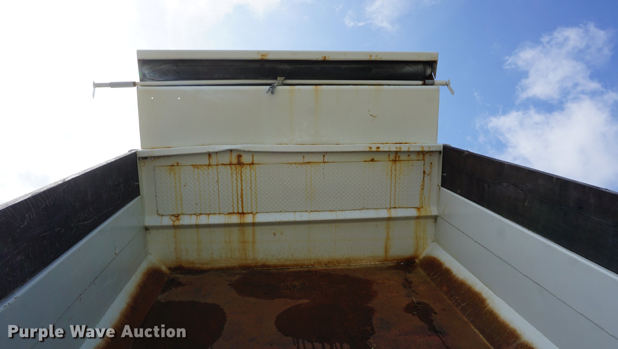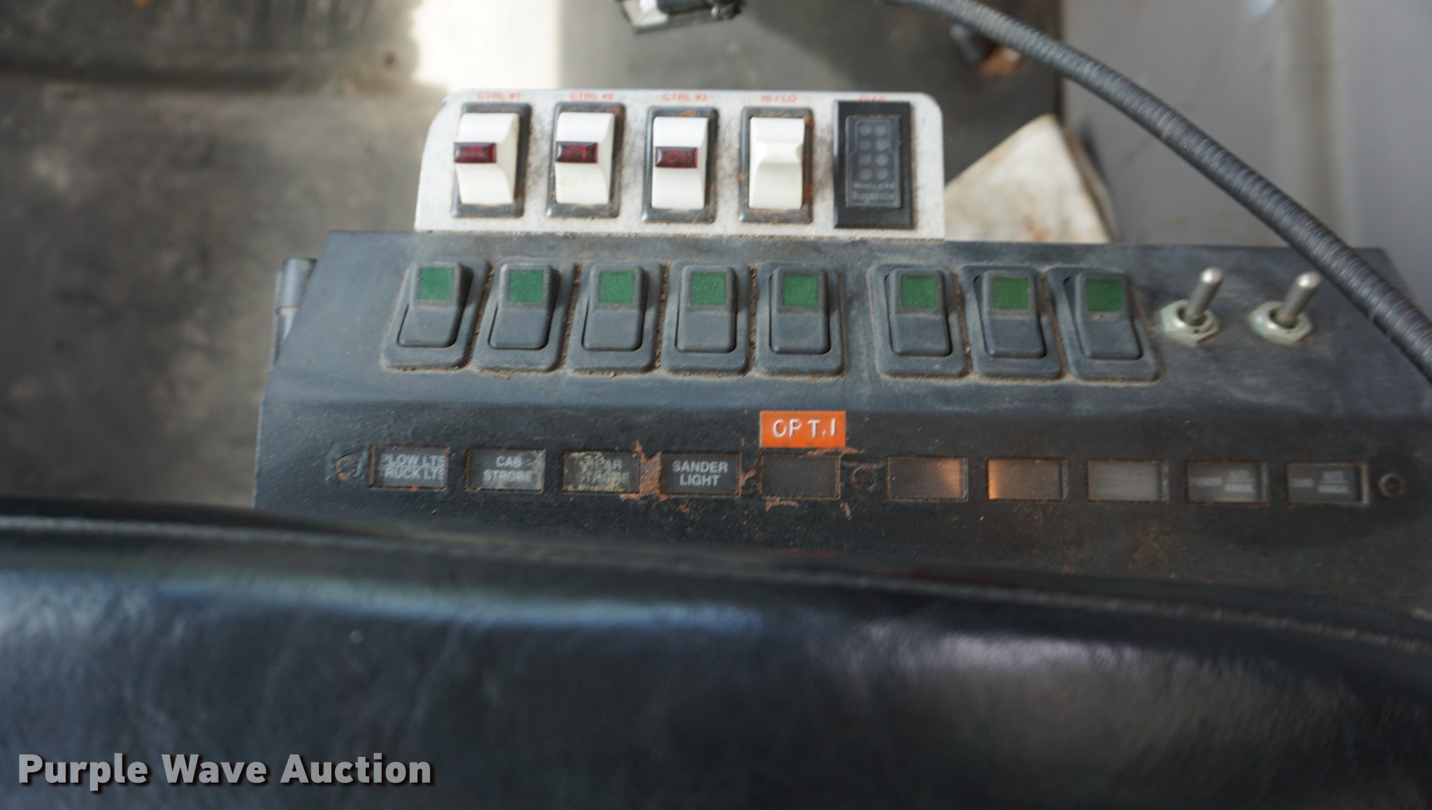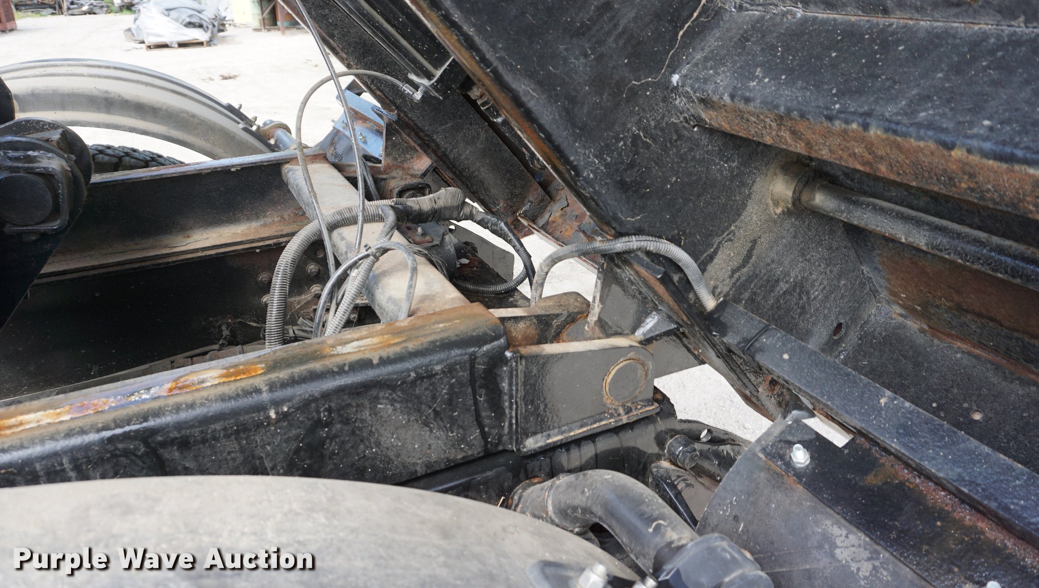 Purple Wave is selling a used Construction Dump Truck in Kansas. This item is a 2003 Freightliner FL80 dump truck with the following: 40,381 miles on odometer, 4,950 hours on meter, Caterpillar 3126 7.2L L6 turbo diesel engine, 330 HP, Automatic transmission, Single axle, AC and heat, Tilt telescopic steering wheel, Cruise, AM/FM/cassette, Heated mirrors, Air suspension seat, Front mounted PTO, In-cab plow controls, 10'L x 95"W steel dump bed, 24" side height, 12" side board height, Single ram hoist, Air operated end gate, Roll tarp, No tarp arms,, Single fuel tank, Pintle hitch, Air connections, Hydraulic connections, Spring suspension, Air brakes, 12R22.5 tires, GVWR 37,000 lbs, FAWR 14,000 lbs, RAWR 23,000 lbs