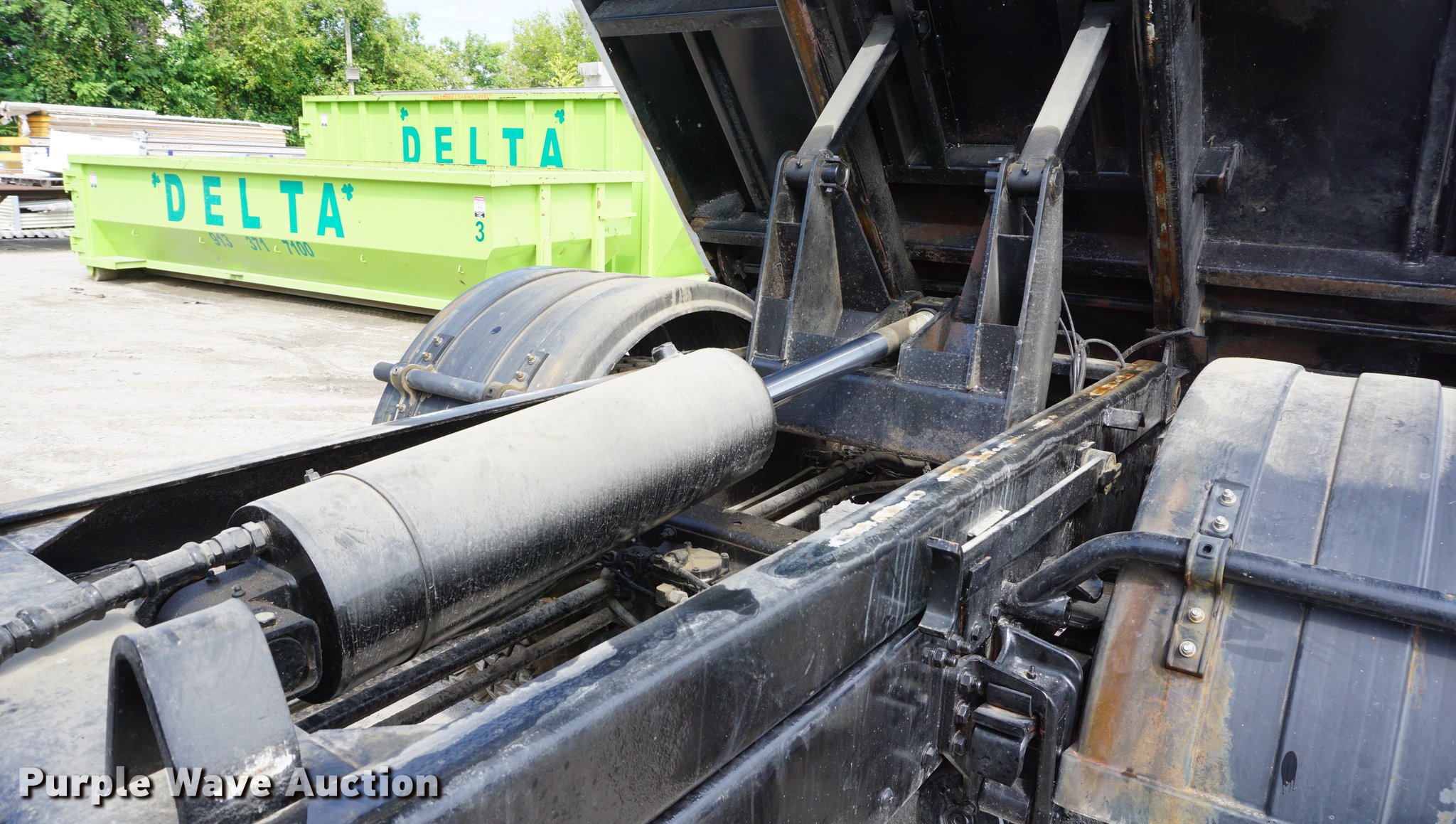 2003 Freightliner FL80 dump truck. 40,381 miles on odometer, 4,950 hours on meter, Caterpillar 3126 7.2L L6 turbo diesel engine 330 HP, Automatic transmission, Single axle, AC and heat, Tilt telescopic steering wheel, Cruise, AM/FM/cassette, Heated mirrors, Air suspension seat, Front mounted PTO, In-cab plow controls, 10'L x 95"W steel dump bed 24" side height, 12" side board height, Single ram hoist, Air operated end gate, Roll tarp No tarp arms, Single fuel tank, Pintle hitch, Air connections, Hydraulic connections, Spring suspension, Air brakes, 12R22.5 tires, GVWR 37,000 lbs, FAWR 14,000 lbs, RAWR 23,000 lbs. Kansas title. 1FVABXAK23DK86507. Delta Innovative Services. 508 S 14th St. Kansas City, KS 66105