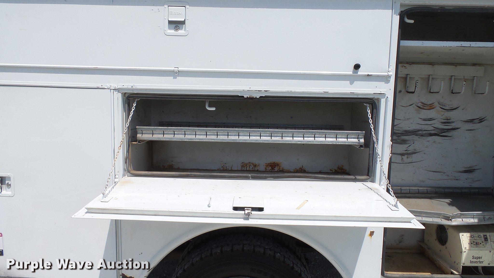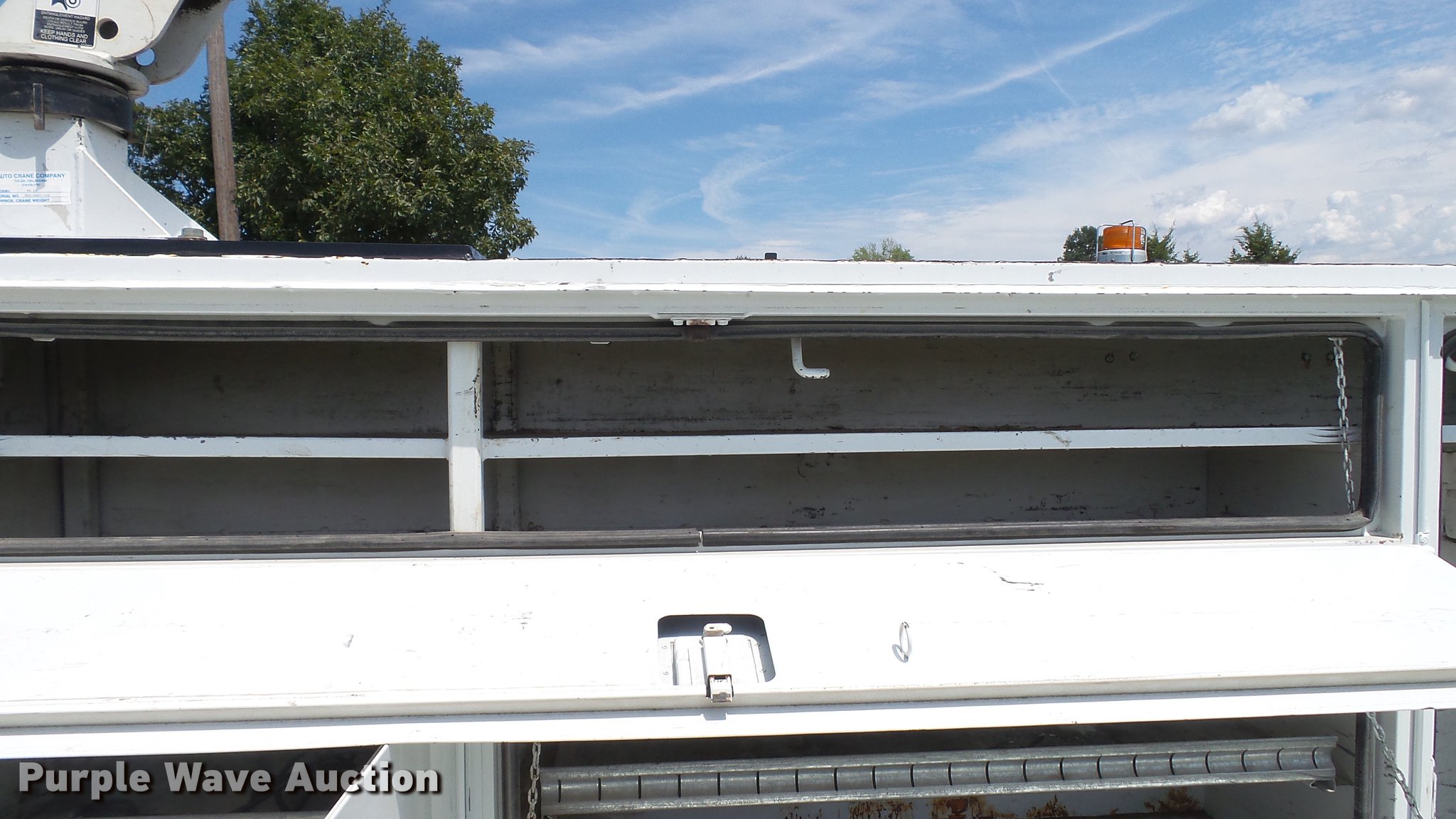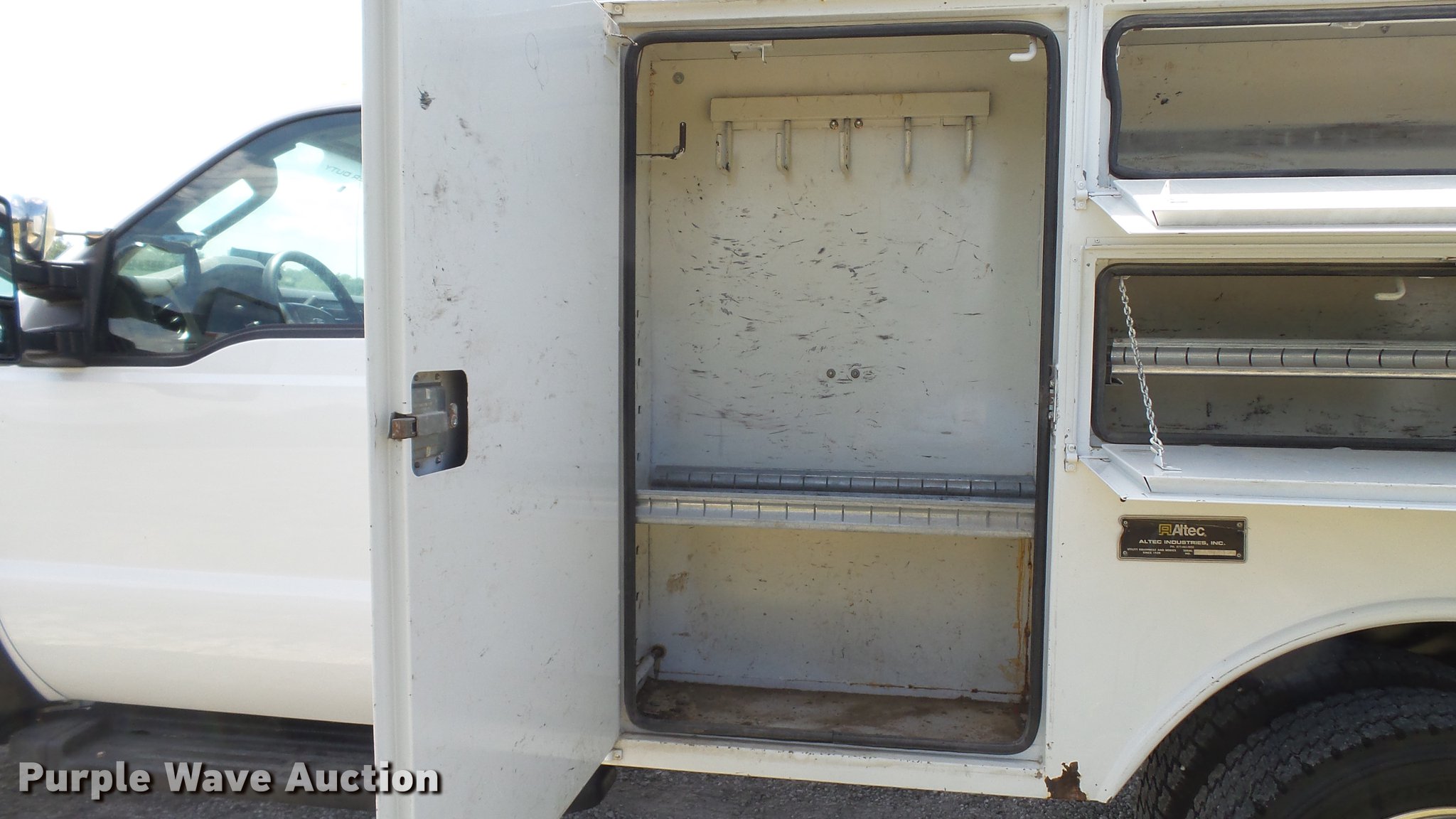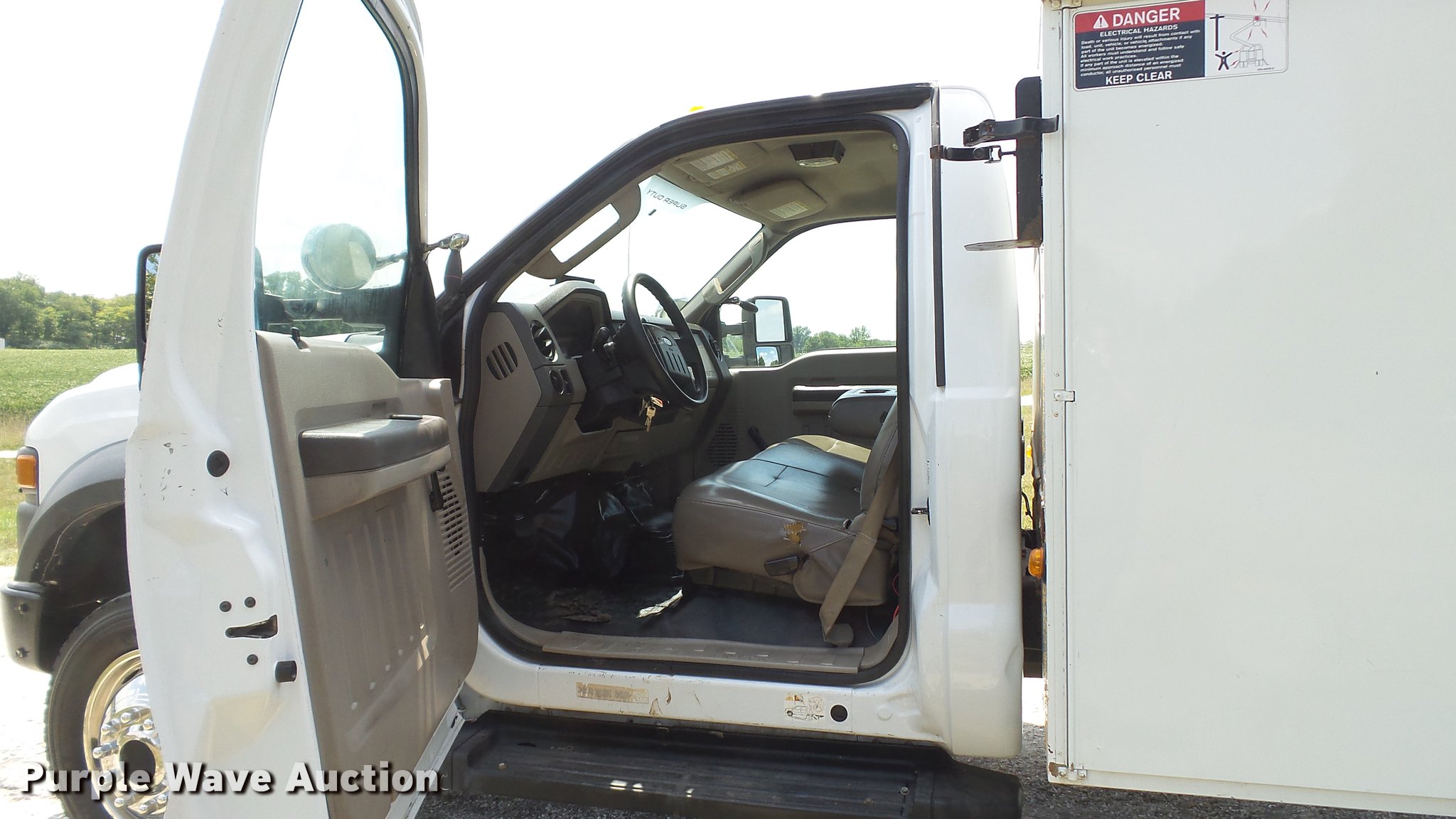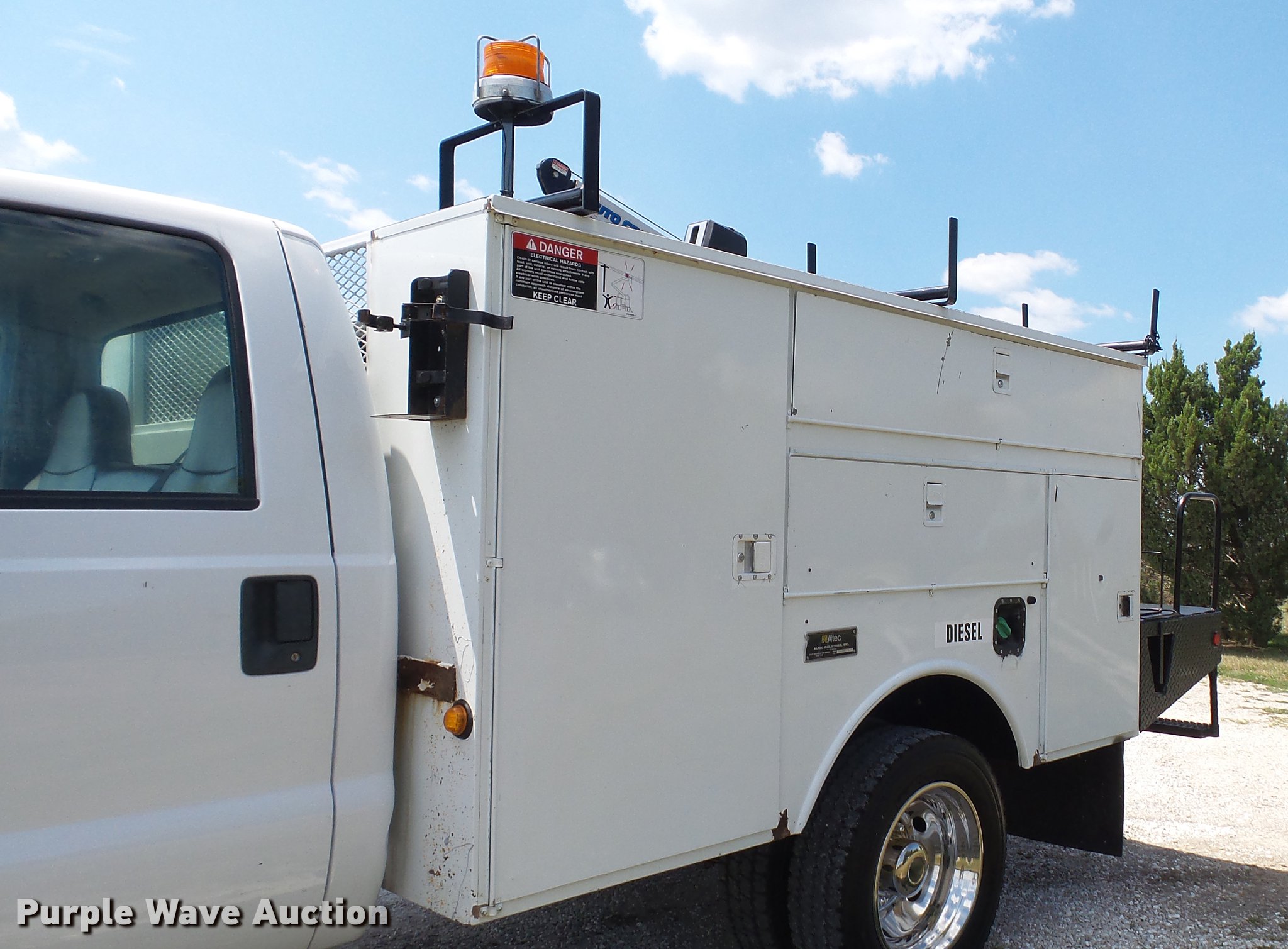 Purple Wave is selling a used Service Truck in Missouri. This item is a 2008 Ford F550 Super Duty XL utility bed truck with crane with the following: 115,684 miles on odometer, 6.4L V8 OHV 32V turbo diesel engine, Automatic transmission, Four wheel drive, AC and heat, AM/FM, Trailer brake controller, Backup camera, Strobe lights, Altec 9'L utility bed, Shelving, 29"W bumper, Auto Crane ETII crane, 2,000 lbs maximum lift capacity, 5.5' boom length, Remote control, Super inverter, (4) 110V outlets, Single fuel tank, Single exhaust stack, 141" wheelbase, Pintle hitch, Trailer wiring, Spring suspension, Hydraulic brakes, 225/70R19.5 tires, GVWR 17,950 lbs, Non-operational backup camera