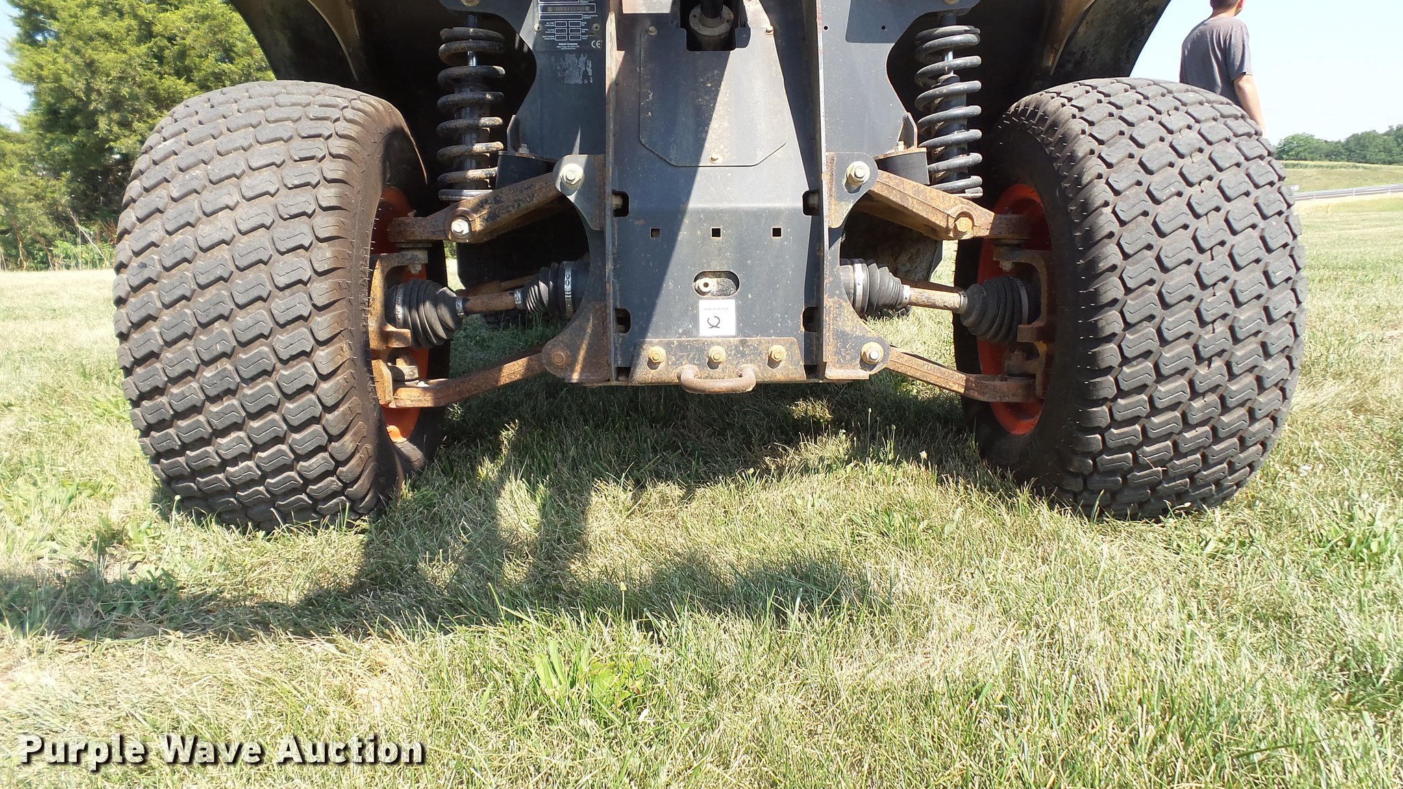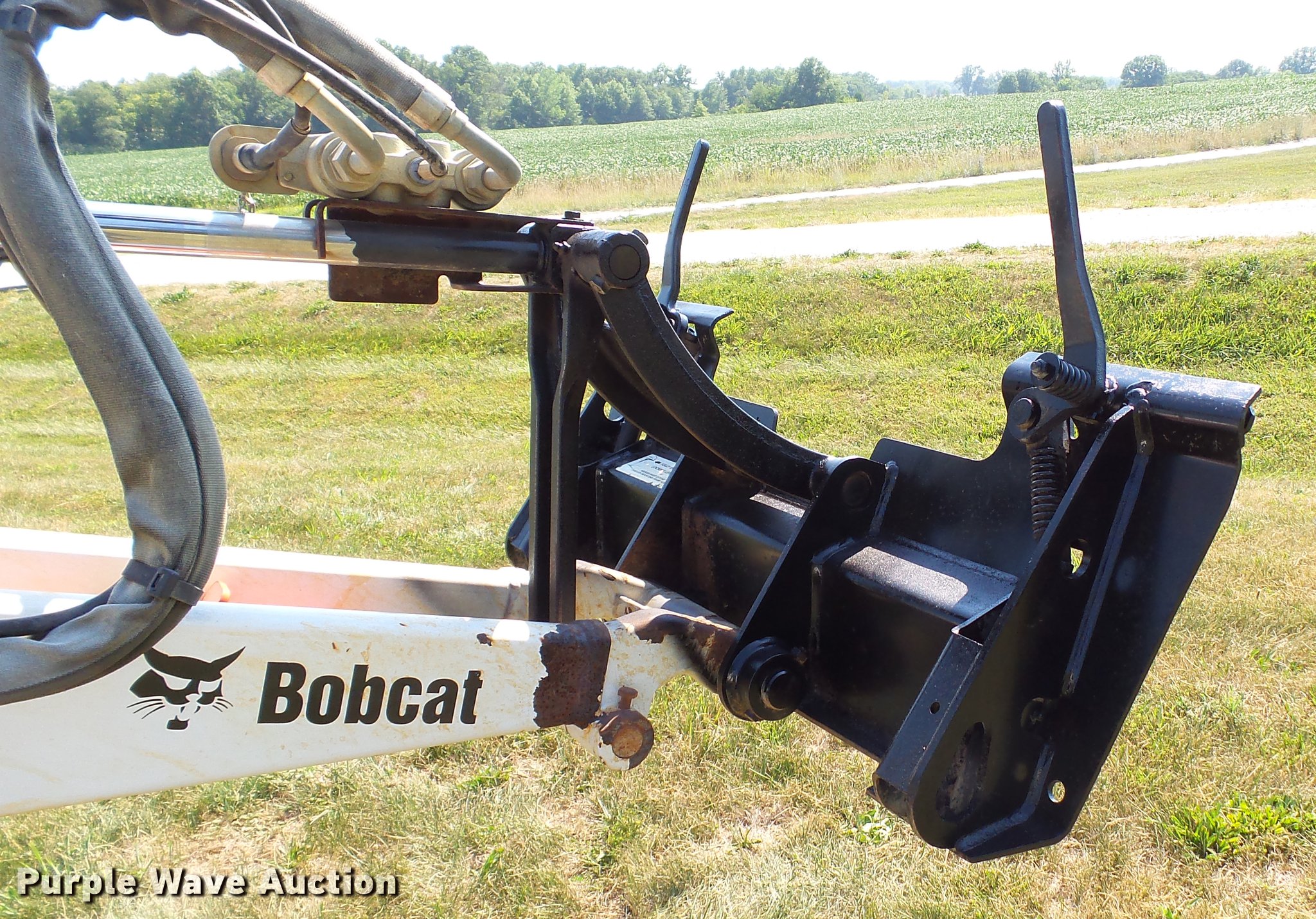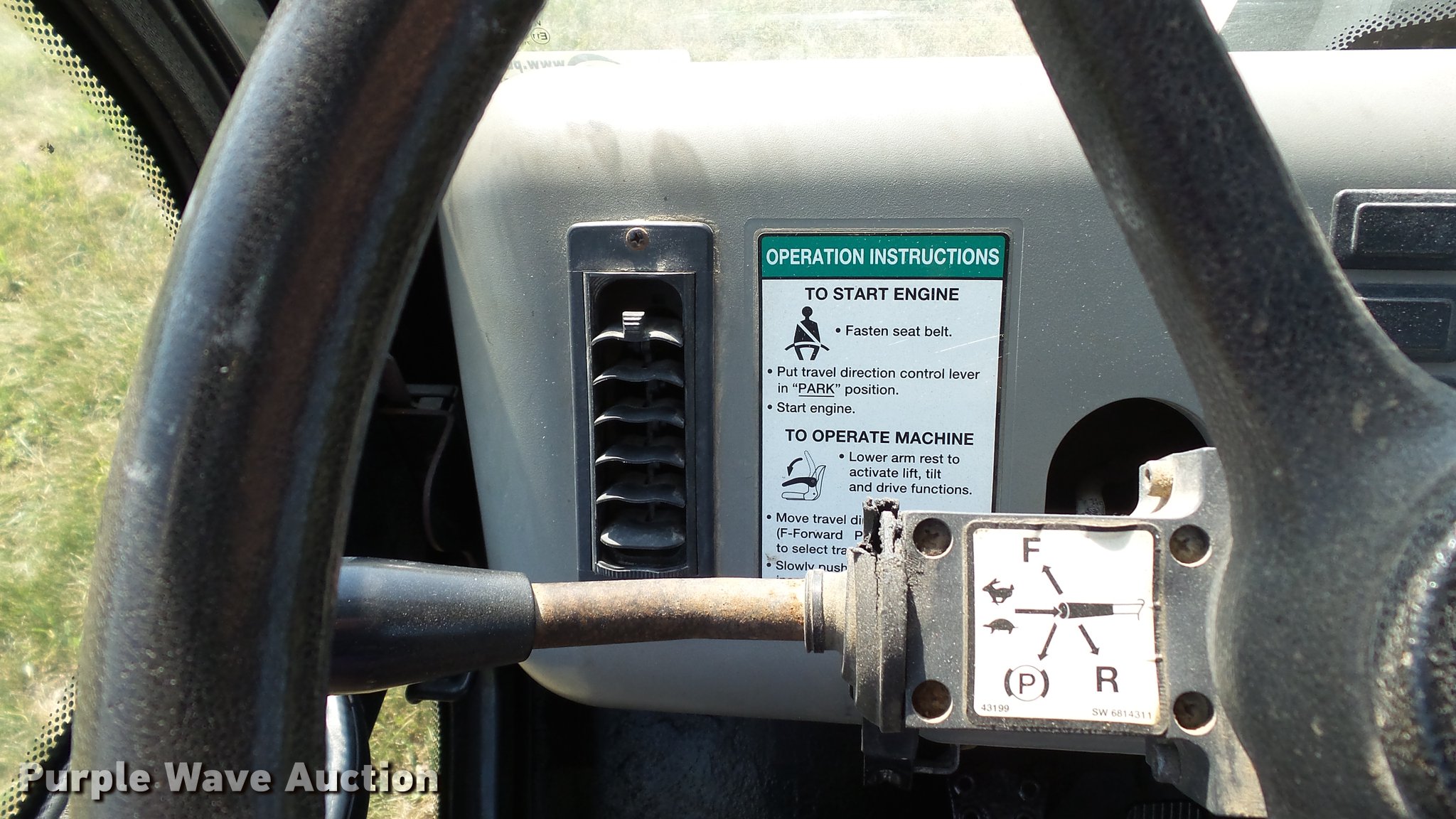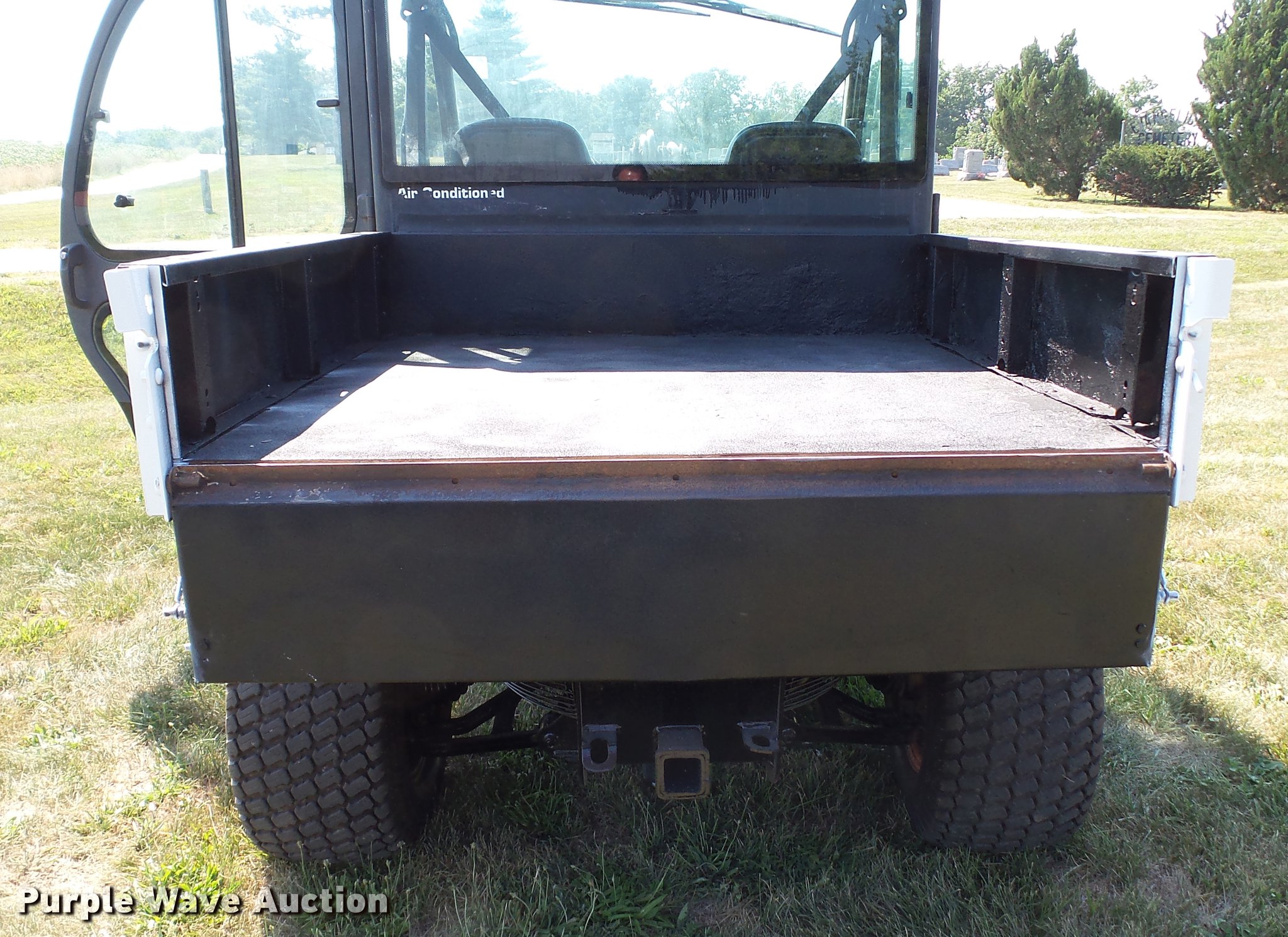 Purple Wave is selling a used Utility Vehicle in Missouri. This item is a 2007 Bobcat Toolcat 5600 utility work machine with the following: 3,040 hours on meter, Kubota V2003-T four cylinder turbo diesel engine, 61 HP, Two speed hydrostatic transmission, Four wheel drive, All wheel steer, Enclosed cab, AC and heat, Wipers, 56"L x 51" dump bed, Tool carrier, Manual quick coupler, High flow auxiliary hydraulics, Front and rear work lights, 29 x 12.50-15 tires, Serial A0W111236