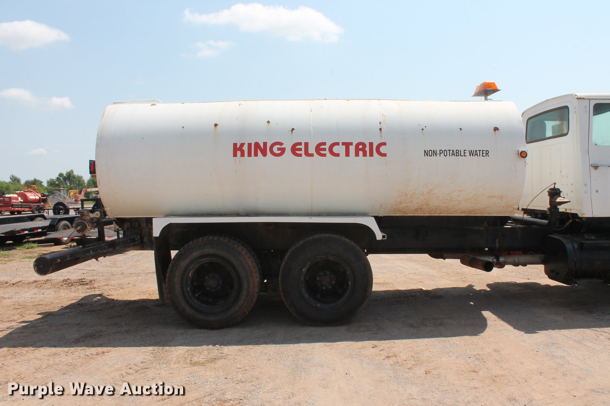 1981 Ford LTS9000 water truck. 270,241 miles on odometer, Cummins NTC 14.0L L6 turbo diesel engine 300 HP, Serial 11000340, Eaton Fuller RTO-9513-12513 nine speed manual transmission, Inter-axle differential lock, Tandem axle, AC and heat, Air suspension seat, PTO, Beacon light, Front tow hooks, 16'L x 92"W x 60"H tank 4,000 gallon capacity, Side and rear spray bar, Rear discharge, 3" rear drain, 2" rear outlet, 18" diameter top fill Sight tube, Toolbox, Ladder, Dual fuel tanks, 204" wheelbase, Spring suspension, Air brakes, 10.00R20 tires, GVWR 54,000 lbs, Possible engine issue, water in oil, Unit# 55. Oklahoma title. Title distribution may be delayed up to 14 days from verification of funds. 1FDYY90W2BVJ05755. King Electric. 1507 S Shepard Ave. El Reno, OK 73036