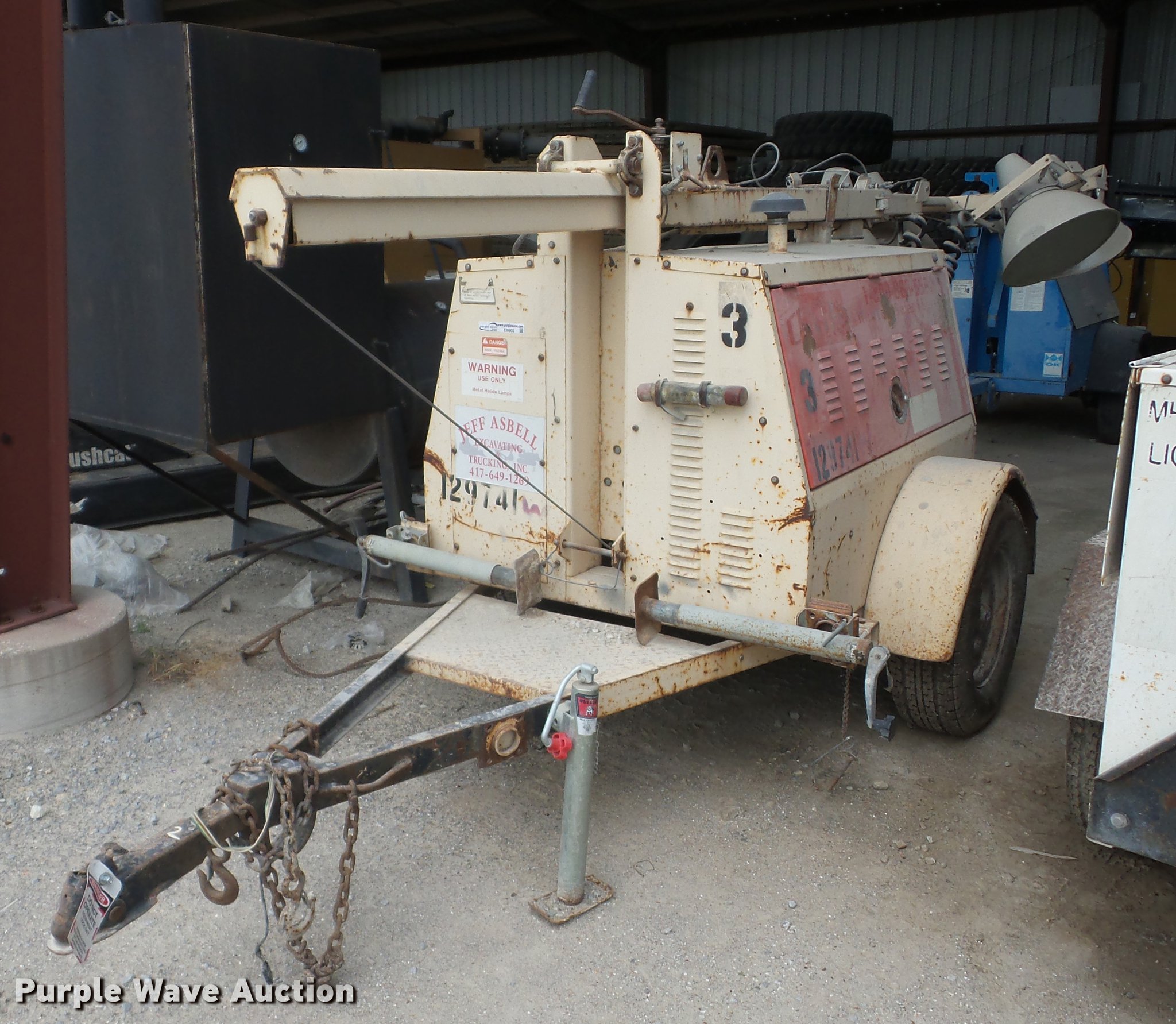 Allmand NL4BATMTK light plant. 6,163 hours on meter, Lister-Petter three cylinder diesel engine, Four bulbs, Manual hoist, Stabilizers, ST225/75R15 tires, Possible fuel pump issues, Non-operational unit, Serial 9304BN4B12. Transfer of ownership documentation will be a bill of sale. Asbell Trucking. 9400 MO-171. Carl Junction, MO 64834