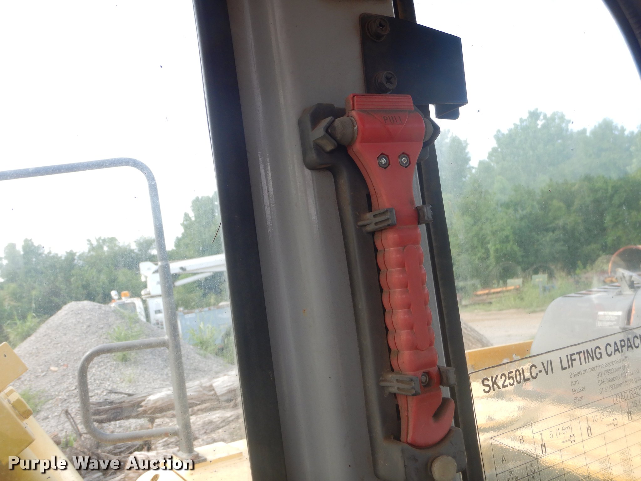 Purple Wave is selling a used Hydraulic Excavator in Oklahoma. This item is a 2004 Kobelco SK250LC excavator with the following: 8,198 hours on meter, Six cylinder turbo diesel engine, Hydrostatic transmission, AC and heat, AM/FM, Suspension seat, Front work lights, Wipers, Auto lube, Standard boom, 101" stick length, Two-way auxiliary hydraulics, Hydraulic thumb, Eaco 54"W bucket, Bolt-on cutting edge, (6) bolt-on teeth, 31"W steel tracks, Front windshield wiper missing, Front work light missing, Weak hydraulic pressure on thumb, Unknown operating condition of AC and heat, Serial LL09-U0741
