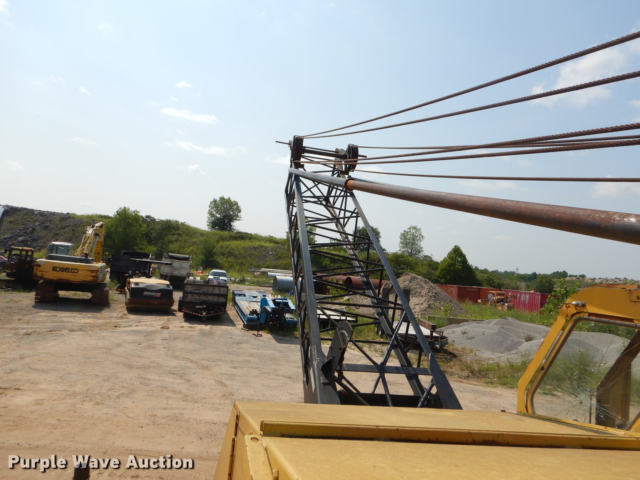 Purple Wave is selling a used Crawler Crane in Oklahoma. This item is a American 4210 crane with the following: Detroit Diesel six cylinder diesel engine, Hydrostatic transmission, Suspension seat, Stick crane controls, Work ligths, 70' lattice boom, Three boom sections, 40 ton maximum lift capacity, Single winch, In-cab boom controls, Clamshell bucket, 36"W single grouser track pads, Glass broken, Steering issue, Possible crossed air line, Serial GS14319W, Unit# 93
