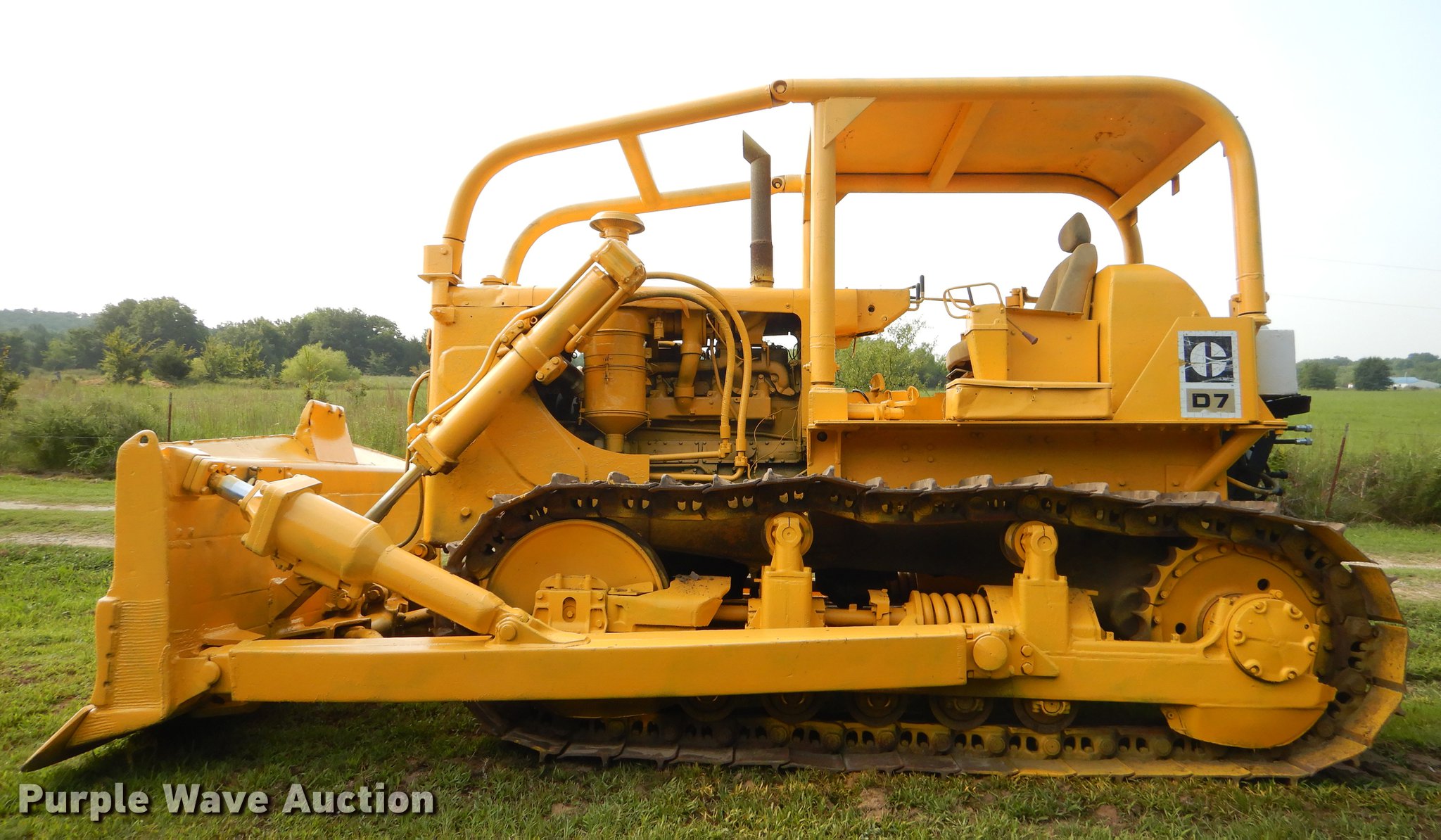 Purple Wave is selling a used Crawler Dozer in Oklahoma. This item is a Caterpillar D7 dozer with the following: Unknown hours on meter, Caterpillar four cylinder turbo diesel engine, Direct-drive transmission, Canopy, Suspension seat, Clutch brake steering, 140"W straight dozer blade, (6) rear hydraulic remotes, Five bottom rollers, 24"W single grouser track pads, Manuals, Serial 78E220