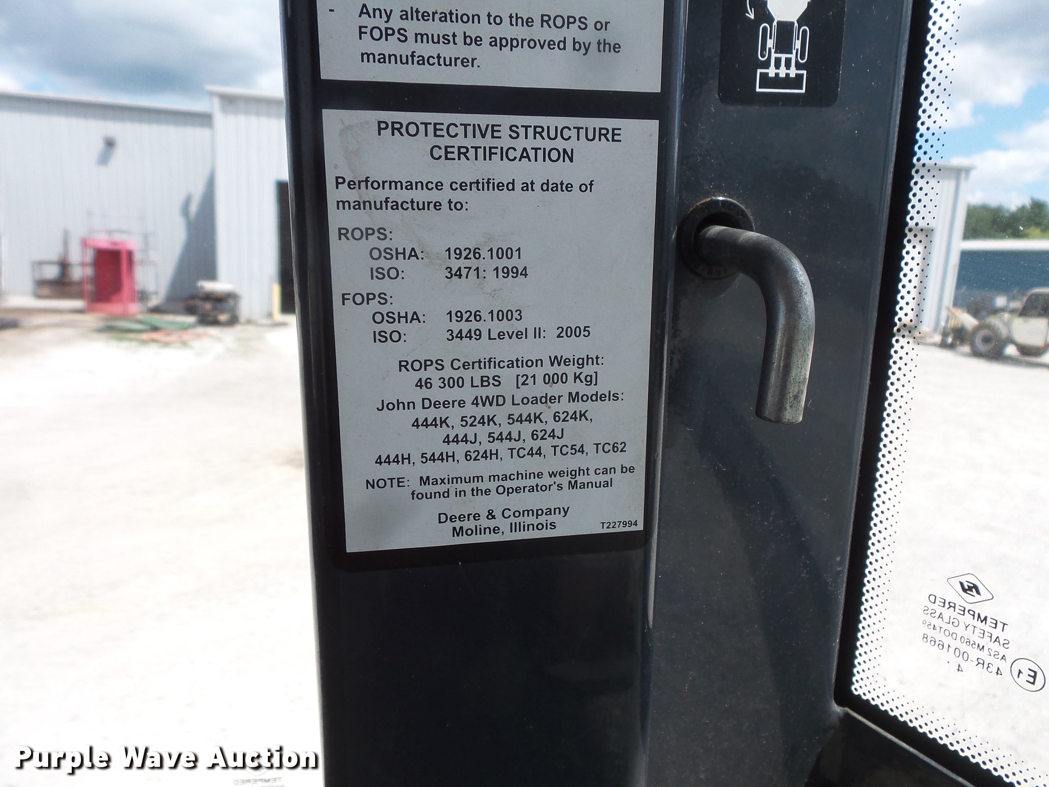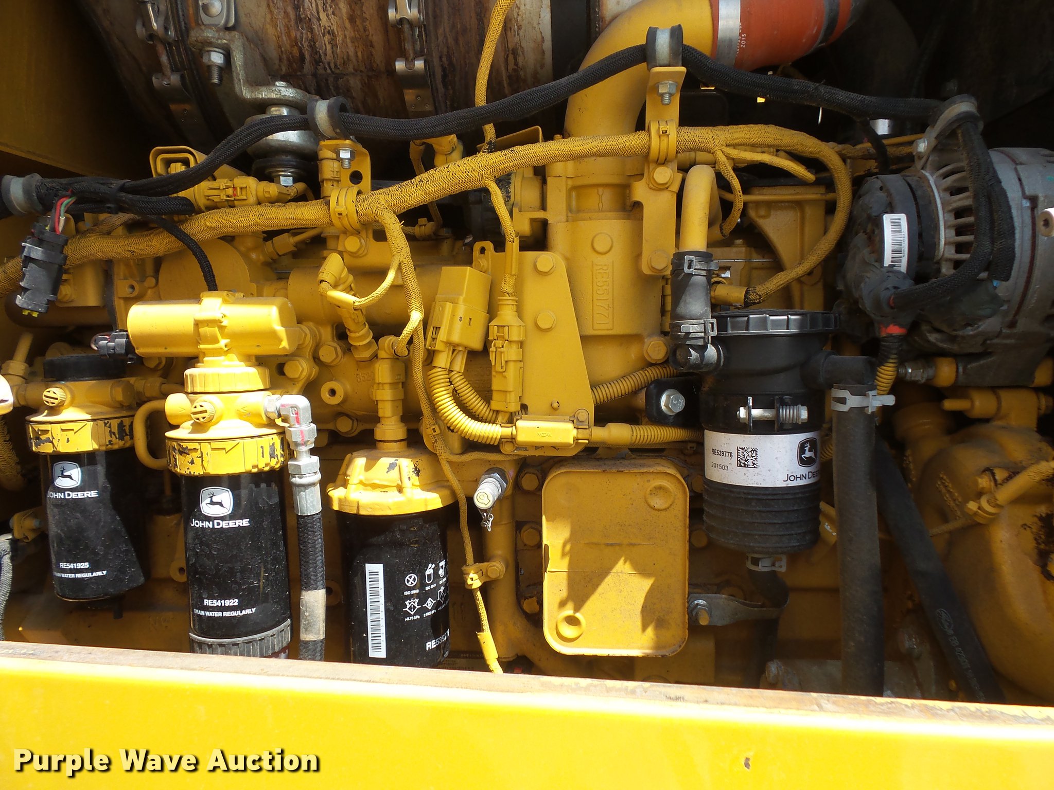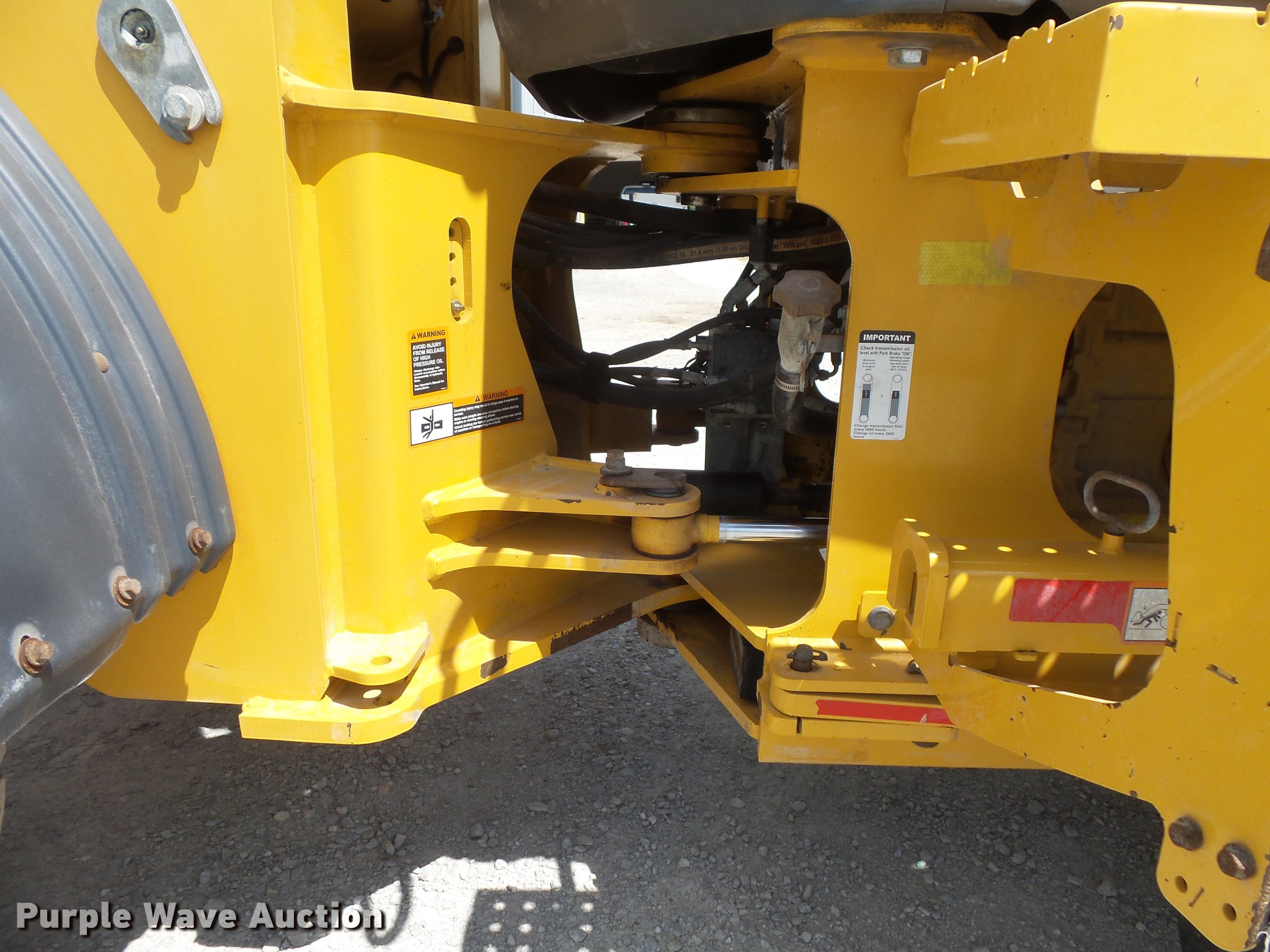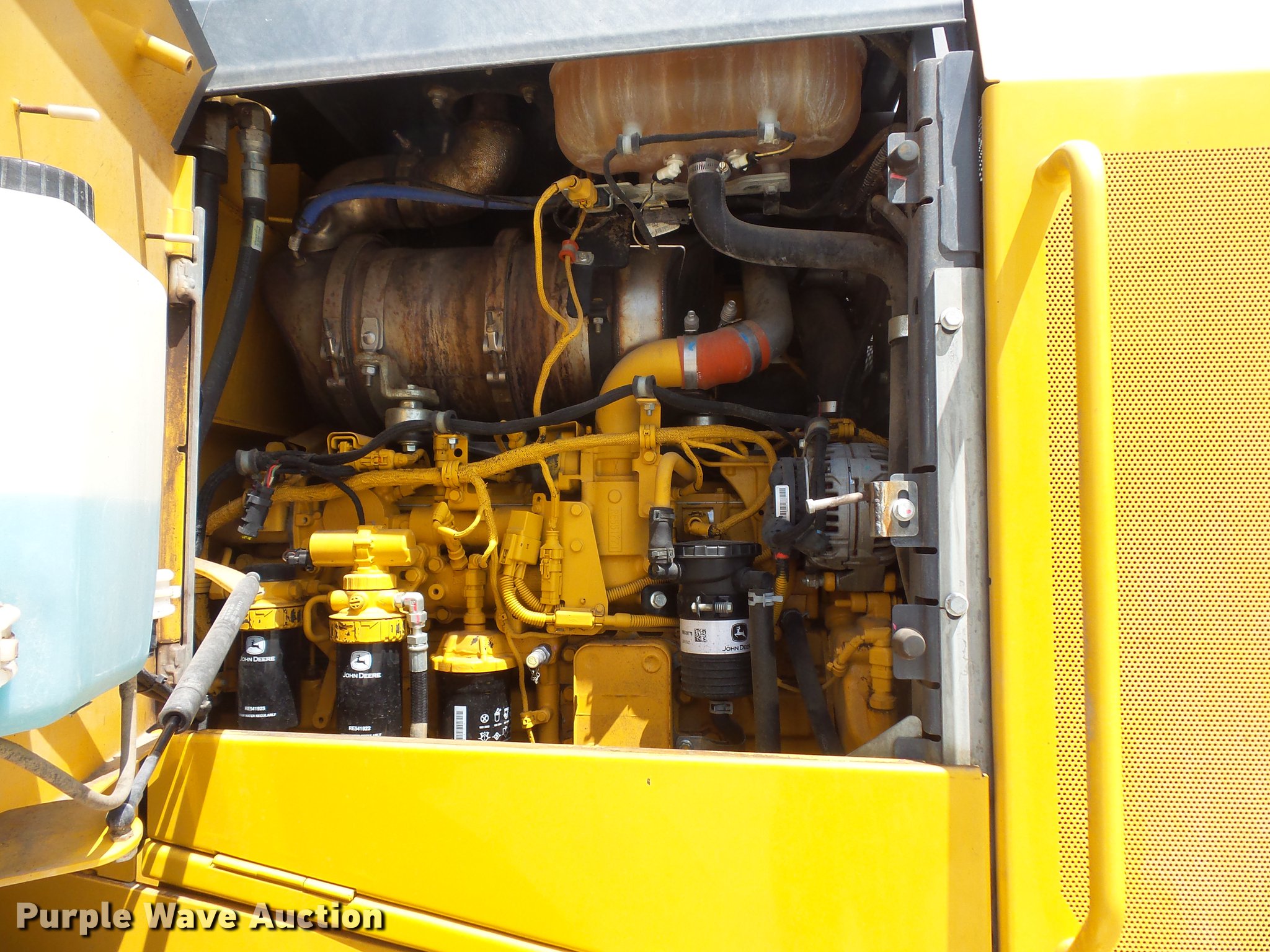 Purple Wave is selling a used Wheel Loader in Indiana. This item is a 2015 John Deere 544K High Lift wheel loader with the following: 8,258 hours on meter, John Deere 6068 six cylinder turbo diesel engine, 163 HP, Serial PE6068R103397, Powershift transmission, 4F-3R gears, Differential lock, EROPS, AC and heat, AM/FM, Suspension seat, Joystick bucket controls, Ride control, Wipers, Front and rear work lights, John Deere AT340089-544 105"W general purpose bucket, Three cu. yd. capacity, Bolt-on cutting edge, Counterweights, 20.5R25 tires, Serial 1DW544KHPFE669827