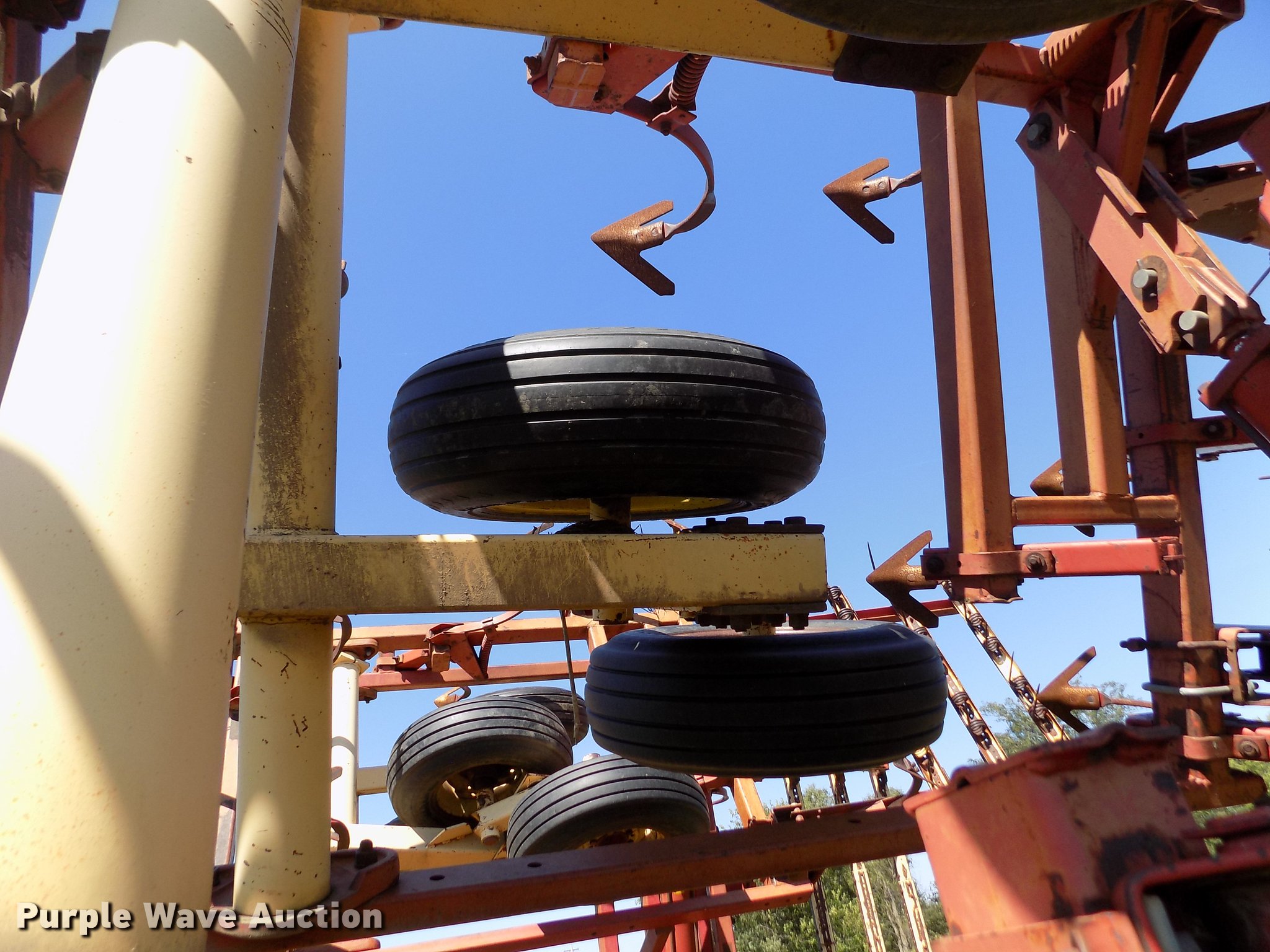 Purple Wave is selling a used Field Cultivator or Sweep Plow in Kansas. This item is a Krause 4246 field cultivator with the following: 46'W, 10"W sweeps, Three bar tine harrow, Hydraulic lift and fold, Pin/clevis hitch, Walking tandem axle, 9.5L-15 wing tires, 10.00-15 transport tires, Frame cracks/repairs, Hydraulic lift cylinder leaks, Serial 1046