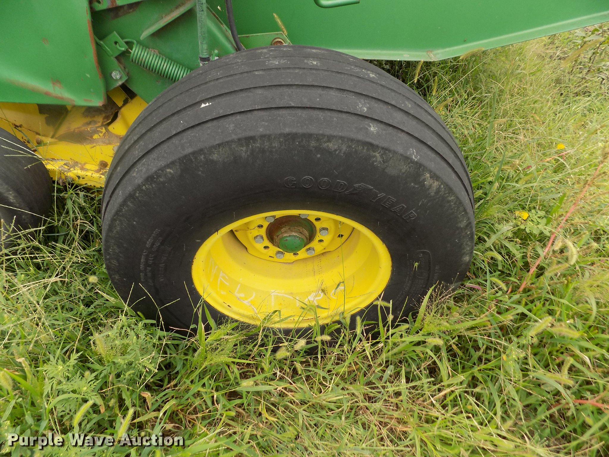 Purple Wave is selling a used Round Baler in Kansas. This item is a John Deere 530 round baler with the following: 5' x 6' bale capacity, 60"W pickup, Gauge wheels, John Deere Bale-Trak monitor, Twine tie, 540 PTO, Pin hitch, Draw bar adapter, 31x13.50-15 NHS tires, Pickup guards missing, Bearing on roller need to be replaced, Serial E00530X772170