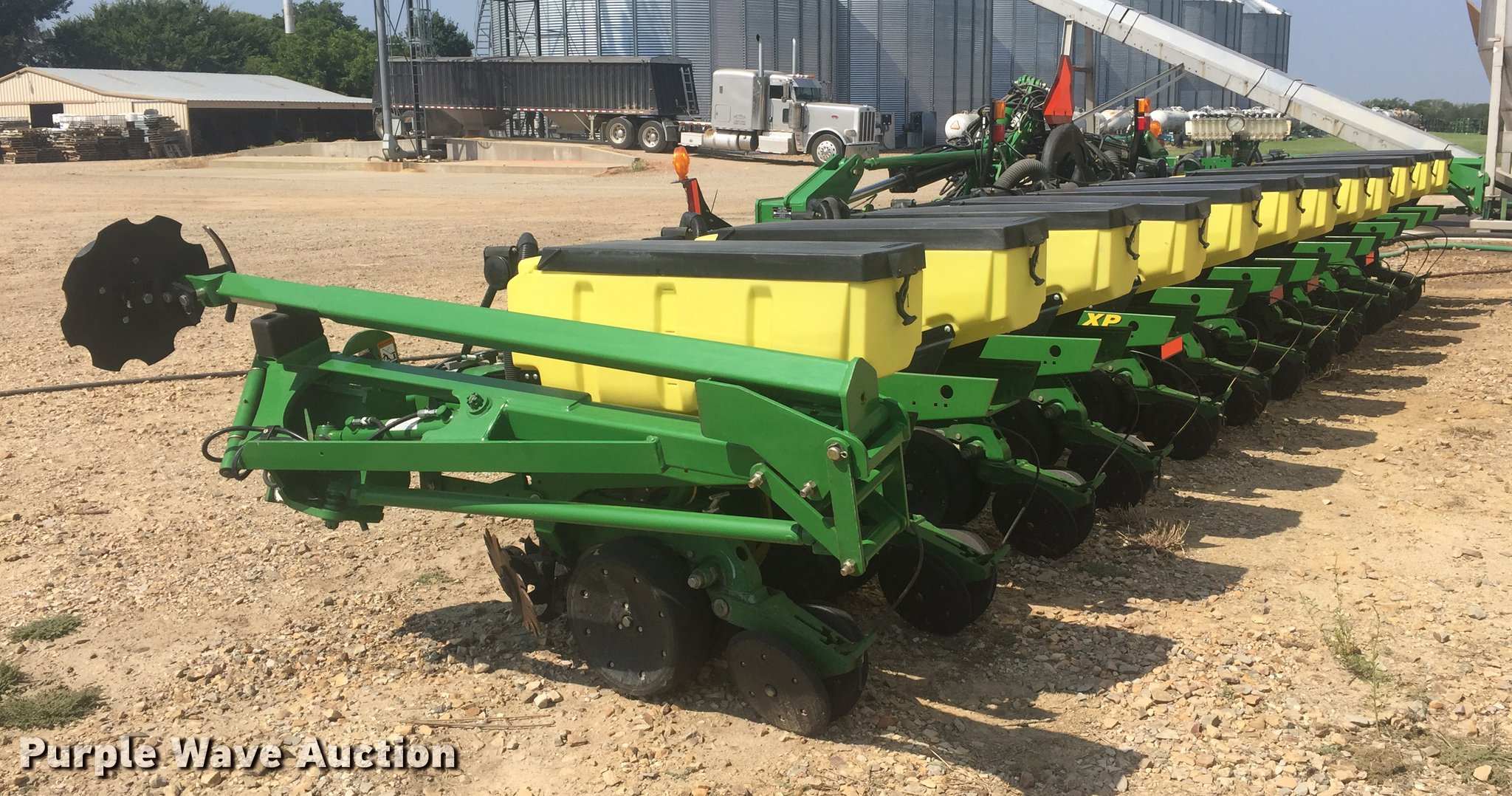 Purple Wave is selling a used Planter in Texas. This item is a 2014 John Deere 1720 no-till planter with the following: 12 row units, 30" row spacing, Marker arms, Hydraulic stack fold, Individual seed hoppers, Three bushel capacity, Air delivery, Vacuum metering, Hydraulic meter drive, Precision seed meters, Pneumatic down pressure, Row cleaners, Seed firmers, Double disk openers, Double gauge wheels, Double rubber closing system, Seed firmer fertilizer application, Squeeze pump, Three point, (4) drive/outside tires, Serial 1A01720RCDM755419