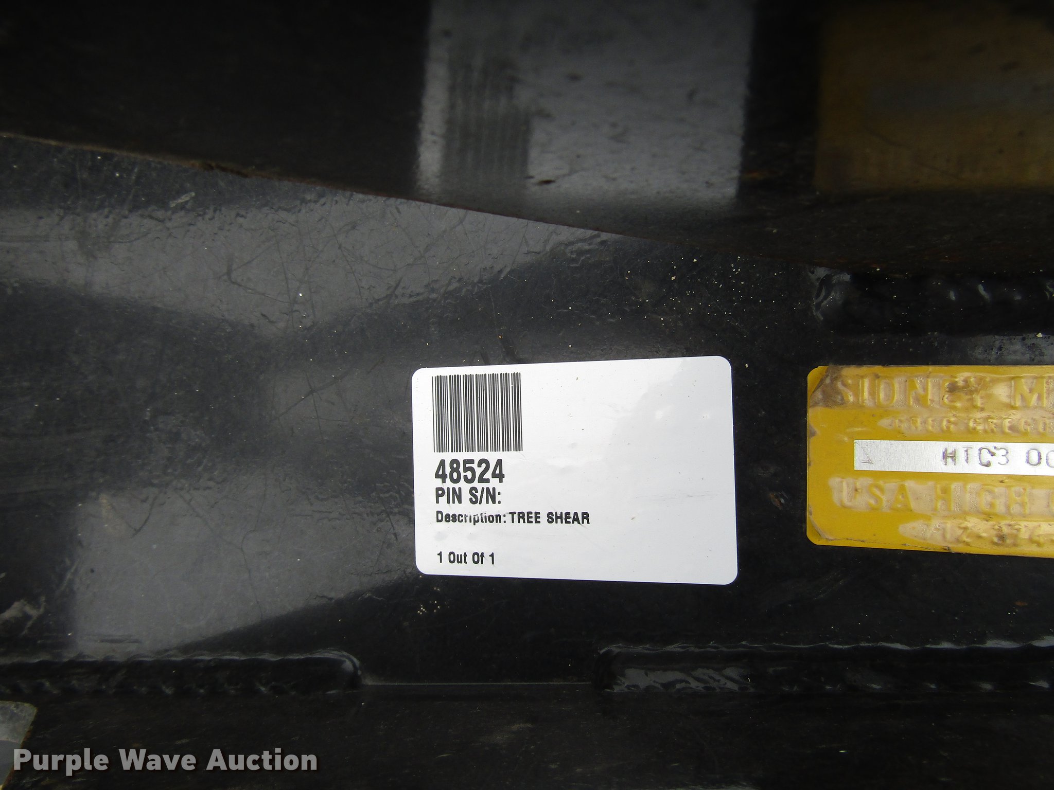 Purple Wave is selling a used Skid Steer Attach. in Kansas. This item is a Sidney Mfg. Inc. tree shear with the following: Hydraulic connectors, Serial HTC300746