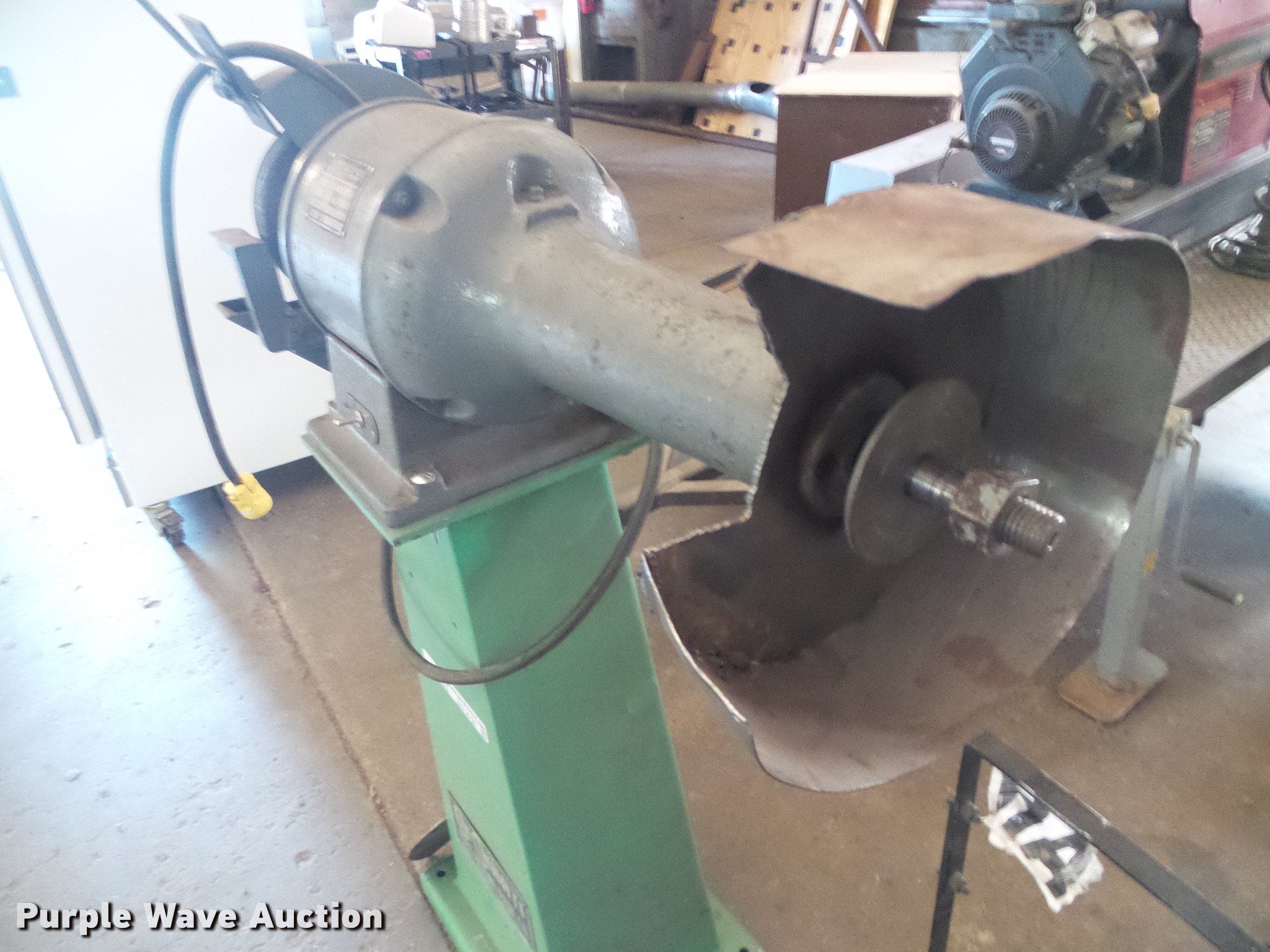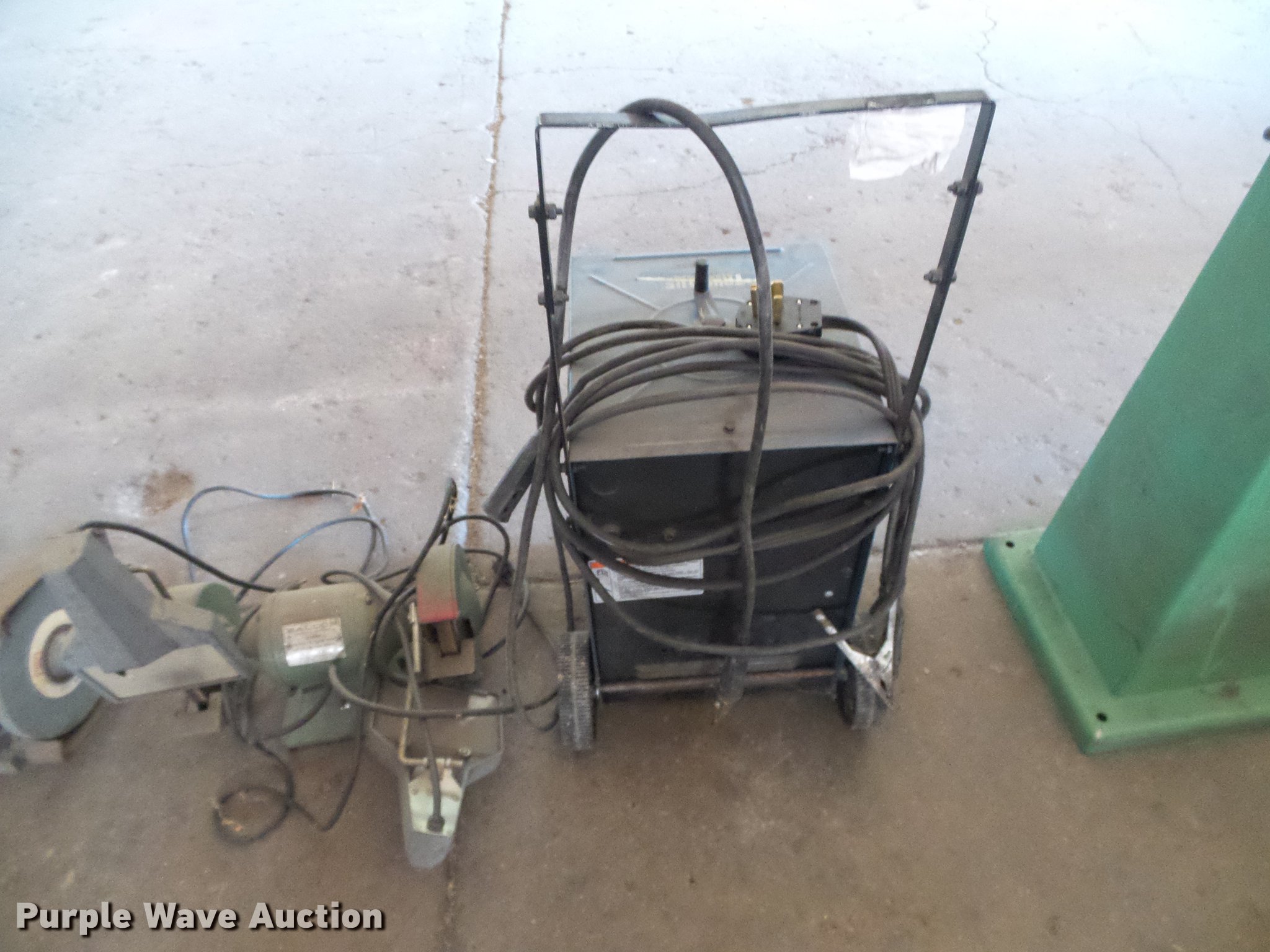 Purple Wave is selling a used Tools in Kansas. This item is a Tools with the following: Cincinnati bench grinder, 110V, Stand, Miller Thunderbolt AC/DC stick welder, (2) bench grinders, (2) floor jacks, Non-operational, Parts washer, Barrel, Unknown operating conditions