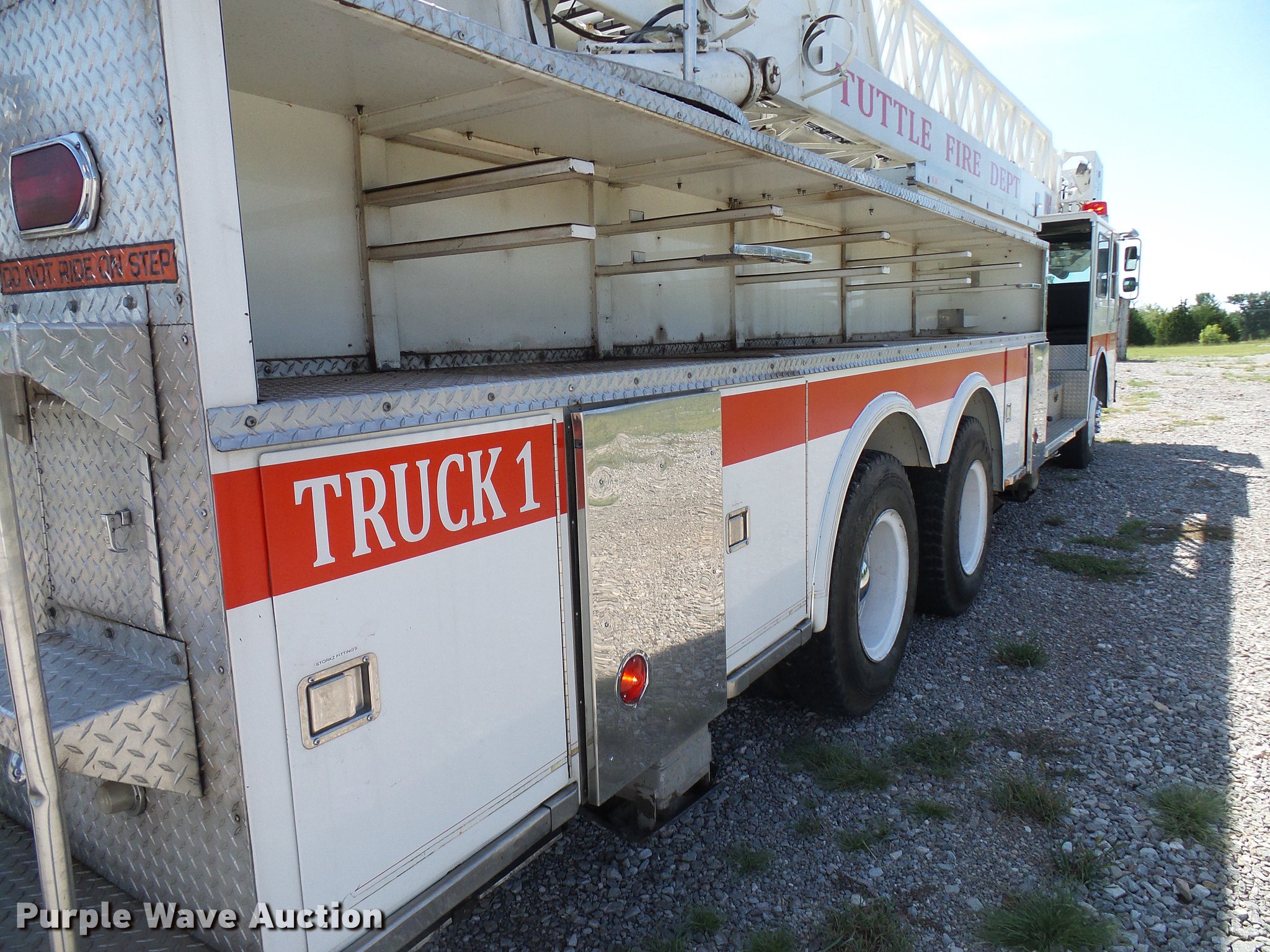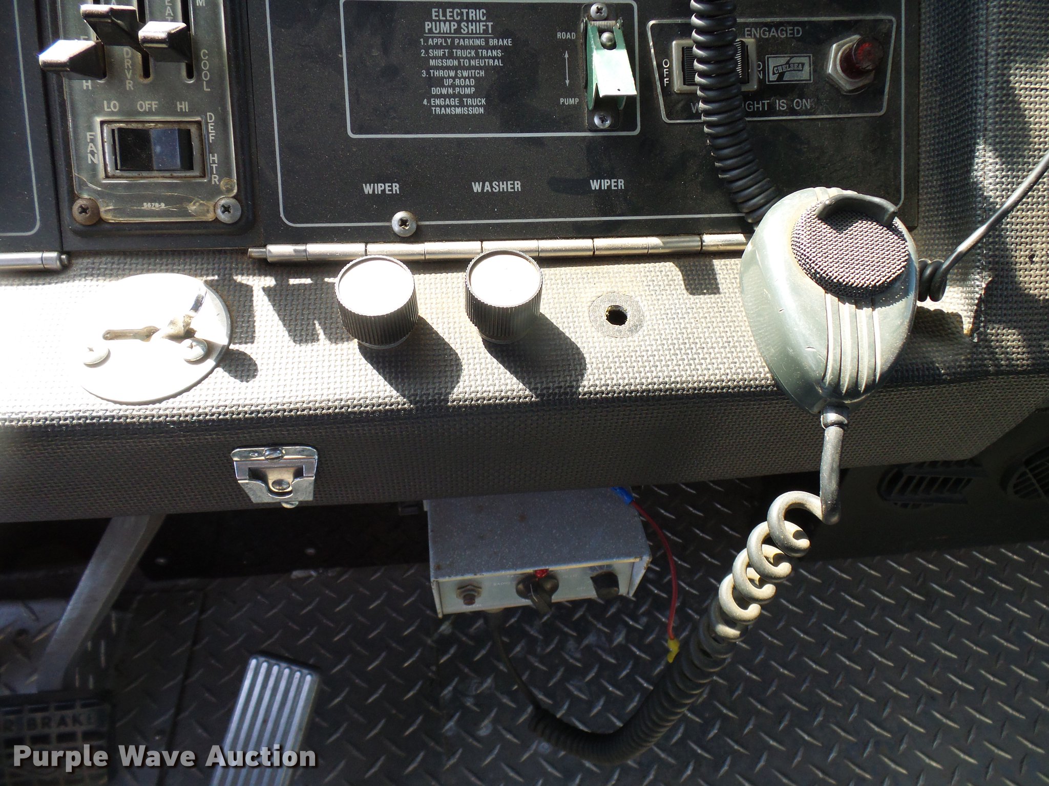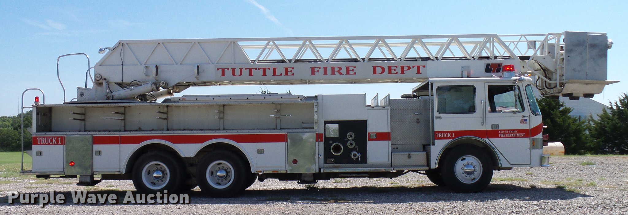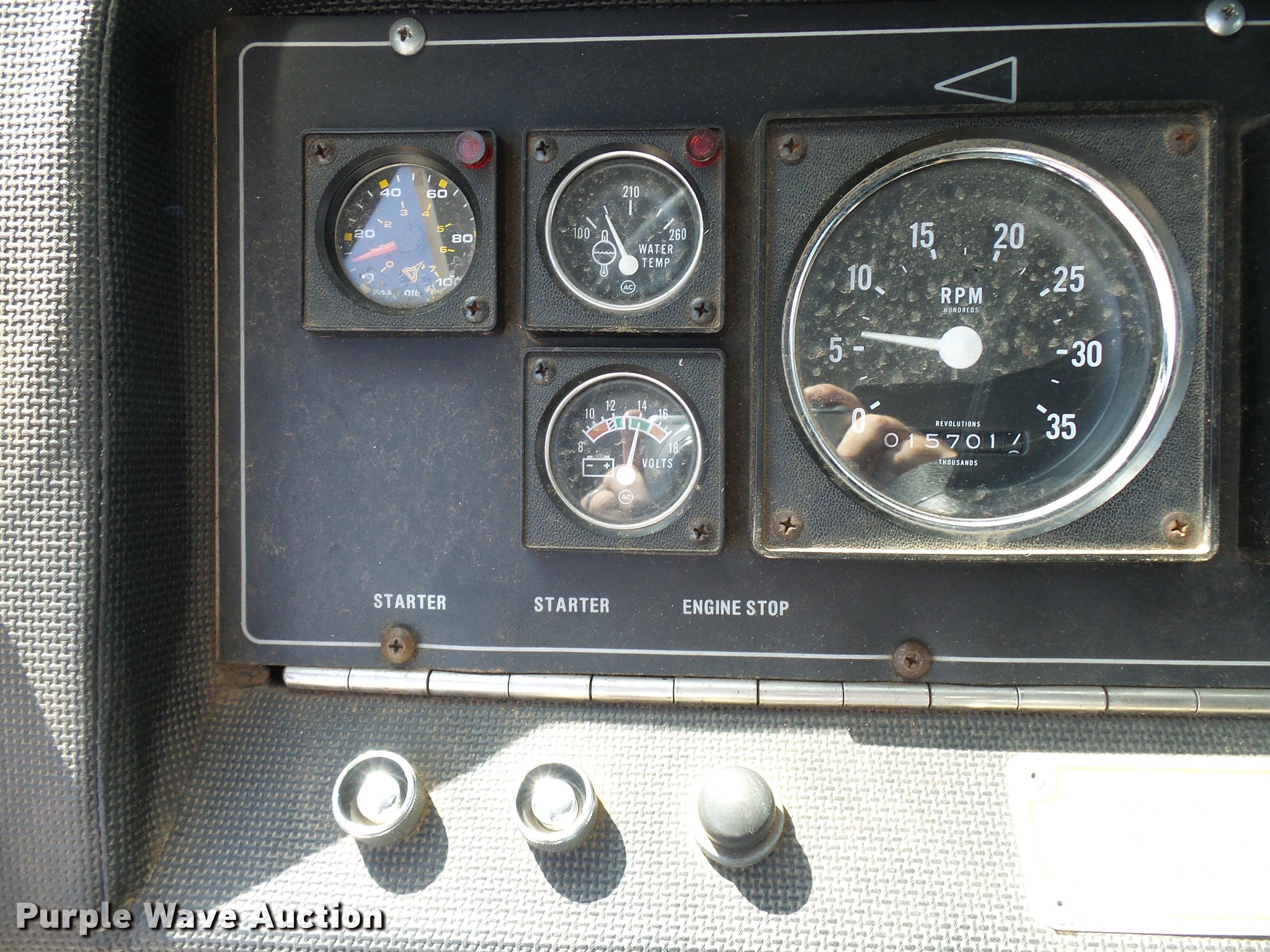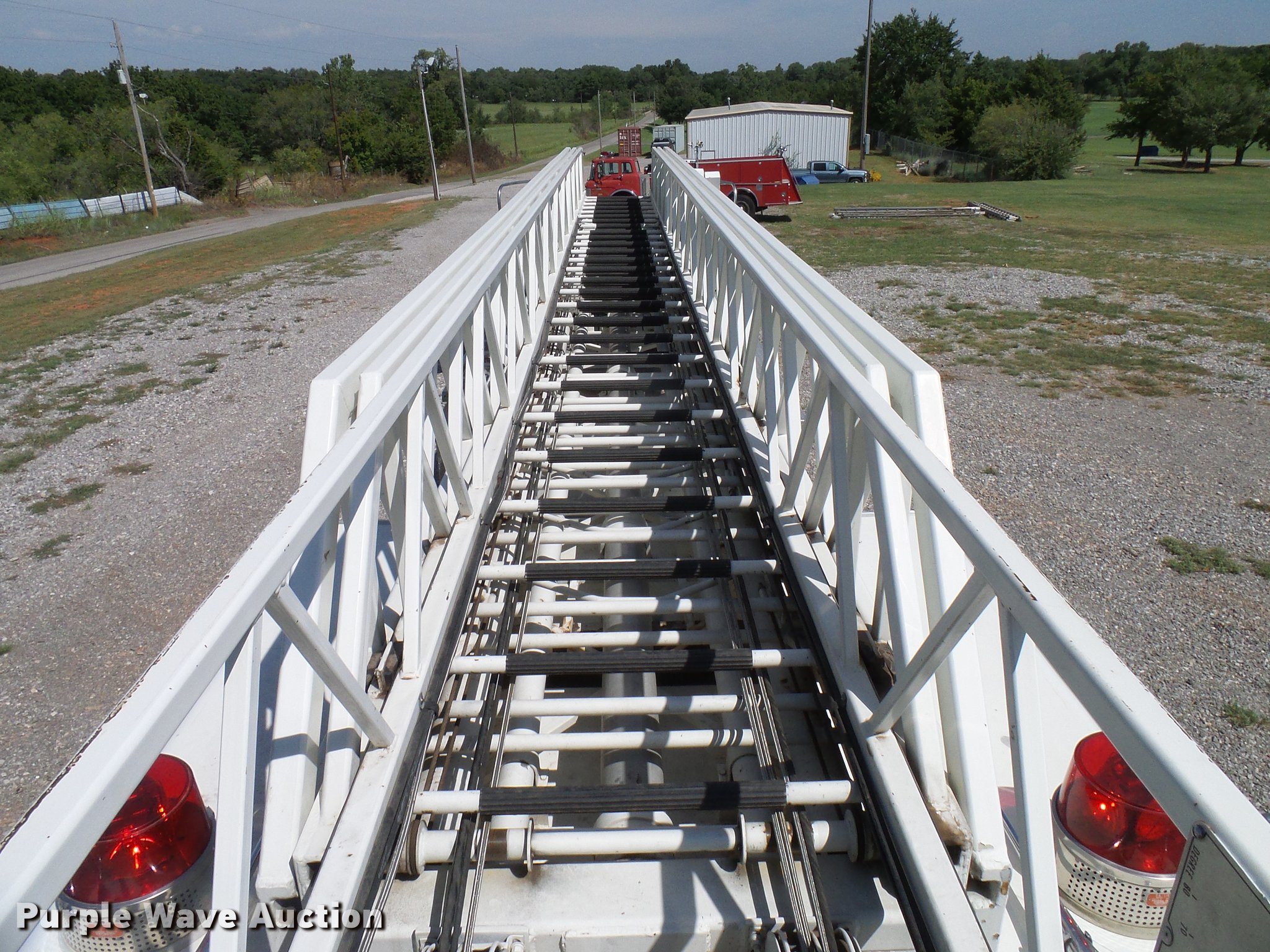 Purple Wave is selling a used Fire Truck or Emergency Vehicle in Oklahoma. This item is a 1981 Pierce U-1844M fire truck with the following: 16,820 miles on odometer, 156,995 hours on meter, Detroit Diesel eight cylinder turbo diesele ngine, Automatic transmission, Inter-axle differential locks, Tandem axle, Heat, Suspension seat, Auxiliary controls, PTO, Pierce E-1083 platform, 1,250 gallon per minute pump, Ladder & Towers 3S-85 fire apparatus, Elevated control station, Water gun, Outlet box, Three section ladder, 85'L,, (4) outriggers, 232" wheelbase, Air brakes, 12R22.5 front tires, 10.00R20 rear tires, GVWR 62,000 lbs, Two way radio not included, Hydraulic leak