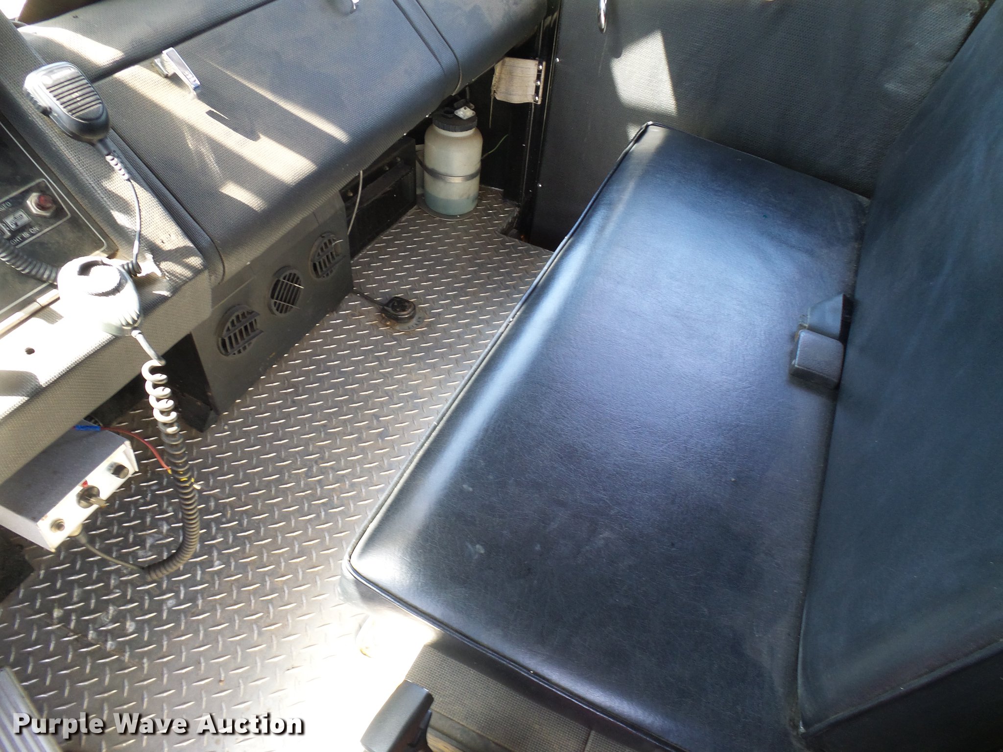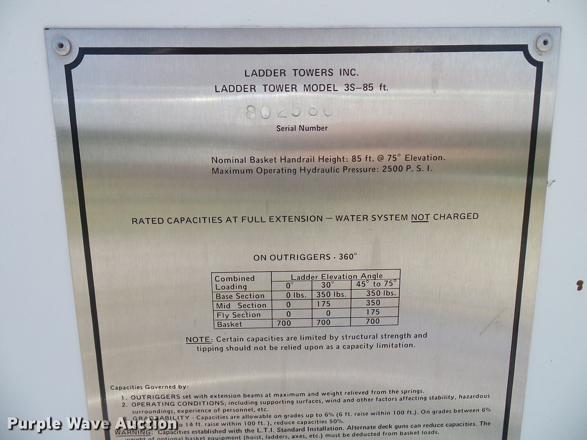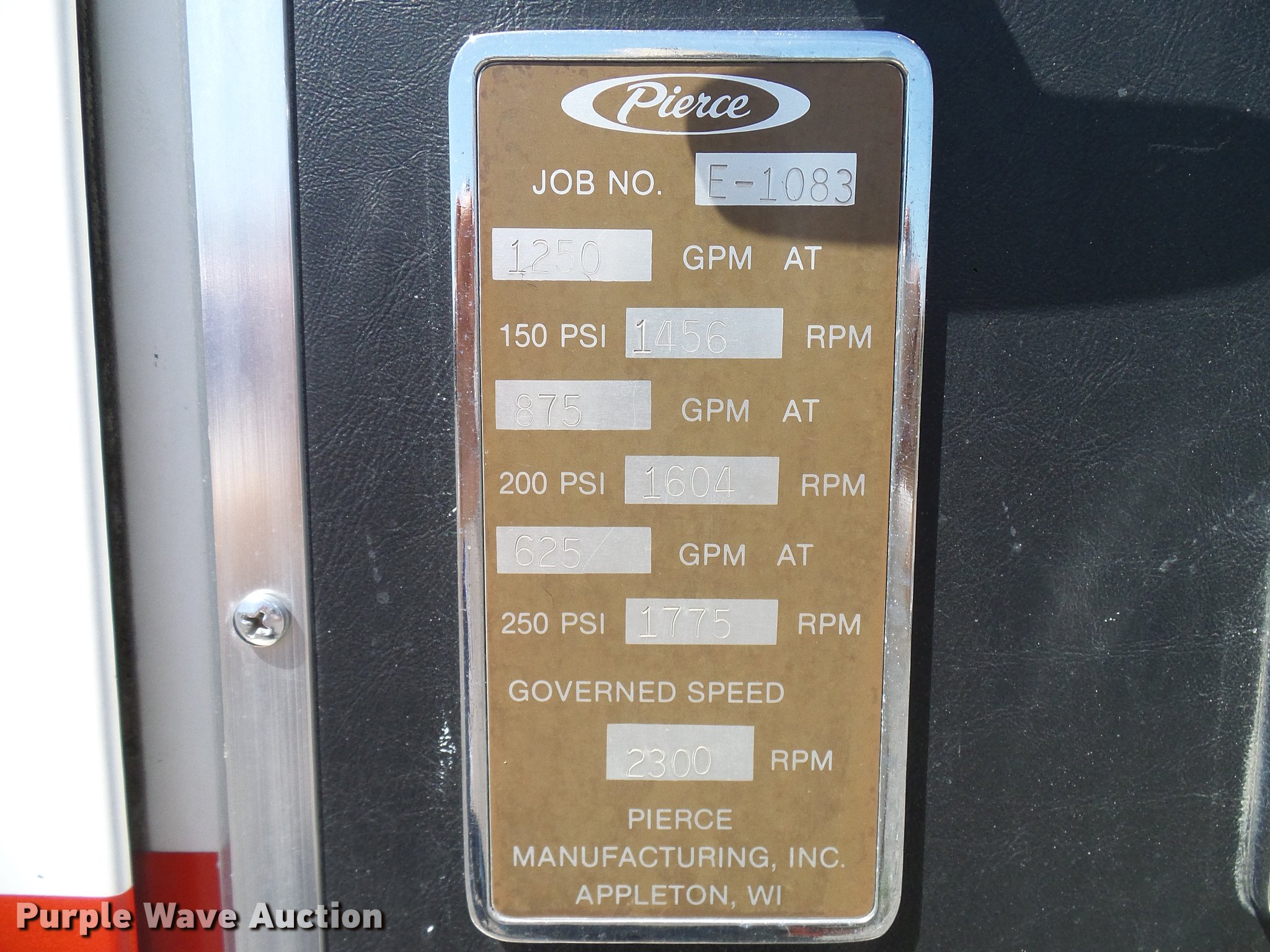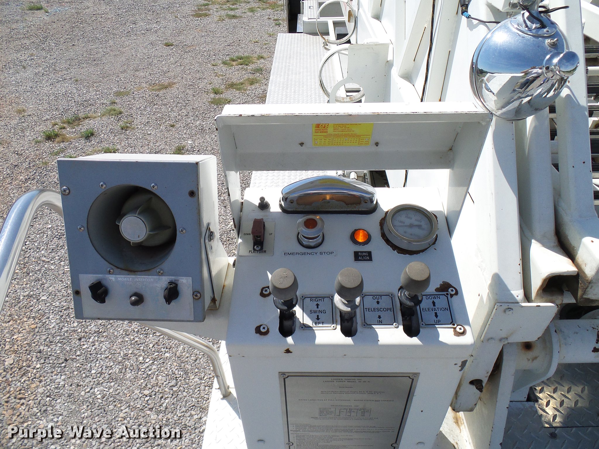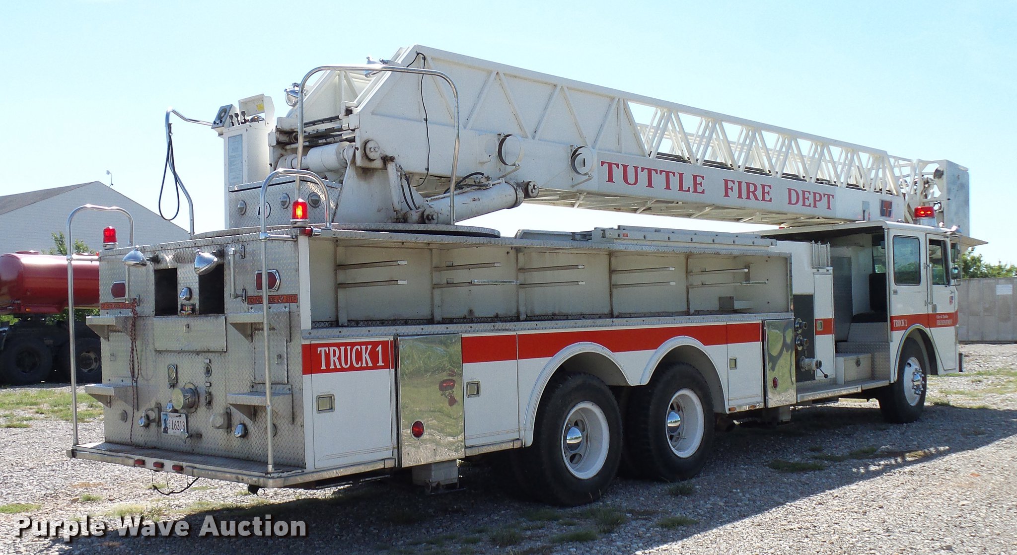 Purple Wave is selling a used Fire Truck or Emergency Vehicle in Oklahoma. This item is a 1981 Pierce U-1844M fire truck with the following: 16,820 miles on odometer, 156,995 hours on meter, Detroit Diesel eight cylinder turbo diesele ngine, Automatic transmission, Inter-axle differential locks, Tandem axle, Heat, Suspension seat, Auxiliary controls, PTO, Pierce E-1083 platform, 1,250 gallon per minute pump, Ladder & Towers 3S-85 fire apparatus, Elevated control station, Water gun, Outlet box, Three section ladder, 85'L,, (4) outriggers, 232" wheelbase, Air brakes, 12R22.5 front tires, 10.00R20 rear tires, GVWR 62,000 lbs, Two way radio not included, Hydraulic leak
