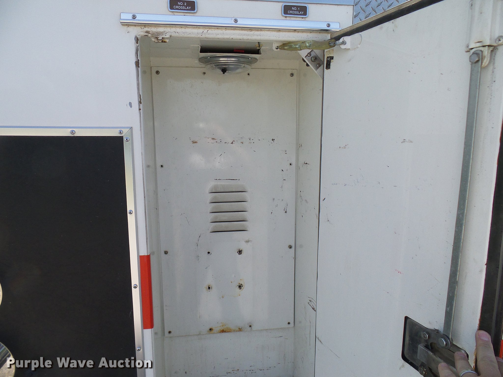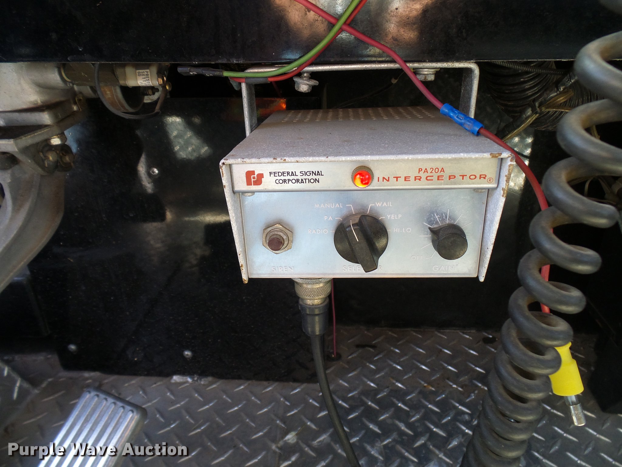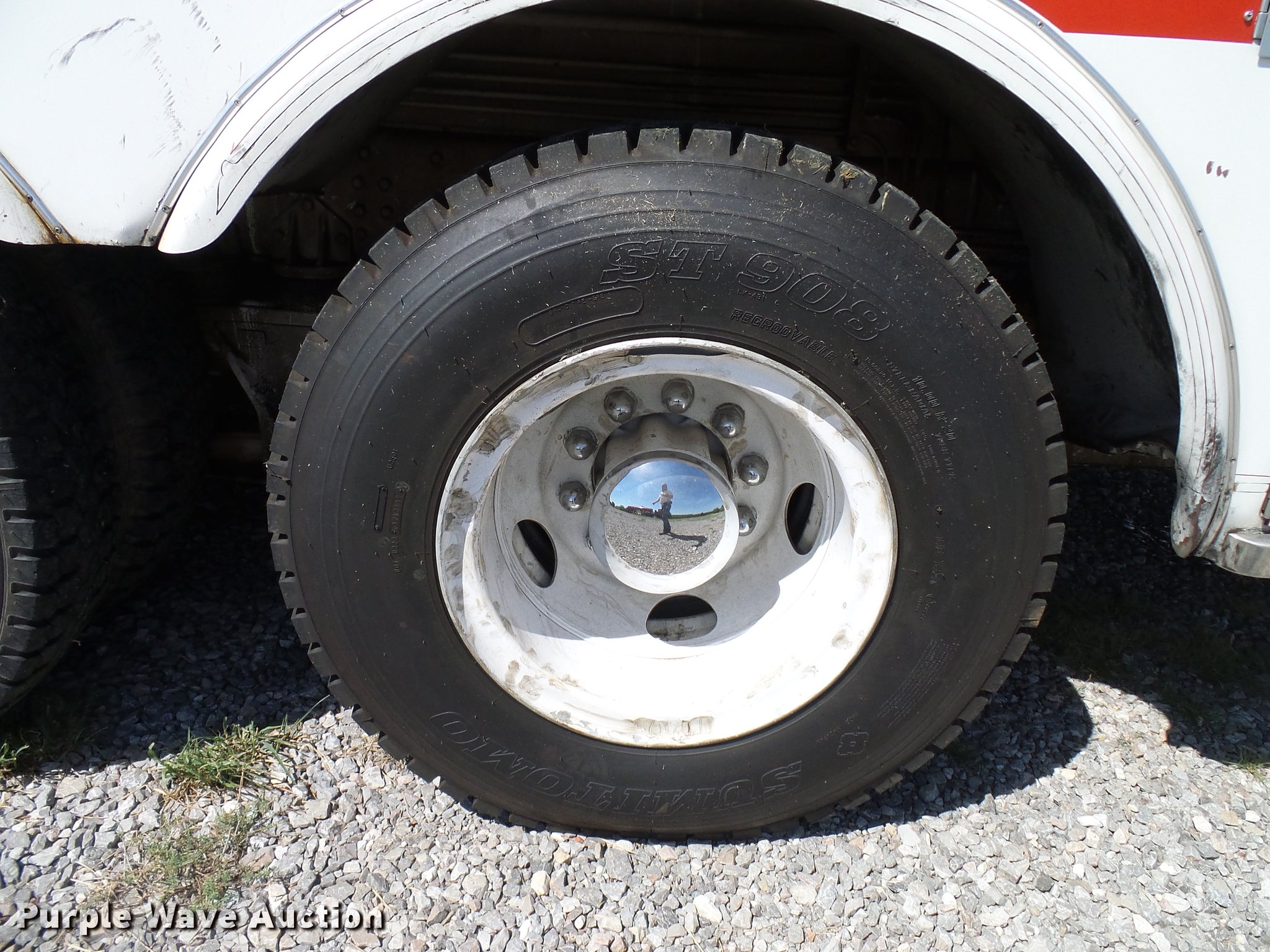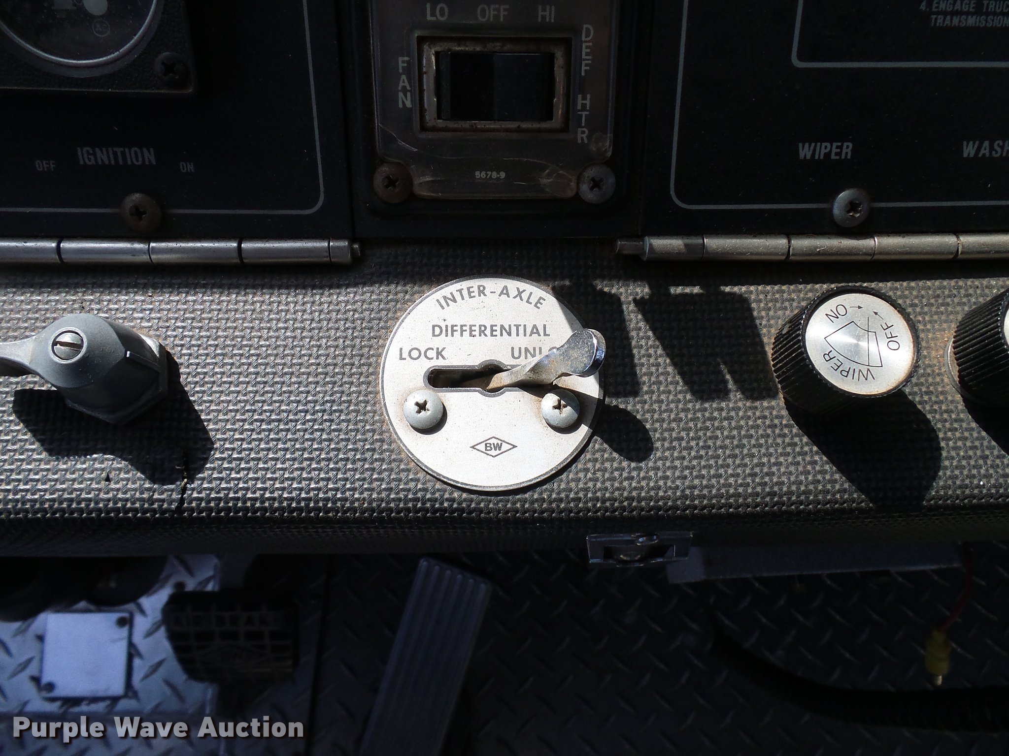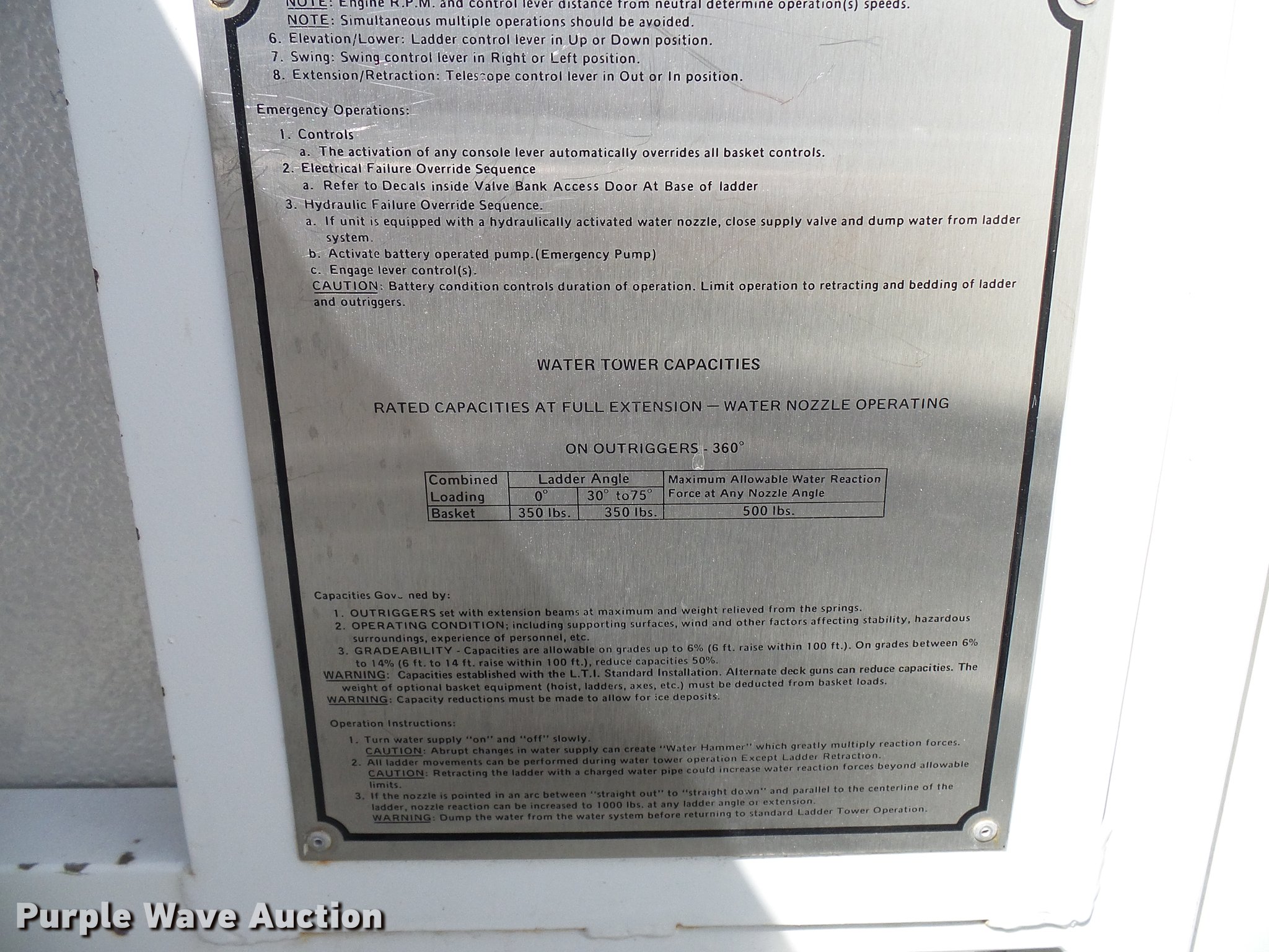 Purple Wave is selling a used Fire Truck or Emergency Vehicle in Oklahoma. This item is a 1981 Pierce U-1844M fire truck with the following: 16,820 miles on odometer, 156,995 hours on meter, Detroit Diesel eight cylinder turbo diesele ngine, Automatic transmission, Inter-axle differential locks, Tandem axle, Heat, Suspension seat, Auxiliary controls, PTO, Pierce E-1083 platform, 1,250 gallon per minute pump, Ladder & Towers 3S-85 fire apparatus, Elevated control station, Water gun, Outlet box, Three section ladder, 85'L,, (4) outriggers, 232" wheelbase, Air brakes, 12R22.5 front tires, 10.00R20 rear tires, GVWR 62,000 lbs, Two way radio not included, Hydraulic leak