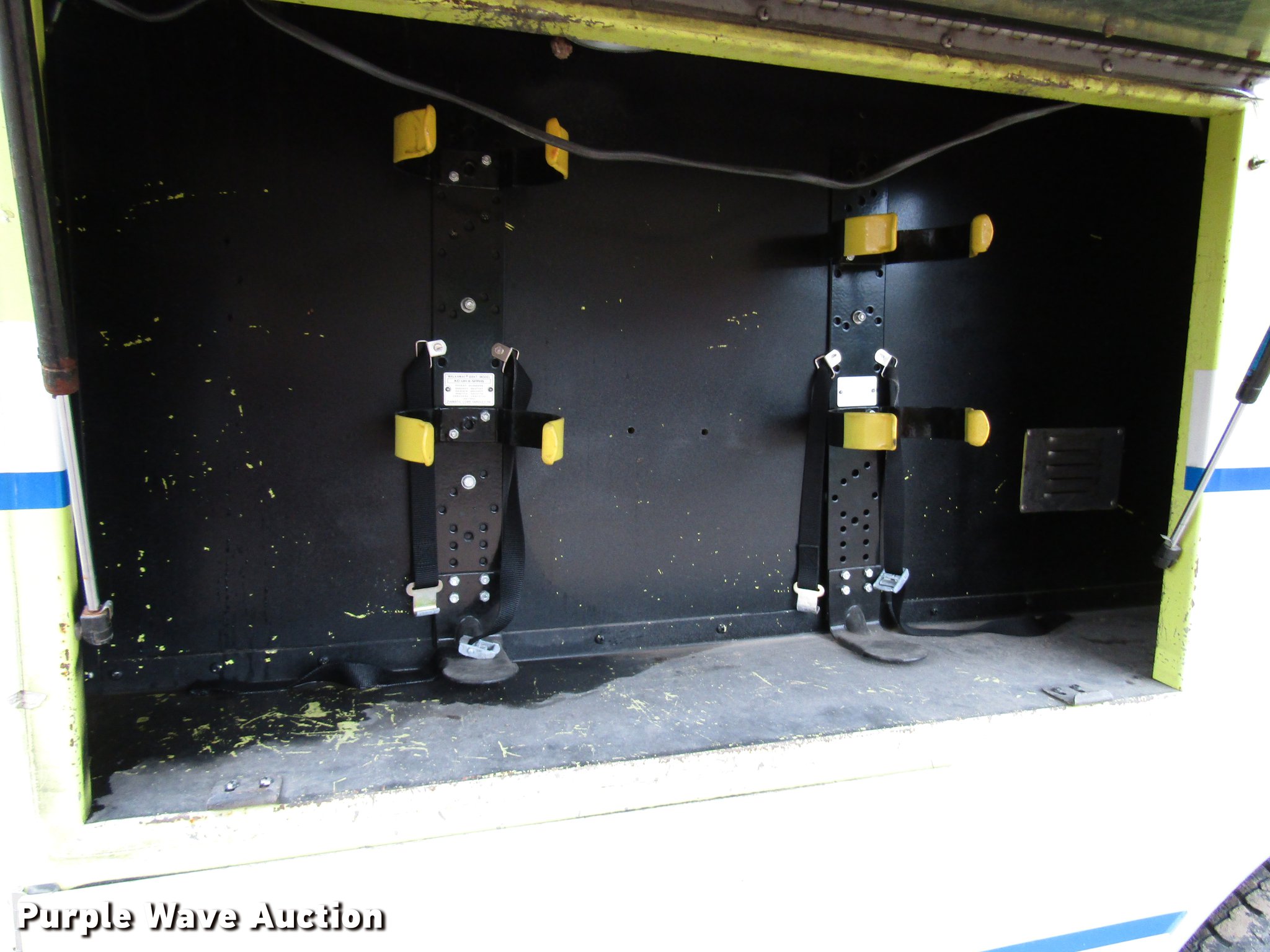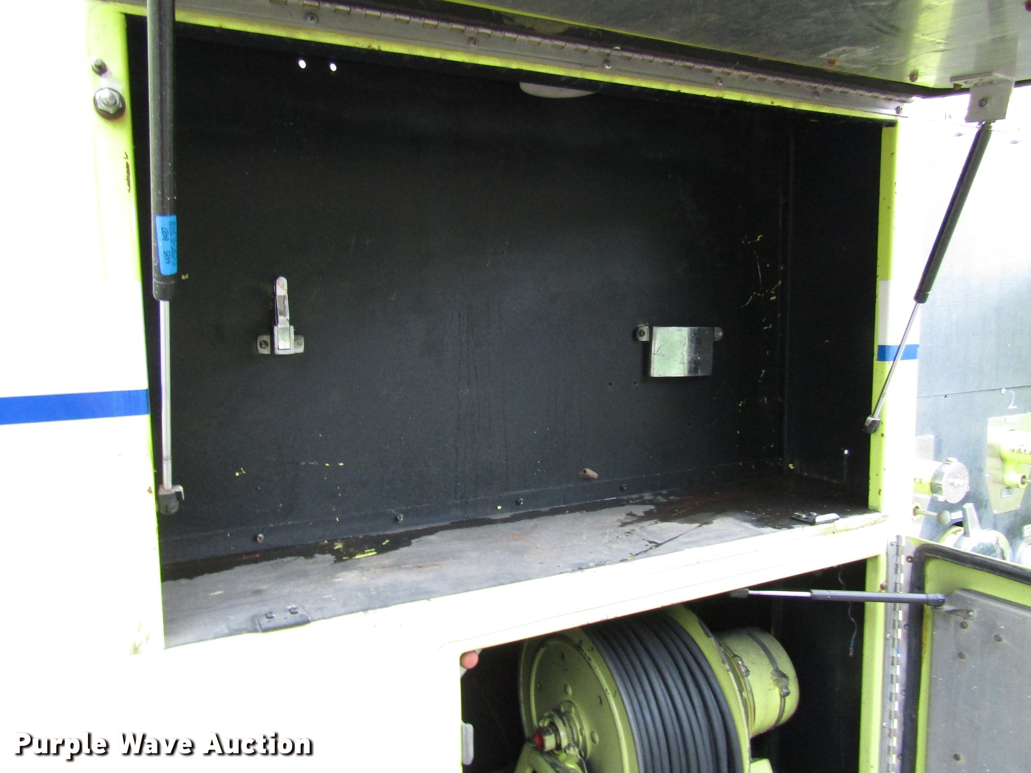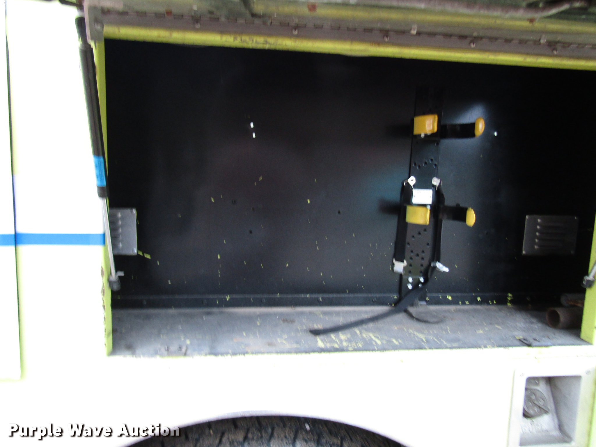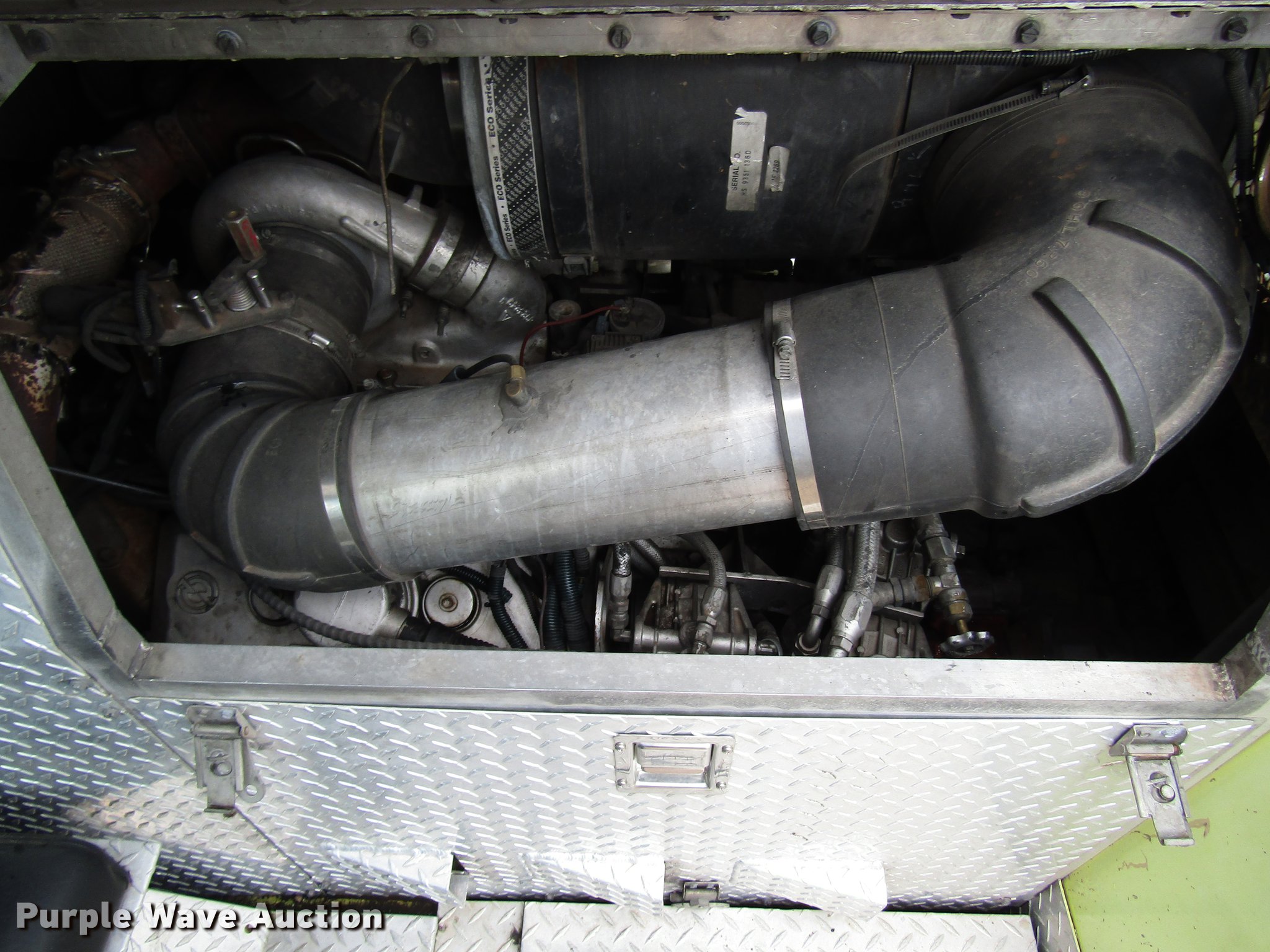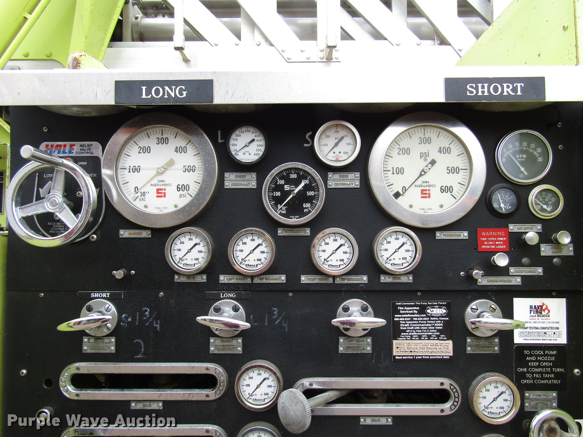 Purple Wave is selling a used Fire Truck or Emergency Vehicle in Kansas. This item is a 1984 Spartan Quint fire truck with the following: 93,128 miles on odometer, 9,755 hours on meter, Detroit Diesel 8V92 turbo diesel engine, Automatic transmission, Single axle, Heat, Air horn, PTO, 1,250 gpm pump, Elevated control station, Electric cord reel, 75'L ladder, (2) outriggers, Air brakes, 315/80R22.5 front tires, 12R22.5 rear tires, Unit was last certified April 2011, Outriggers bleed off, need seals, Some rungs on ladder need to be replaced
