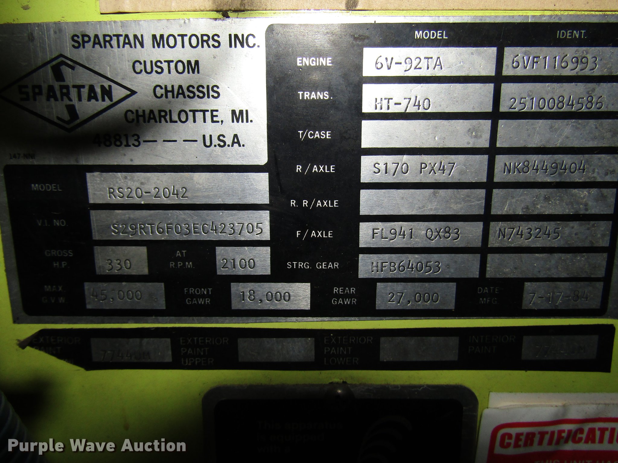 1984 Spartan Quint fire truck | SOLD! October 9 Government Auction