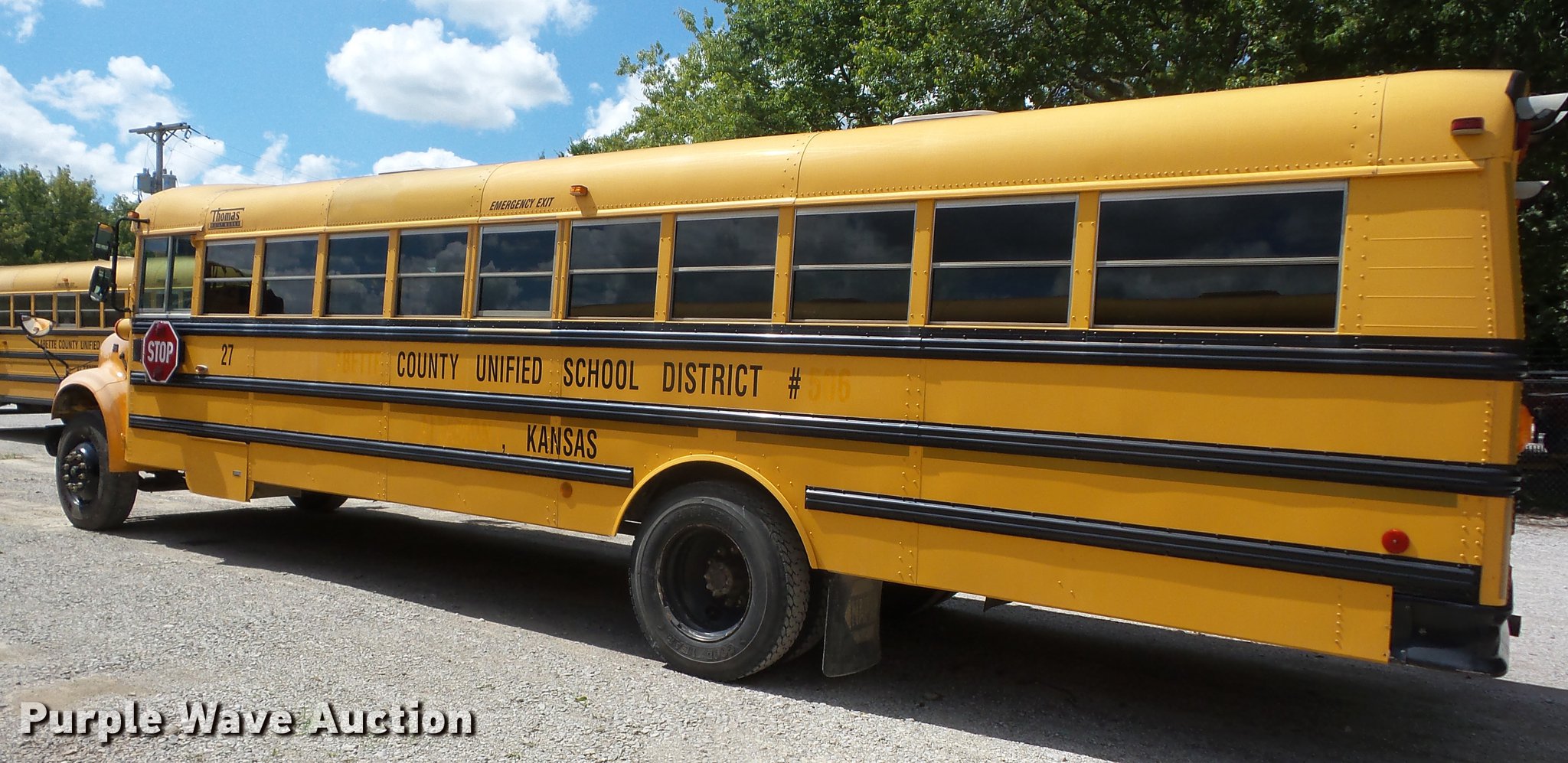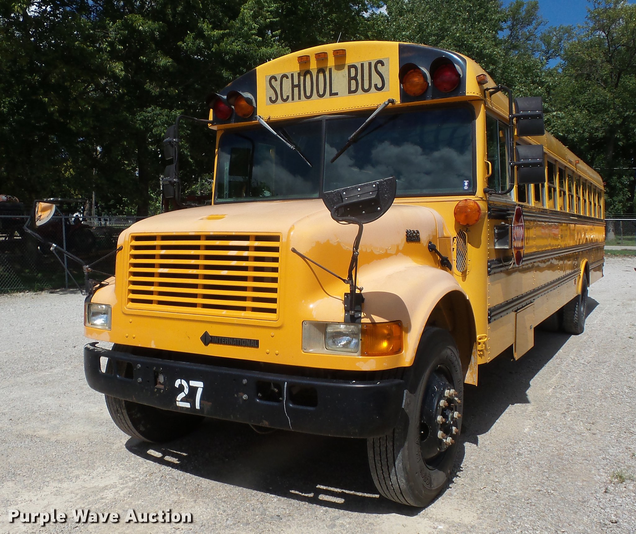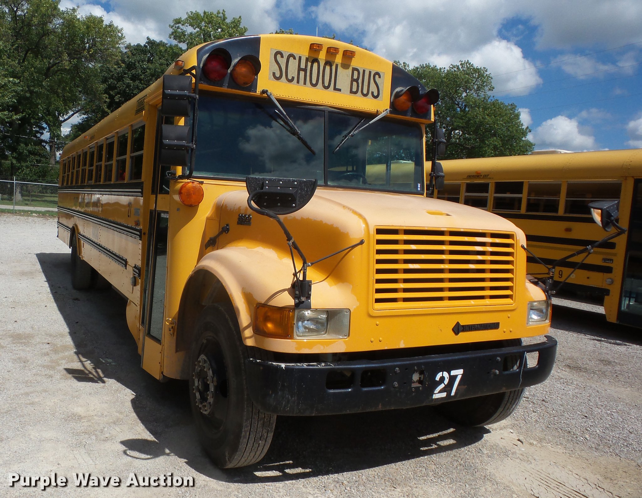 Purple Wave is selling a used Bus in Kansas. This item is a 2000 International 3800 school bus with the following: 185,410 miles on odometer, 6,229 hours on meter, International DT466E 7.6L L6 turbo diesel engine, Automatic transmission, Single axle, Heat, Heated mirrors, Suspension seat, 60 passenger capacity, Ceiling, front, rear, and side emergency exits, Lighted stop sign, Block heater, Spring suspension, Hydraulic brakes, 10.00R25 tires, GVWR 27,500 lbs, Unit# 27
